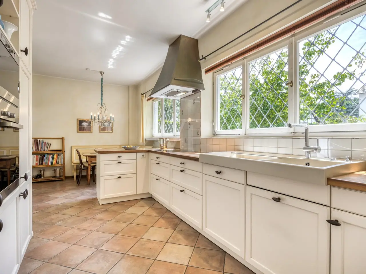 A refuge with character, substance and perspective - in the heart of one of Bad Godesberg's most charming districts. This stylish property impresses with a generous living space of approx. 226 m² and is located on a well-kept plot of approx. 1050 m² in one of the most sought-after locations in Bad Godesberg - the renowned Rüngsdorf Rhine quarter. Built in 1970/72 as a solid construction, its sophisticated architecture provides the ideal basis for living at an exclusive residential level. The property has a total of nine generously proportioned rooms - including 6 bright bedrooms, two modern bathrooms and an open-plan living area with a cozy corner fireplace. Generous windows bring light and airiness into the rooms and emphasize the friendly atmosphere. The large fitted kitchen in a charming country house style blends seamlessly into the room concept and is both visually and functionally impressive. Numerous custom-made built-in units offer well thought-out storage solutions without dominating the living space. A special bonus is the separate granny apartment with a further 2 rooms and its own entrance. It is ideal as a retreat for guests or for individual use. The well-kept outdoor area offers a green oasis of tranquillity: a mature tree population and a garden fountain characterize the natural and peaceful ambience in the immediate vicinity of the Rhine. Several sunny terraces and balconies create additional outdoor retreats. A spacious double garage and an outdoor parking space round off the practical benefits of the house. The basement offers further potential uses, for example as a hobby room, fitness area or private wellness area. An integrated alarm system ensures maximum security. All in all, this property presents itself as a rare opportunity. Don't miss out on this opportunity and arrange a viewing today to see the many possibilities of this special home for yourself! An energy certificate is currently being prepared and will be presented at the viewing.