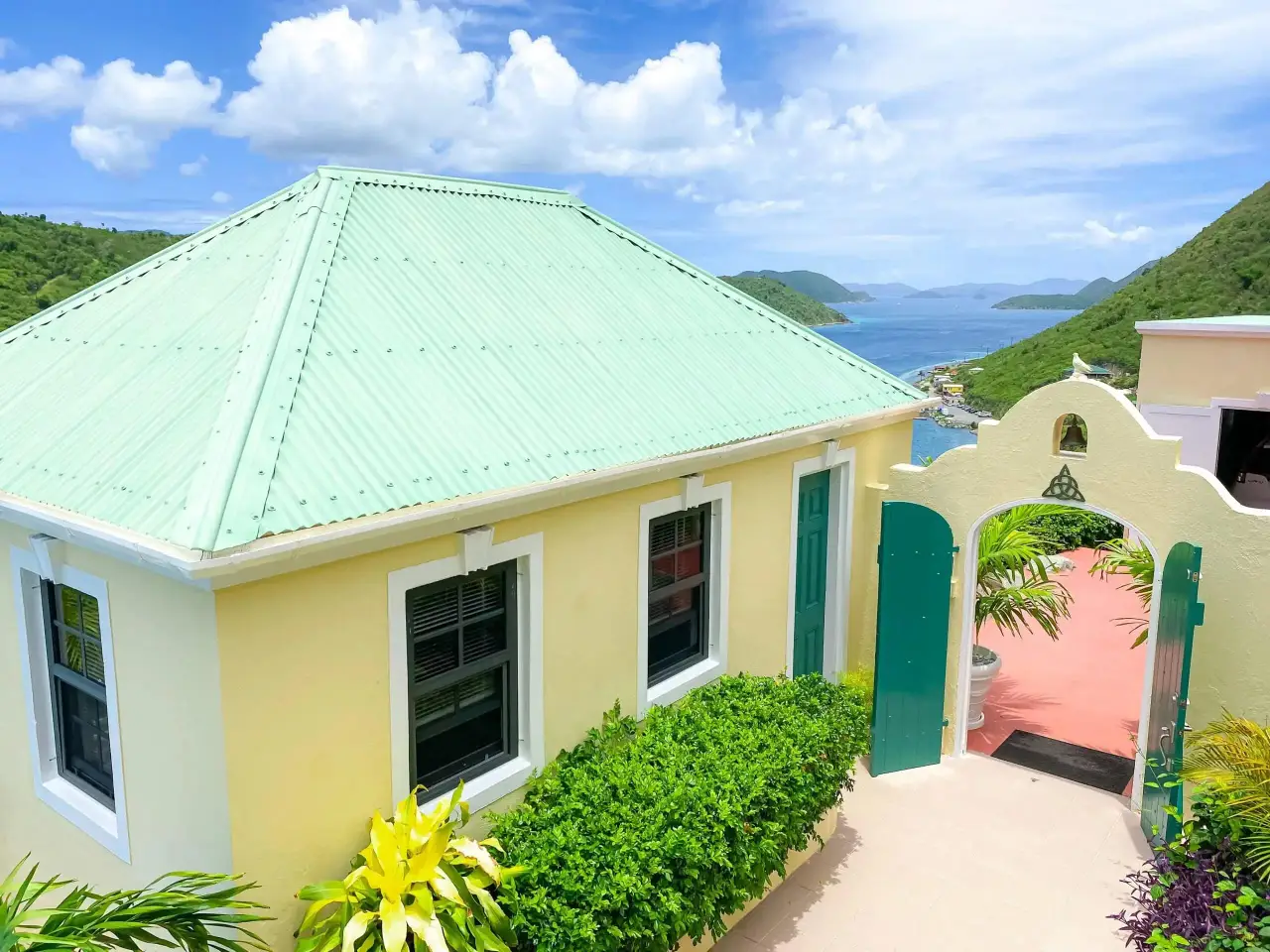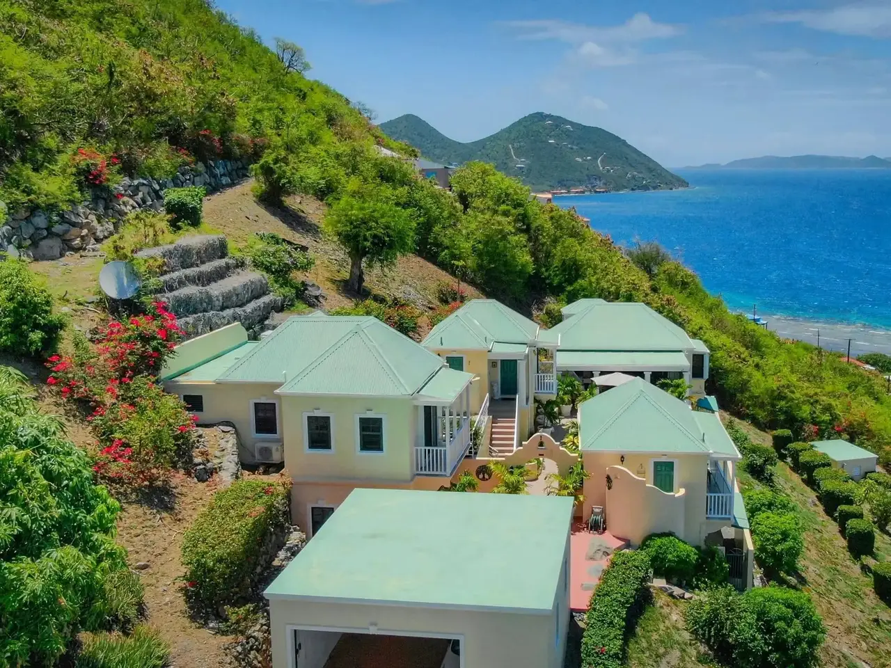 Smiths Gore is thrilled to showcase this beautifully designed family home that sits upon a hill with arguably some of the best views in the BVI. Not many properties get the joy of watching both the sunrise and the colors of the sunset at dusk.<br /> <br /> It overlooks the popular Soper’s Hole Marina which is bustling with coffee shops and restaurants and not forgetting your own private showing of the impressive yachts and boats entering the harbor. Just a stones throw away is the famous Smuggler’s Cove where you can meet Nigel for a cold painkiller or the Long Bay Resort, which is just another 5 minutes if you prefer something a little fancier.<br /> <br /> Upon entering the private driveway, which is perfectly lined with hand sourced stone, you will pass the landscaped gardens which weave around the 1.1 acres of land that accompany the purchase. You are greeted by an automatic, two car garage, with reinforced hurricane resistant rolling doors before heading through to the Mediterranean inspired courtyard and onto the spacious pool deck. Bedrooms and ensuite bathroom pods are arranged around the sociable central living area. The well-equipped kitchen and living area opens up on to the pool terrace where a large shaded deck allows for al fresco dining and truly indoor outdoor living.<br /> The immaculate four-bedroom villa has been masterfully designed to capture the trade winds and provides its own natural AC across the living areas.<br /> <br /> There are four bedrooms in total, all with ensuite bathrooms, and an office leading off the Master Bedroom which has previously been used as a fifth bedroom for small children.<br /> <br /> With large cisterns (25,000 gallons), a generator capable of running the entire property and plenty of storage space, the property did very well and received minimal damage during hurricane Irma.<br /> <br /> With its spectacular views and sociable layout, Villa Rosa works equally well as a vacation villa or family home.