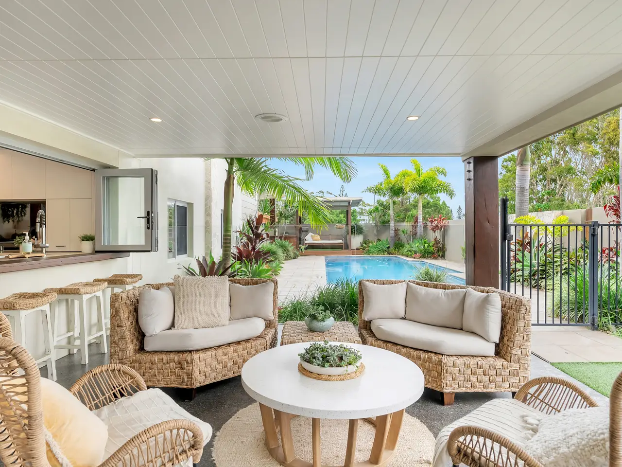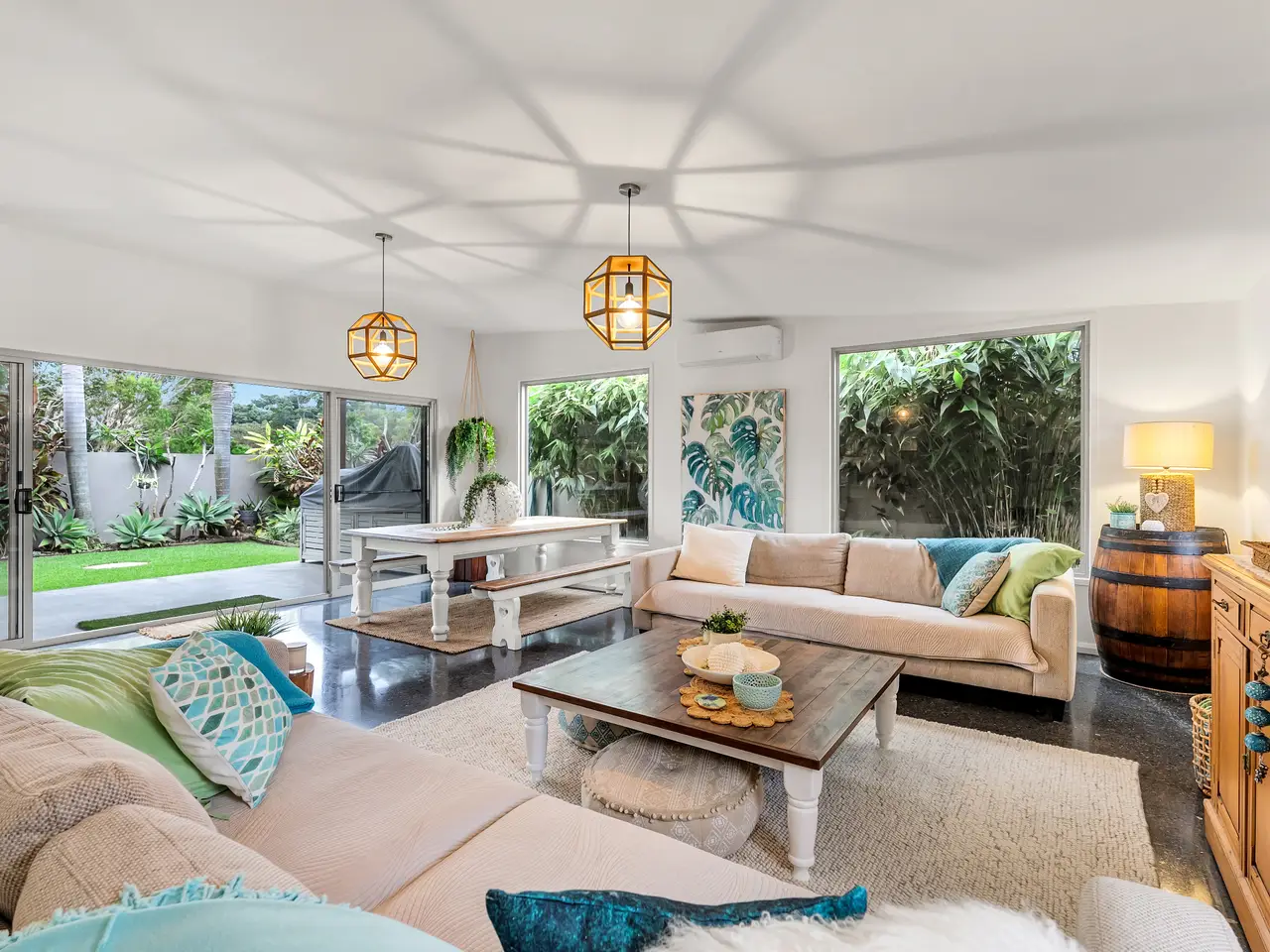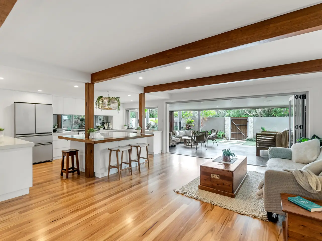 This beautifully renovated five bedroom family home with a self-contained studio offers a lifestyle of comfort, luxury, and convenience, all within walking distance to parks, bike tracks, and pristine beaches. With modern features, large living spaces, and an impressive outdoor entertaining area, this home is perfect for families looking to enjoy both tranquility and vibrant coastal living. The home boasts a stylish blend of modern and natural materials with mosaic stone accents, timber posts, and a mix of render and weatherboard exterior. Inside, you'll find five spacious bedrooms, including a generous master suite with two walk-in robes, as well as three additional large bedrooms, each with built-in wardrobes. There's also a dedicated study for those working from home or needing additional space. The two separate lounge/living areas provide ample space for family relaxation or entertaining guests. For added versatility, the self-contained studio with its own private outdoor deck offers the perfect opportunity for passive income or multi-generational living. The heart of the home is the expansive kitchen, featuring a large island bench with timber accents, stone benchtops, a 900mm oven and rangehood, a dishwasher, and a walk-in pantry. The home also includes two large bathrooms and three toilets, with the added convenience of a laundry chute from the upper bathroom. Outdoor living is exceptional, with two large undercover decks ideal for year-round entertaining, a stunning 11m x 4m swimming pool complete with a pool house and storage cupboard, and a lush tropical garden that enhances the sense of privacy. For those who enjoy outdoor gatherings, there's also a dedicated firepit area to enjoy with friends and family. Storage is in abundance with a 3-bay carport, understair storage, and two large storage areas within the garage/storeroom. The home also includes solar panels and a solar hot water system, making it energy-efficient and environmentally friendly. Situated on a private corner block opposite the new Pop Denison Park, this home is ideally located near bike tracks, restaurants, coffee shops, and the famous Shawsy. The stunning North Wall and Lighthouse Beach are just a short walk away, offering some of the best coastal views and experiences the area has to offer.