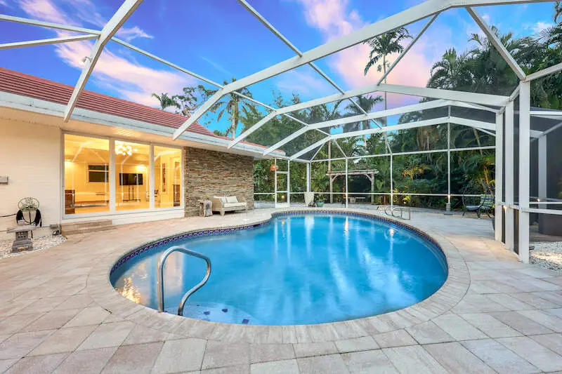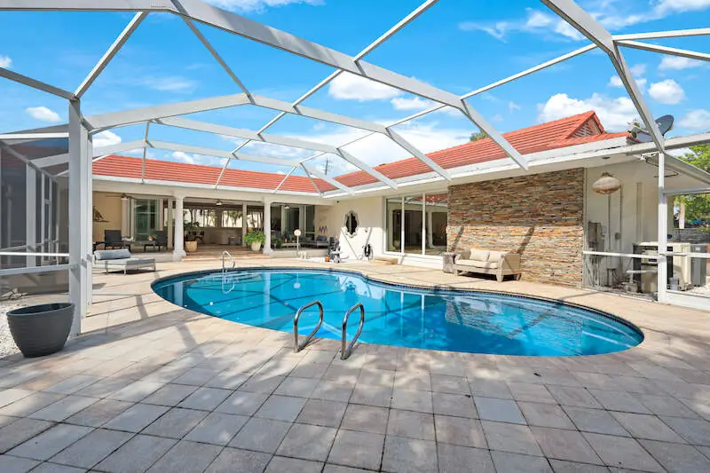 This fully remodeled, meticulously maintained Mid-Century Modern 4-bedrooms, 3-baths pool home offers a perfect blend of location, luxury, comfort, and timeless design. Situated on .43 acres on a tranquil dead-end street in the highly sought-after McGregor corridor, this home provides a rare combination of modern amenities, private outdoor space, and a peaceful, nature-filled backdrop. With a partial river view and just under a mile from the vibrant Historic Downtown River District, this residence offers the best of both worlds-serenity and accessibility. Inside, the home showcases stunning architectural details, including exposed brick and a sunken living room with a cozy fireplace. Beautifully finished vaulted ceilings further elevate the space, creating an airy, open atmosphere. Walls of windows and sliding doors flood the space with natural light, enhancing the open concept layout and creating seamless transitions between indoor and outdoor living. The expansive kitchen, living and dining areas are perfect for both entertaining and relaxing, with ample space for guests to enjoy. The chef's kitchen is a true highlight, featuring high-end Jenn-Air stainless steel appliances, a massive quartz island with waterfall edges and custom white oak cabinetry with a two-tone finish. This home also offers two spacious master suites, each with its own luxurious bathroom and ample closet space. One of the master suites has a private entrance and has flexibility with countless options including an in-law suite or recreation room. The beautifully landscaped outdoor area serves as your personal sanctuary. Surrounded by mature trees and lush greenery, the backyard features a sparkling heated pool, relaxing arbor with a swing, a firepit, providing the ideal setting for unwinding or enjoying quiet moments and local wildlife in a serene and picturesque atmosphere. Peace of mind with hurricane windows and doors, 2019 tile roof, 2021 two new electrical panels, 2022 new hot water heater, 2024 new pool pump and filter, 2015 re-piped plumbing, 2016 AC works well and is on a maintenance service plan. (2022 4-point inspection is available). The home also offers practical features including an oversized garage that accommodates two cars, plus additional space for a golf cart and other toys. Residents of the desirable McGregor neighborhood enjoy easy access to downtown amenities, including upscale dining, shopping, and cultural attractions, while the nearby Snell Park offers stunning riverfront views and a peaceful setting to enjoy sunsets and wildlife. This home truly represents the perfect balance of privacy, luxury, and convenience, offering a rare opportunity to own a piece of paradise just steps from the heart of the River District. Whether you're seeking a serene retreat or a vibrant urban lifestyle, this property has it all. Check out the video!