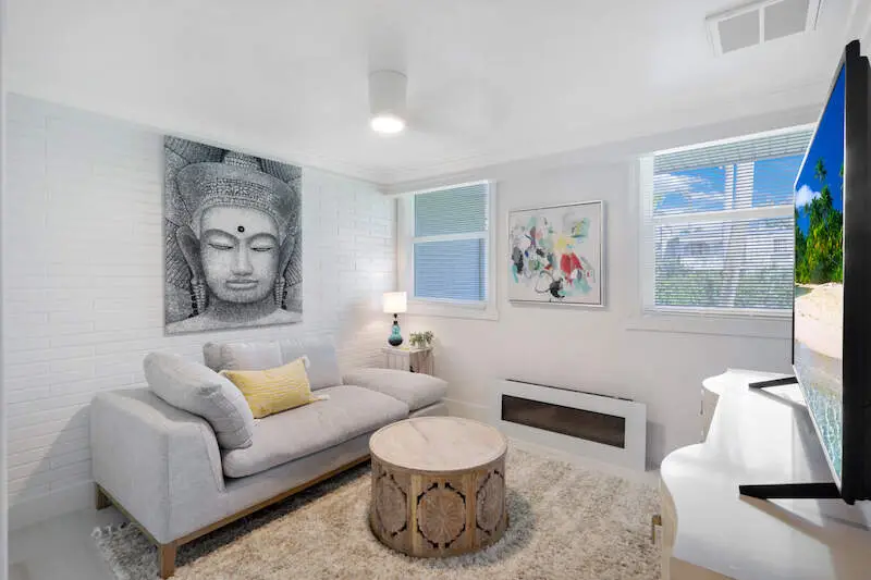 • Sunken living room with cozy fireplace