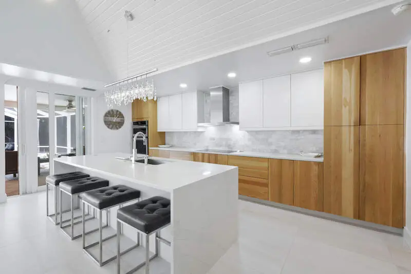 • Massive quartz island with waterfall edges
