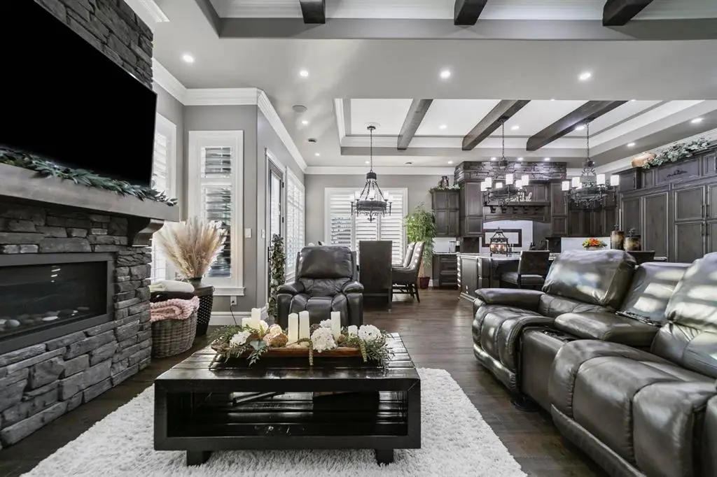 Experience exceptional craftsmanship and high-end design in this executive custom-built 2 bedroom residence on a beautifully landscaped 7,956 sq. ft. lot. Features include 12’ coffered ceilings, Brazilian hand-scraped plank floors, and expansive open-concept living spaces. The chef’s kitchen boasts Rustic Alder cabinetry, granite counters, and premium Wolf/Sub-Zero appliances. The spa-inspired primary suite offers a custom walk-in closet, copper-accented tray ceiling, and large walk-in tile shower. A 5-car heated/RV garage with hydronic floors, Pebbletec finish, and full amenities completes this rare offering. Smart home systems, Sonos 8-zone audio. Every element of this home has been meticulously designed to deliver luxury, comfort, and timeless style. This property is more than a home---it’s a statement of craftsmanship and pride, offering the very best of high-end living in Camrose.