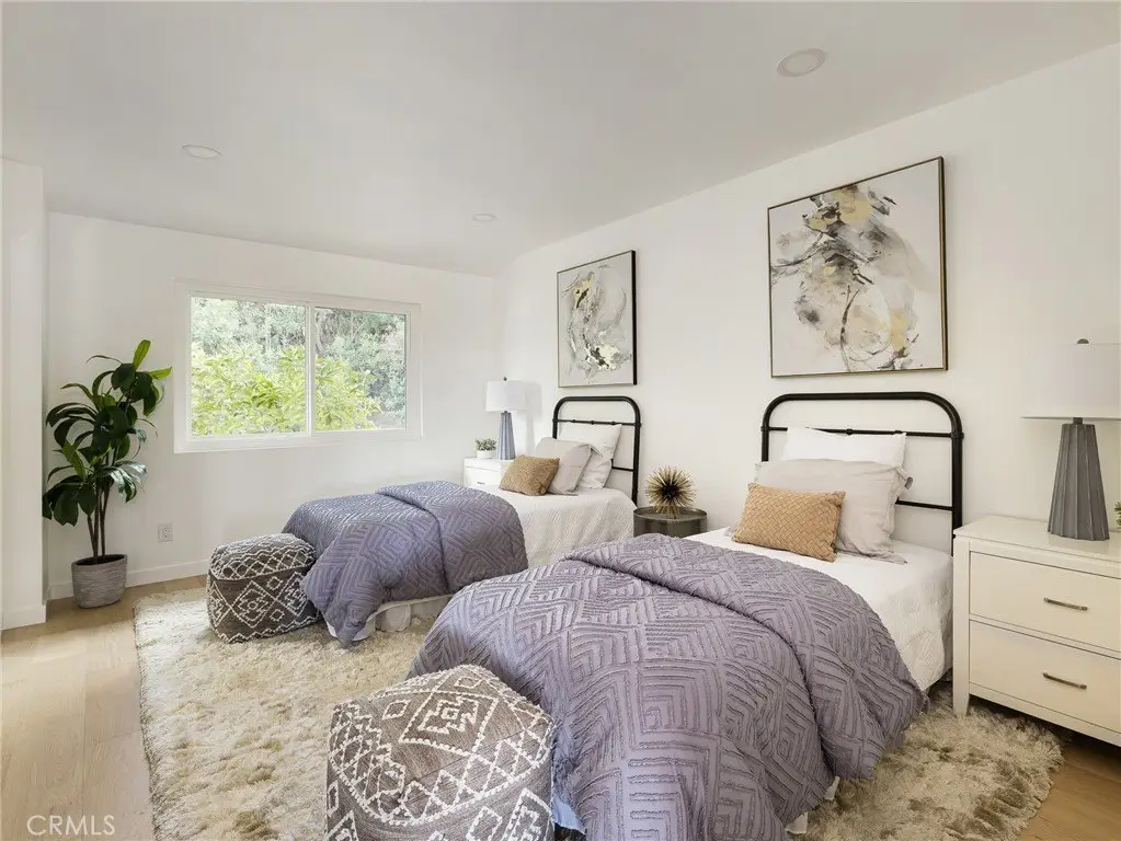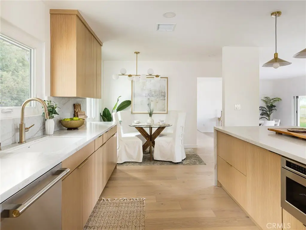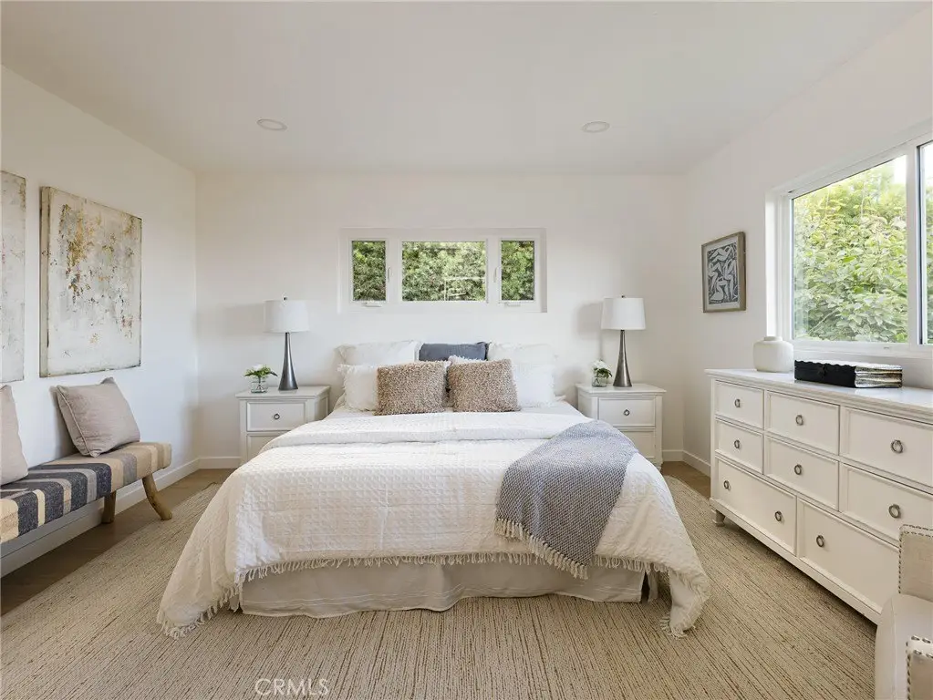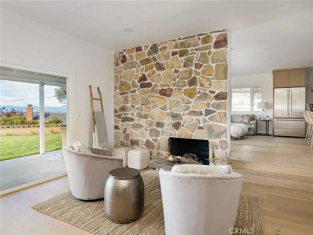 Perched above the street on a sprawling 21,500 sq. ft. lot, this fully remodeled single-level Hollywood Riviera home offers privacy, tranquility, and beautiful city lights & ocean views. A long private driveway leads to the residence, where you’ll enjoy peace of mind with no through traffic and exclusive access to the eucalyptus-lined Palos Verdes bridle trail. This 4-bedroom, 3.5-bath home has been thoughtfully reimagined with modern design and convenience. Three bedrooms feature en-suite baths, including two luxurious primary suites—each with its own stunning perspective, so you can choose which view to wake up to. The entertainer’s kitchen showcases a dramatic waterfall quartz island, custom cabinetry and state-of-the-art Monogram appliances, all opening seamlessly to the living and dining spaces. White oak engineered floors run throughout, creating warmth and elegance at every turn. With over 2,550 sq. ft. of expansive, single-level living, the home’s interiors and outdoor spaces are designed to maximize the views and invite indoor-outdoor living while entertaining guests. Though tucked away in its own serene world, the property is just minutes from Riviera Elementary, Rocketship Park, and the boutiques and dining of Riviera Village. Come experience the rare blend of seclusion, sophistication, and sweeping views that make this one-of-a-kind Hollywood Riviera property so special.