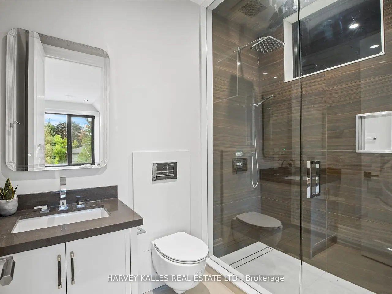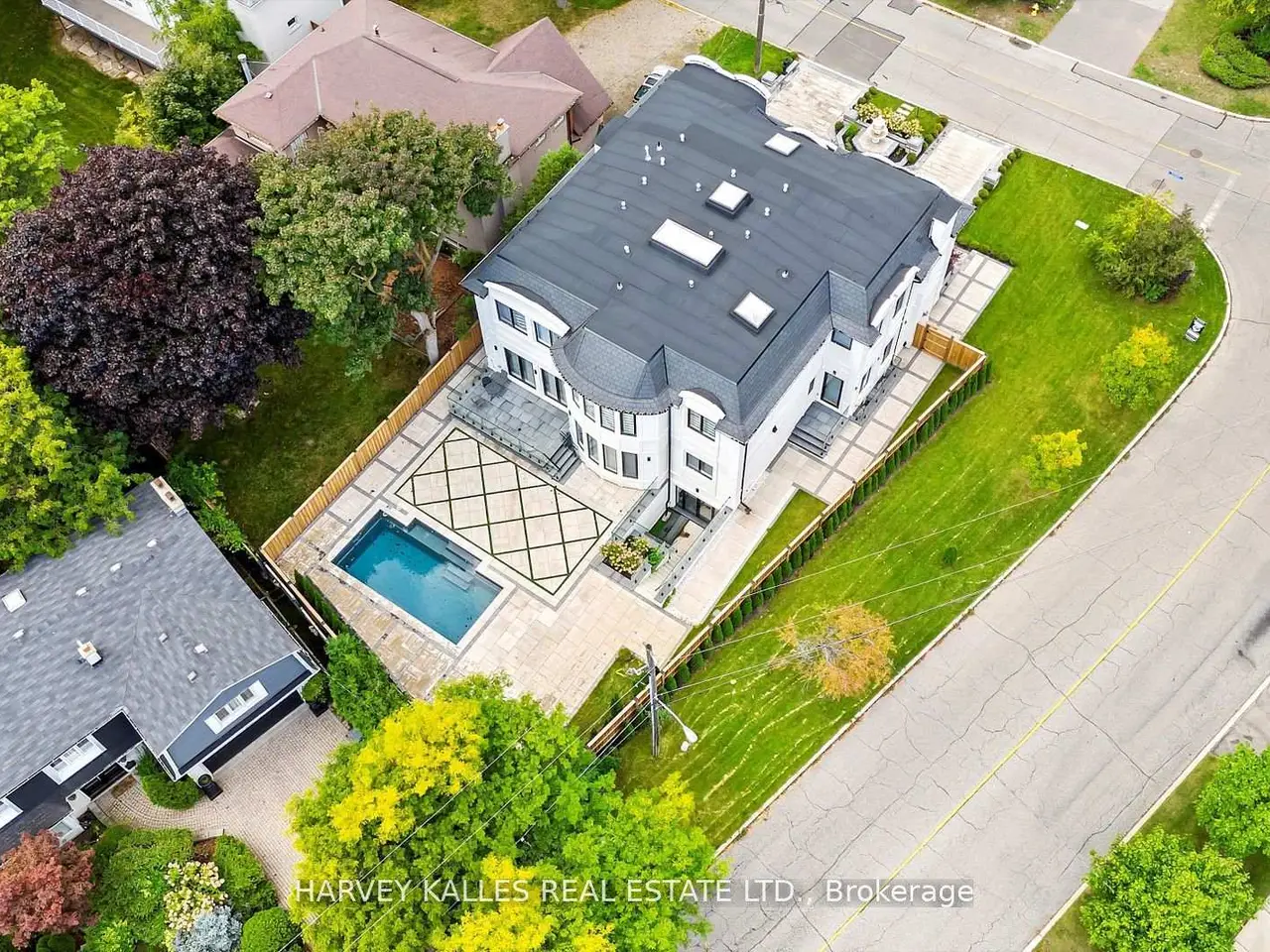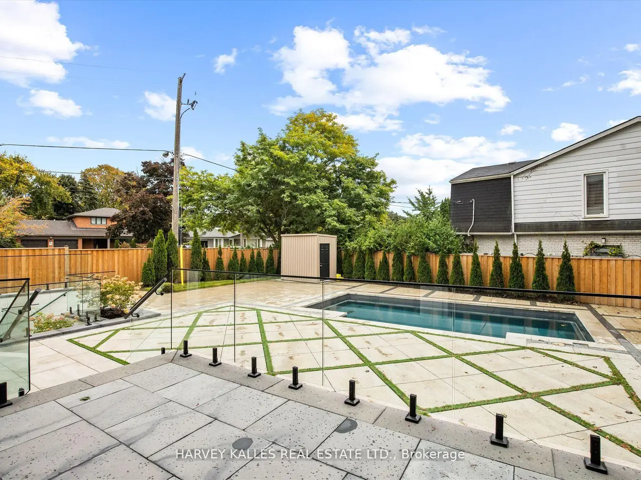 Exceptional opportunity in the prestigious St. Andrew-Windfields enclave! This newly built masterpiece offers over 6,000 sq.ft. above grade of refined living with soaring ceilings, elegant finishes, and abundant natural light throughout. The main floor features a grand foyer, glass staircase, and open-concept layout with a chef's kitchen, oversized island, butler's pantry, high-end appliances, and a family room with walkout to a south-facing yard and inground salt-water pool. Upstairs, a private office and 4 bedrooms each with ensuite, including a lavish primary suite with 7-pc spa ensuite, heated floors, and custom dressing room. The lower level offers radiant heated floors, rec room, theatre, 1 guest suites, gym, and sauna. Additional highlights: heated driveway, walkway & porch, elevator, home automation, and heated bathroom floors. Ideally situated near top schools Harrison P.S., Windfields JHS, York Mills C.I. as well as The Granite Club, Donalda Club, Bayview Village, and major highways.