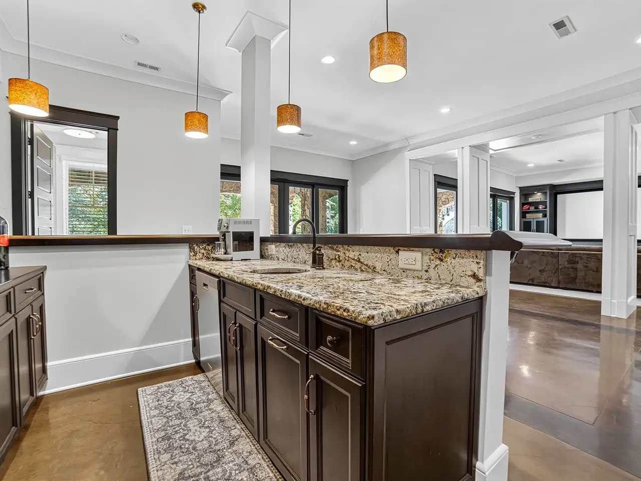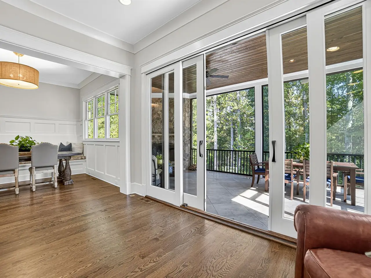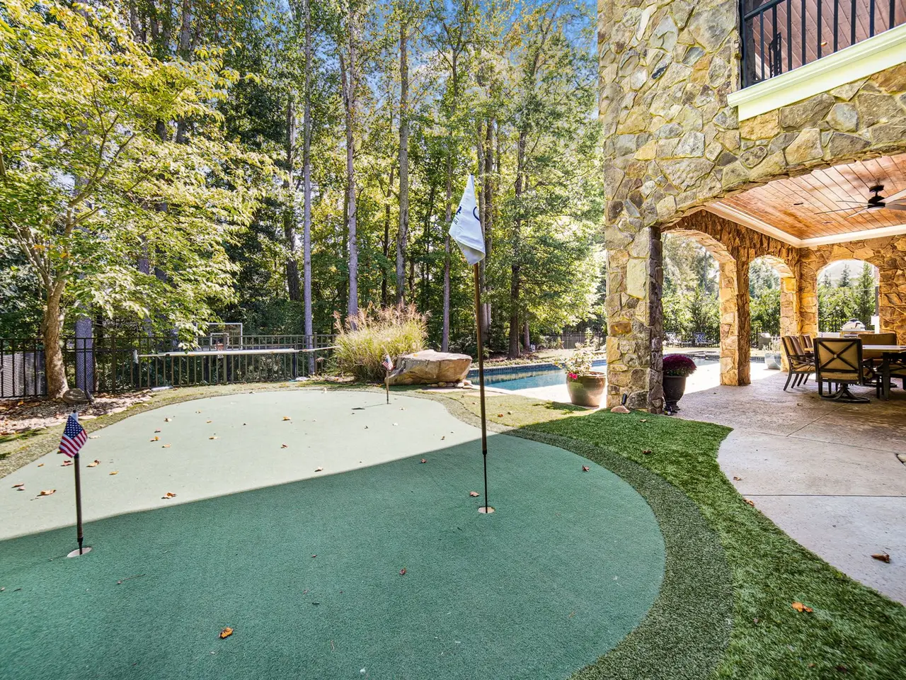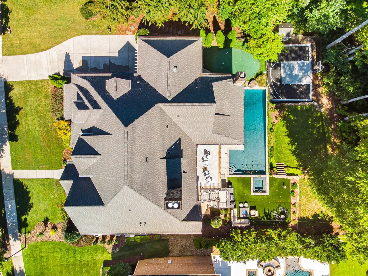 Resort-Style Luxury Estate Backing to Protected Greenspace Discover a rare blend of timeless craftsmanship and modern luxury in this cedar shake and stone estate. Designed for both everyday living and unforgettable entertaining, the home offers a true resort lifestyle. Outdoors, enjoy multiple living spaces screened porch, balcony, patios, and a spectacular pool with diving rock, spa hot tub, and dedicated pool bath. Entertain with a full outdoor kitchen, gas-start fireplace, fire pit, half-court basketball, turf putting green, and grassy play yard.Inside, soaring ceilings, elegant moldings, hardwoods, and smart-home features set the stage. The chef's kitchen shines with dual islands, Thermador appliances, walk-in pantry, and breakfast nook. The coffered-ceiling living room, keeping room, and screened porch make gatherings seamless.The main-level owner's suite is a retreat with vaulted ceilings, fireplace, porch access, and spa-inspired bath featuring heated marble floors, freestanding tub, oversized shower, and custom closets. Upstairs offers a study loft, three bedrooms with ensuite/shared baths, and unique bonus spaces.The finished lower level boasts a wine cellar, custom bar, 120-inch home theater, office, exercise room, and guest suite with pool access.This extraordinary estate delivers luxury, recreation, and nature right at home.