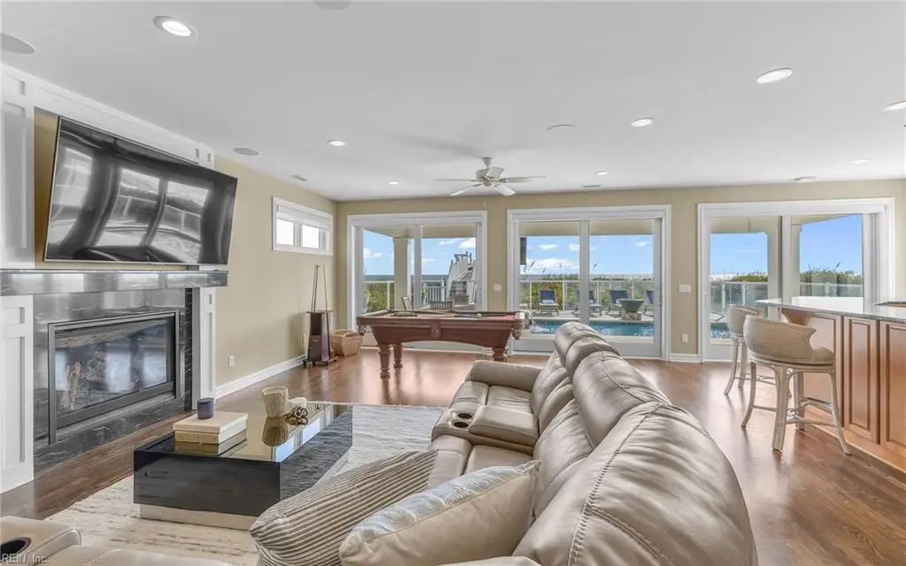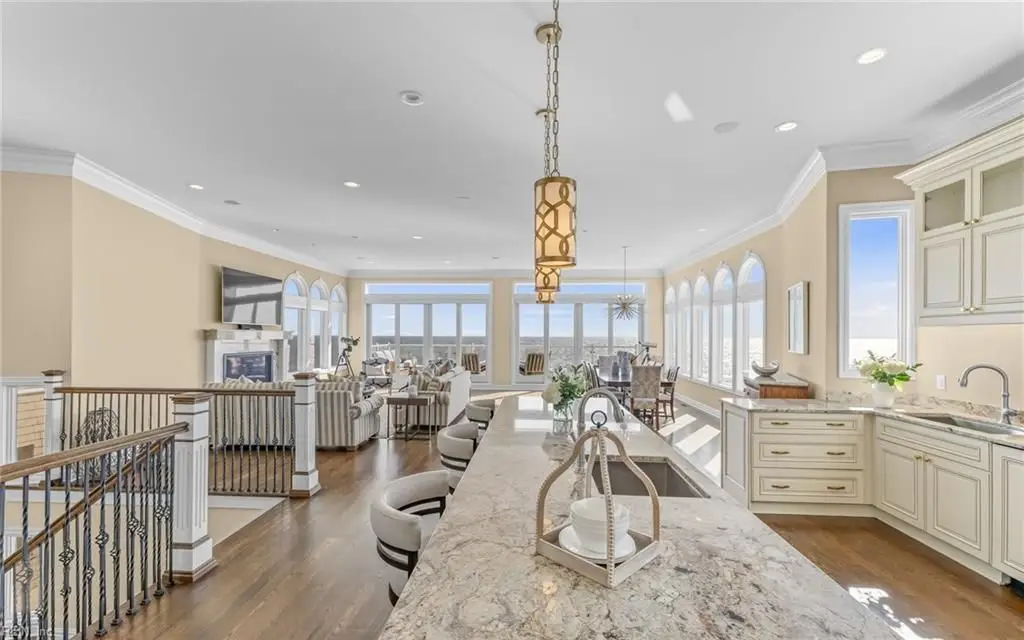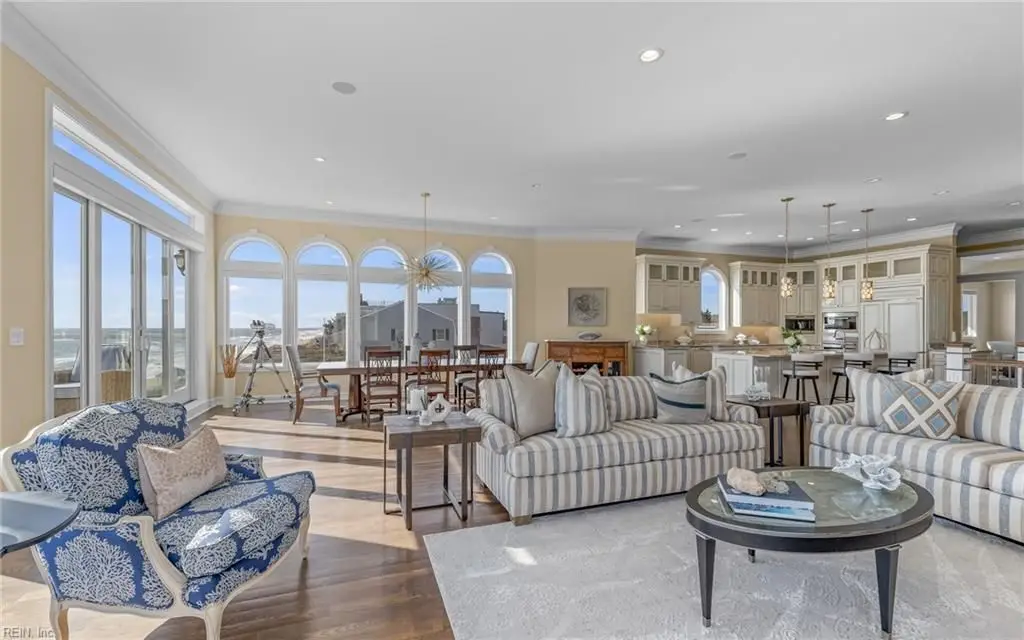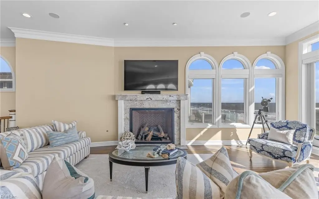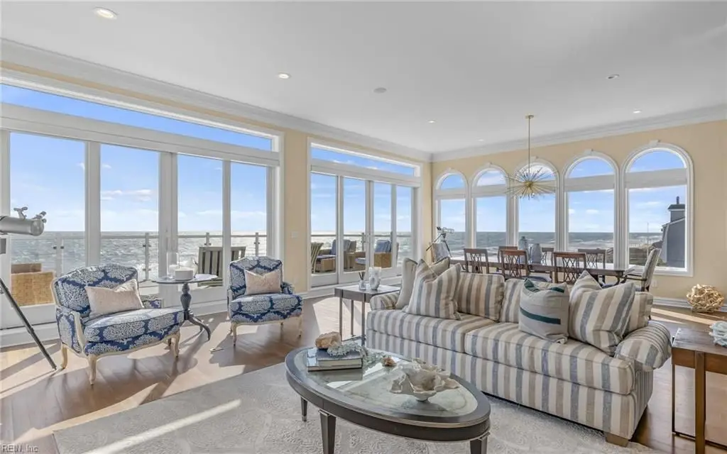 Embrace the coastal luxury lifestyle in this stunning oceanfront home, with sweeping ocean views from every level. Thoughtfully designed with no expense spared, including a Control4 Smart Home System, elevator and refined finishes throughout. 1st floor family room with wet bar opens to the pool. 2nd floor primary suite with built-in coffee bar, spa-inspired bath and endless ocean vistas; complemented by 3 additional ensuite bdrms. Spectacular 3rd floor features an entertainer's kitchen w 2 sinks, high-end appliances, chefs pantry, living and dining flanked with a fp and framed by oversized glass sliders; additional family rm plus home office. Sleek glass deck rails ensure unobstructed views on every level. Outdoor pool with retractable cover, spa, fire feature, grill station, shower, plus private walkway with seating area leads directly to the sand. Designed for effortless entertaining and everyday indulgence, this home blends elevated luxury with the relaxed rhythm of coastal living.