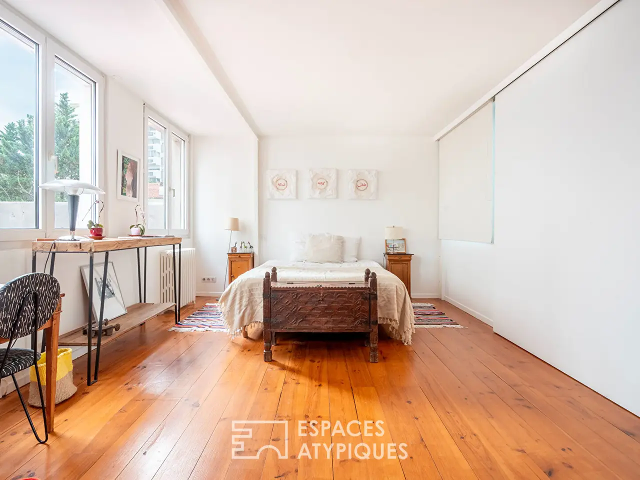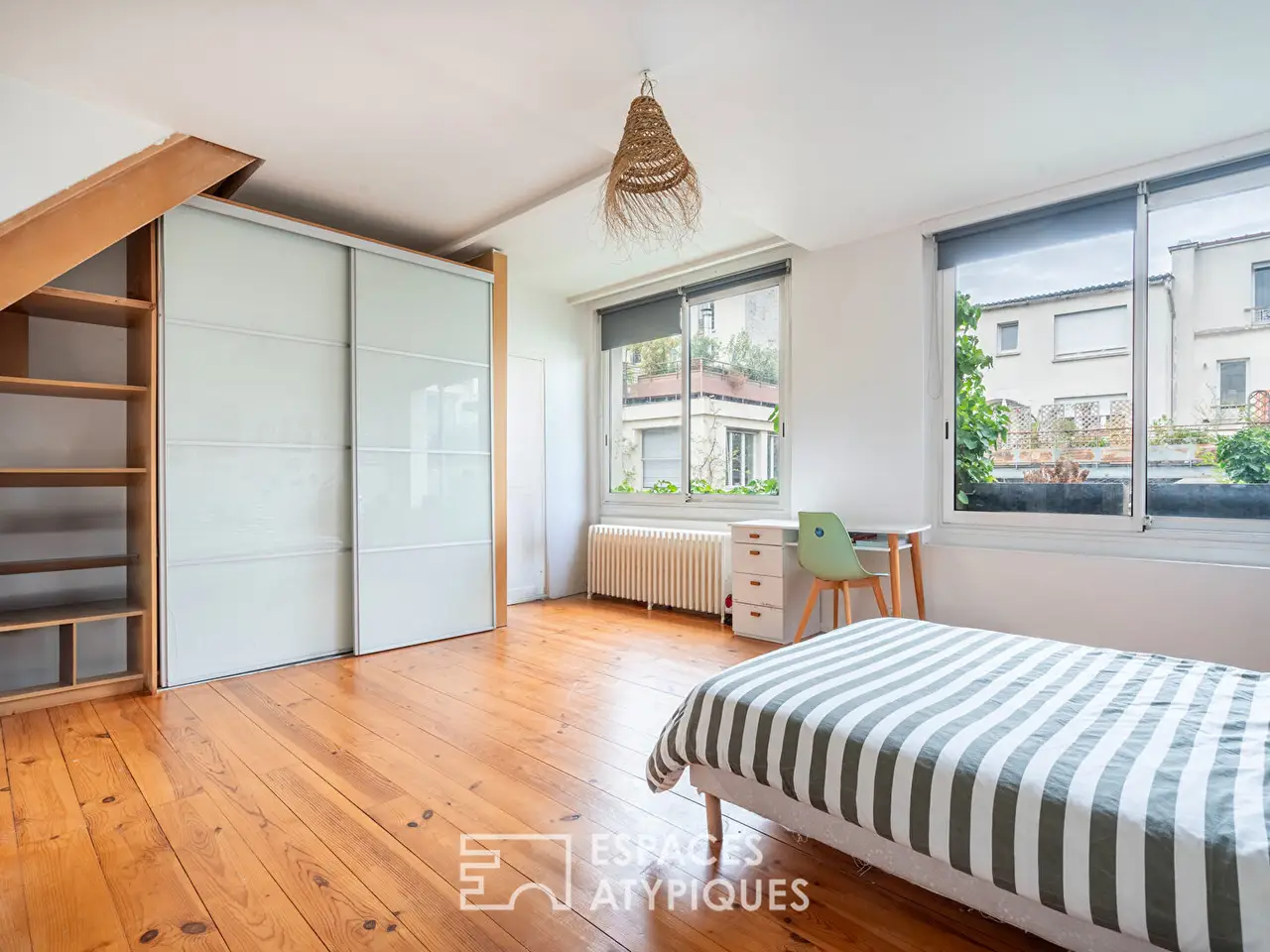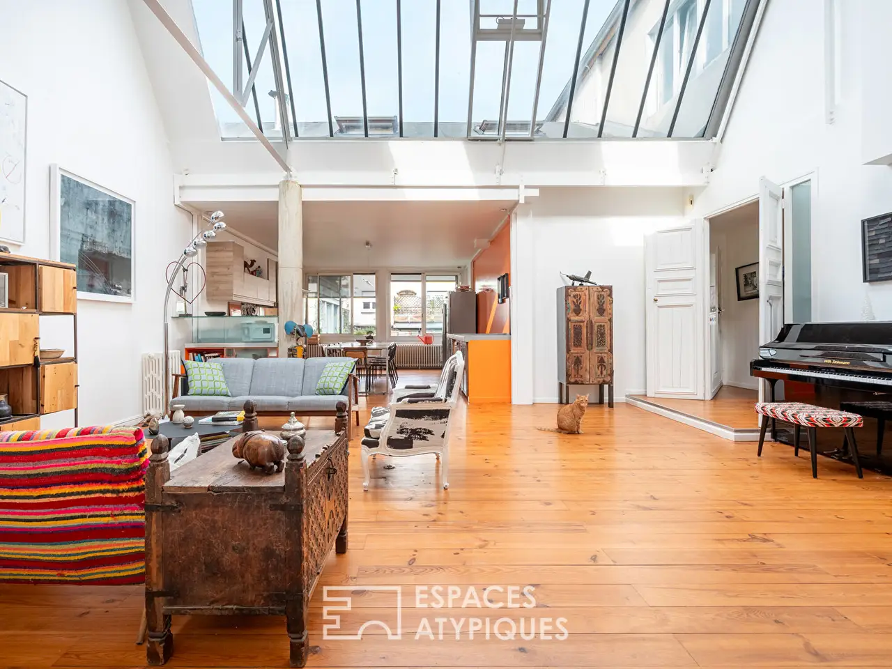 Located on the edge of Montreuil, in the Coutures district, this 253.40 m2 duplex loft (201.80 m2 Carrez law), designed to combine personal and professional life, was the result of the transformation of the former offices of the iconic small appliance brand. Nestled on the first and top floors, it boasts generous volumes and omnipresent light that accompanies every moment.From the entrance, the living room of over 80 m2 captures the eye: a spectacular space beneath a dizzying height, topped with metal beams testifying to the industrial past of the premises. Bathed in light from a skylight and punctuated by skylights, the space benefits from a warm living room, a convivial dining room, and an eat-in kitchen designed as a space for sharing.Wood, concrete, and metal create a subtle and elegant combination, asserting a resolutely contemporary identity. In the center, a wood-burning stove, a true functional sculpture, imposes its presence and enhances the space.Opposite the TV area, a discreetly integrated bookcase accompanies the staircase leading to the mezzanine, designed as a creative cocoon with two workspaces.On the sleeping area, leading off the living room are two bedrooms of 20 m2 and 22 m2 respectively, a bathroom with a bathtub, shower, and toilet, and a dressing room.The entrance hall also leads to a laundry room, a separate toilet, and a third 23 m2 bedroom with its own shower room.Upstairs, a fourth bedroom with a bathtub and an office area completes the space.Tucked away from the hustle and bustle of the city, nestled in a peaceful courtyard, this exceptional loft combines elegance, comfort, and functionality. A truly expressive property, ideal for those seeking a meaningful work-life balance.A parking space and a cellar complete this loft, which is subject to co-ownership status.Metro line 9: Robespierre, 400 meters awayENERGY CLASS: D / CLIMATE CLASS: DEstimated average annual energy costs for standard use, based on 2021 energy prices: between €2,070 and €2,860Contact: Daniel +33 6 64 01 30 43 EI - RSAC: 811 163 369 BobignyREF. 12333Additional information* 7 rooms* 4 bedrooms* 2 bathrooms* 1 bathroom* Floor : 1* 1 floor in the building* Parking : 1 parking space* 91 co-ownership lots* Annual co-ownership fees : 4 263 €* Property tax : 5 801 €* Proceeding : NonEnergy Performance CertificatePrimary energy consumptiond : 160 kWh/m2.yearHigh performance housing*A*B*C*160kWh/m2.year34*kg CO2/m2.yearD*E*F*GExtremely poor housing performance* Of which greenhouse gas emissionsd : 34 kg CO2/m2.yearLow CO2 emissions*A*B*C*34kg CO2/m2.yearD*E*F*GVery high CO2 emissionsEstimated average annual energy costs for standard use, indexed to specific years 2021, 2022, 2023 : between 2070 € and 2860 € Subscription IncludedAgency feesThe fees include VAT and are payable by the vendorMediatorMediation Franchise-Consommateurswww.mediation-franchise.com29 Boulevard de Courcelles 75008 ParisInformation on the risks to which this property is exposed is available on the Geohazards website : www.georisques.gouv.fr