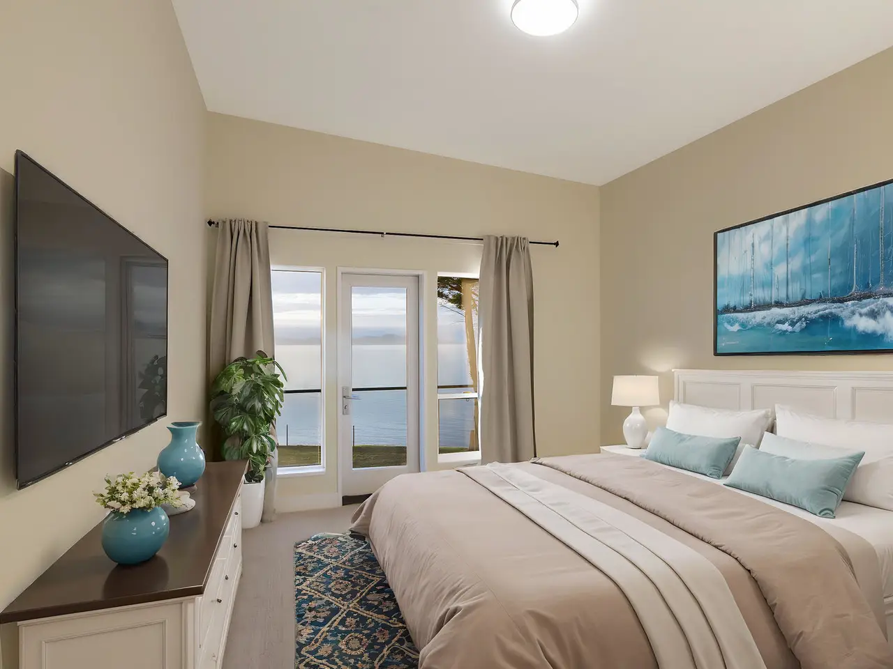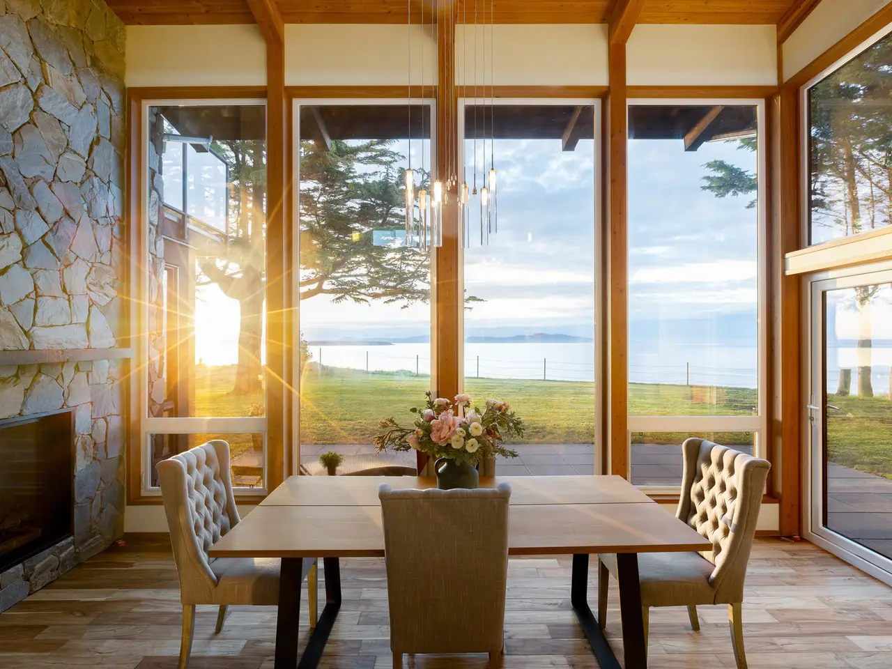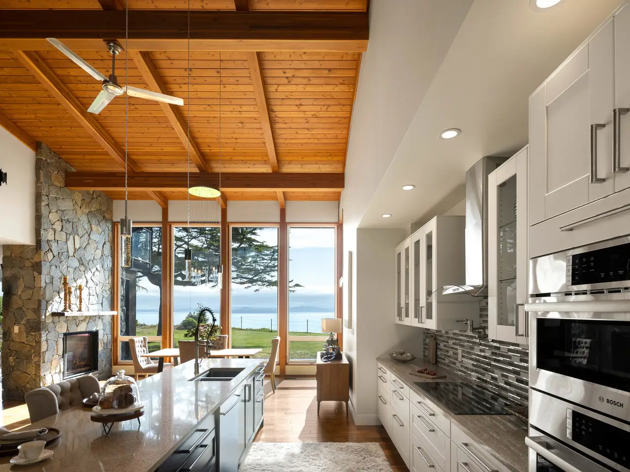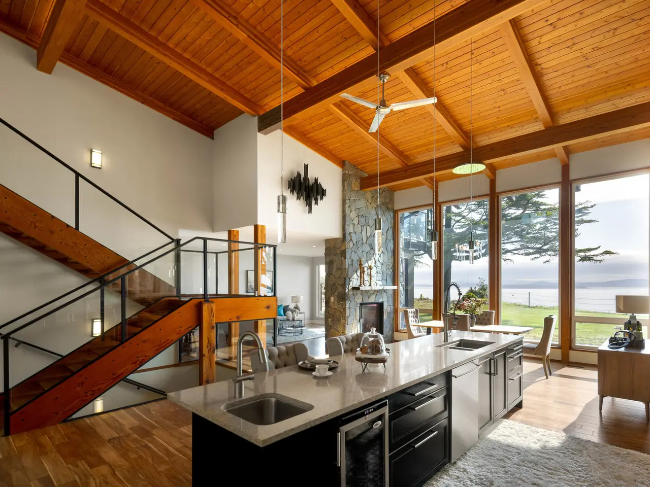 • Floor-to-ceiling windows with coastal views
