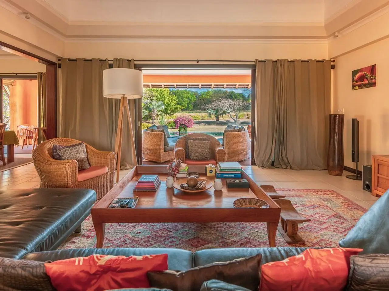 Nestled within the prestigious Tamarina Golf Estate in Tamarin, this enchanting IRS villa is a true sanctuary for those seeking both elegance and tranquility. Surrounded by lush gardens adorned with vibrant flower trees, the property seamlessly blends luxury with nature, offering direct access to the breathtaking 18th hole renowned golf course. Step inside to discover spacious living areas that exude charm and sophistication, featuring exquisite wooden accents that add warmth to the ambiance. With four generously sized bedrooms, each equipped with its own ensuite bathroom, this villa ensures privacy and comfort for family and guests alike. The heart of the home flows effortlessly into an infinity pool that glistens under the Mauritian sun, complemented by a charming kiosk perfect for al fresco dining. A double garage, laundry room, and pantry provide the practical conveniences one desires. Residents of Tamarina Golf Estate enjoy an exceptional lifestyle, complete with world-class golfing, a luxurious spa, and a selection of exquisite restaurants and boutiques, all within a serene, secure environment. This villa is not just a home; it's an invitation to experience the best of island living. With its stunning surroundings and prime location, this property is a dream acquisition for foreign buyers seeking a slice of paradise.