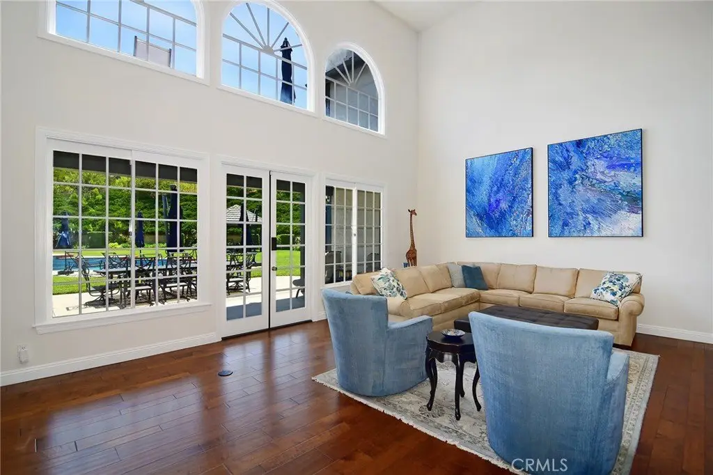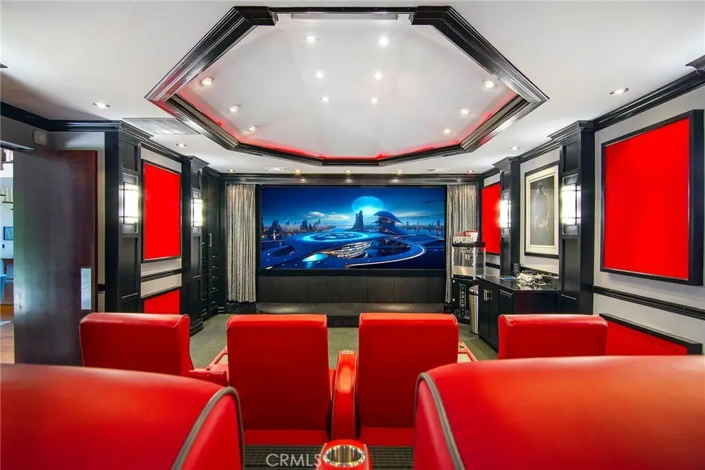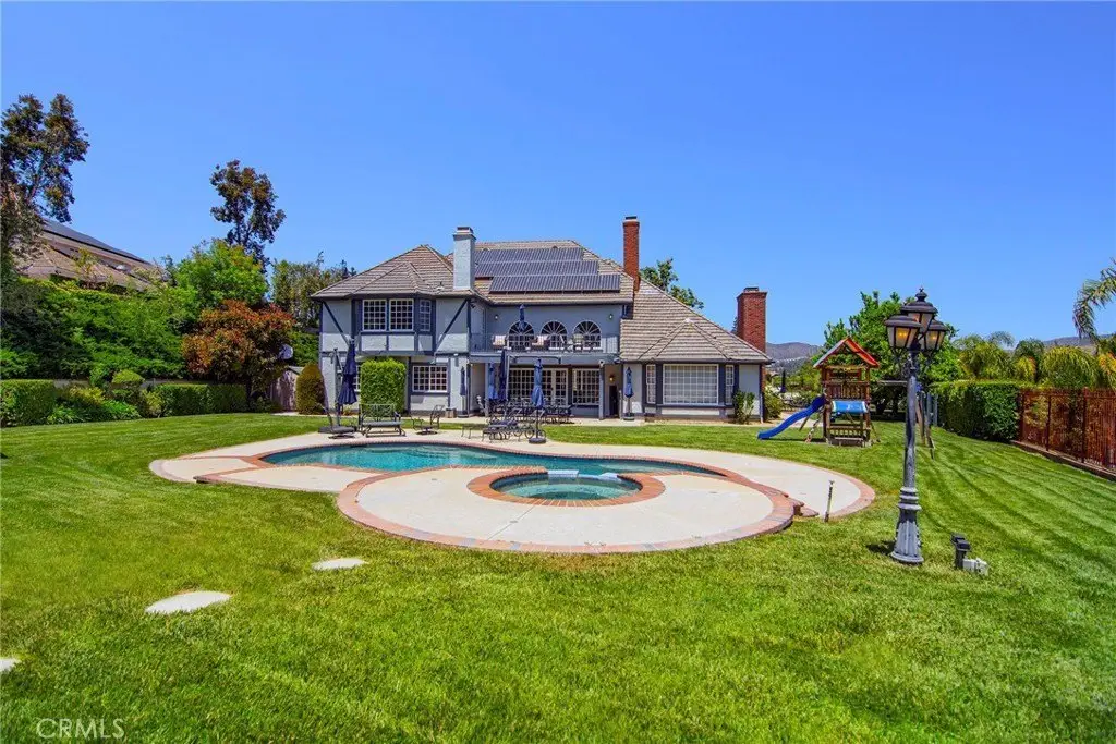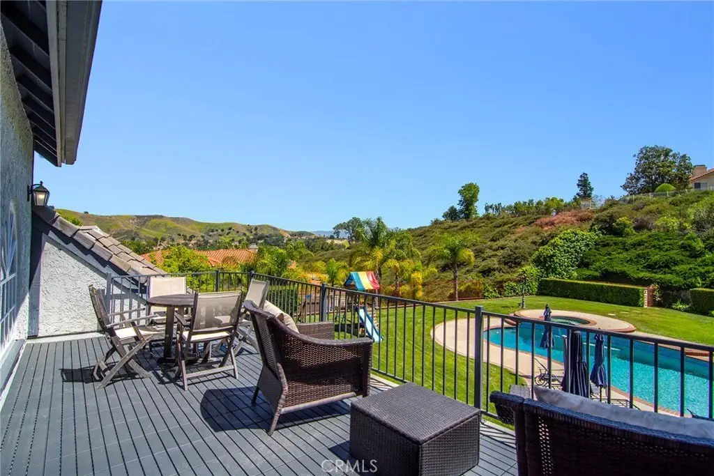 Welcome to this exceptional residence nestled in the prestigious Morrison Highlands community. Situated on a spacious lot with panoramic views, this beautifully upgraded home offers the ultimate in comfort, technology, and indoor-outdoor living. Enjoy resort-style amenities in your expansive backyard featuring a sparkling pool and spa, gazebo with lighting, lush lemon and grapefruit trees, a fire pit, and a natural gas BBQ. A removable pool fence ensures flexibility for family fun or elegant entertaining. Inside, the completely remodeled chef’s kitchen is a culinary dream, boasting custom maple cabinetry, quartz countertops, a large center island with sink and storage, and premium Wolf and LG Signature appliances—including four ovens, a built-in steam convection oven, and a see-through refrigerator with an auto-opening door. A butler’s pantry adds even more functionality. The luxurious upstairs primary suite is a true retreat, with a private balcony, a custom walk-in closet with built-in dresser, and a spa-inspired bathroom complete with soaking tub, steam shower, dual water closets, and Toto bidet washlets. This home also features a professionally built, 10-seat home theater—featured in two audio-video magazines—fully equipped with Apple TV, Xbox, a popcorn machine, and smart iPad controls. The theater equipment was upgraded just four years ago. Designed with smart living in mind, the home includes motorized shades in the primary bedroom, a Ring alarm system, smart controls for lighting, thermostats, irrigation, and pool equipment, as well as digital locks on all exterior doors. The garage is wired for EV charging and supported by owner-owned solar panels. Located in the highly regarded Las Virgenes School District, this rare offering blends luxury, innovation, and timeless comfort in one of the area’s most coveted neighborhoods.