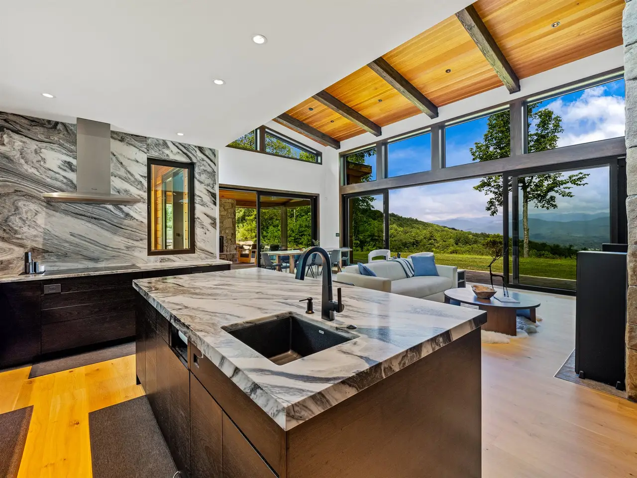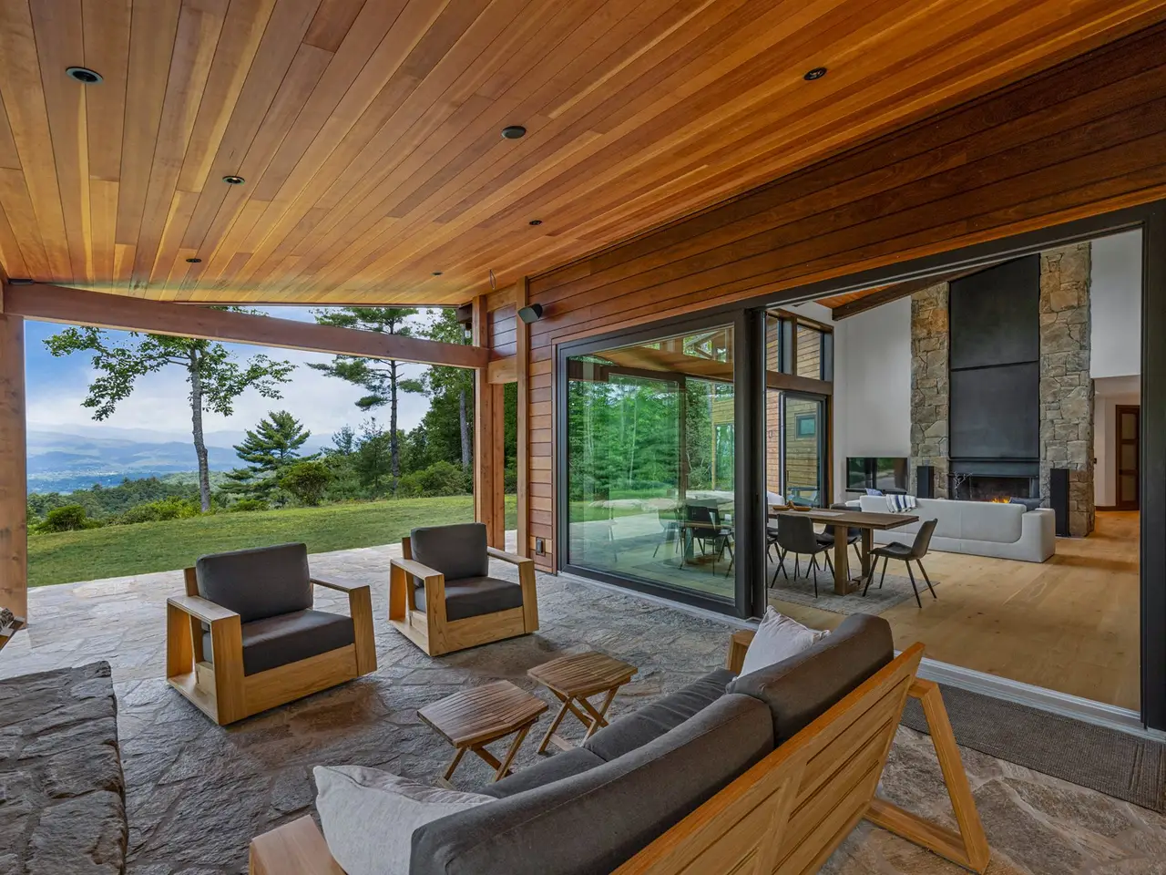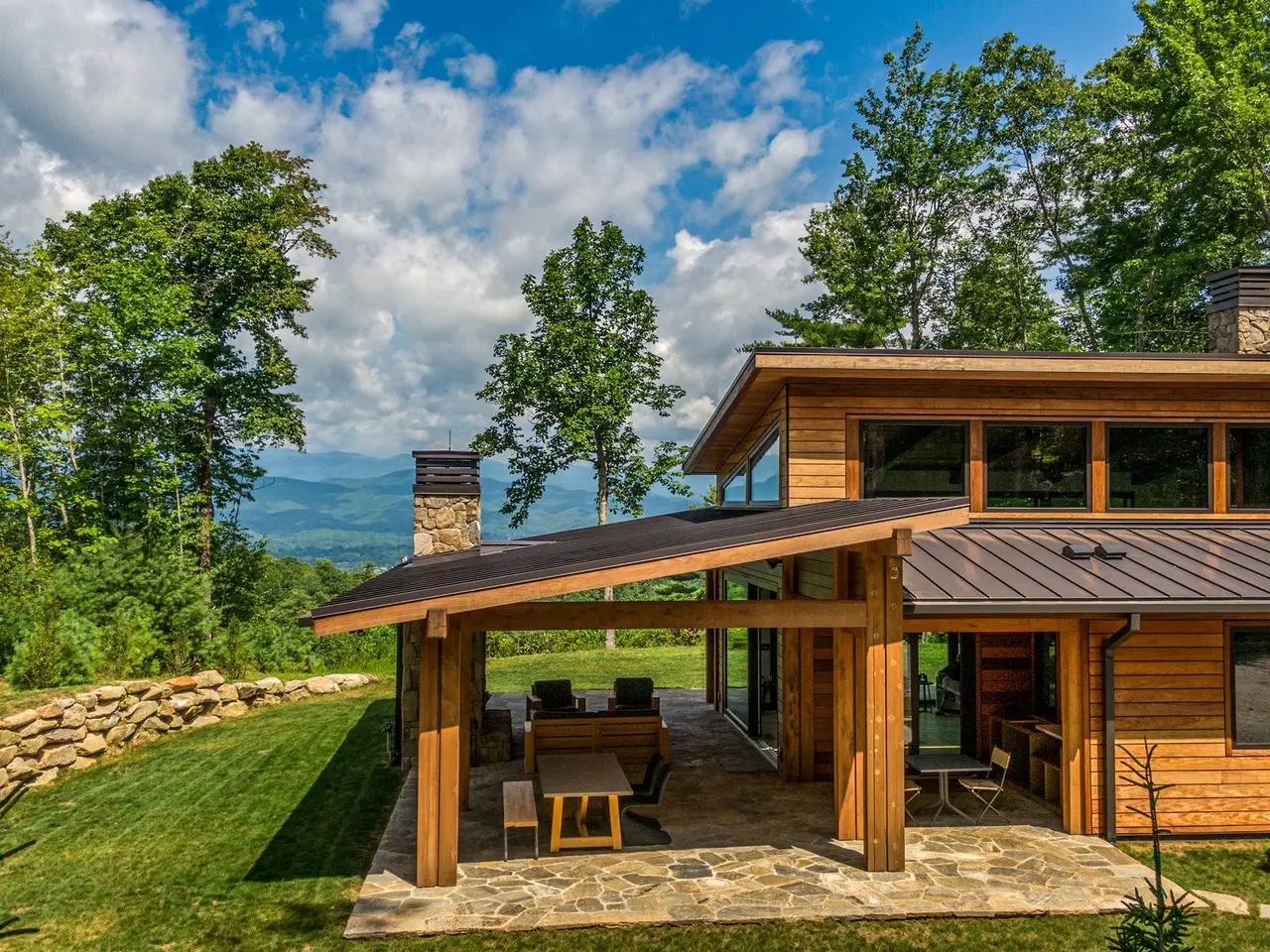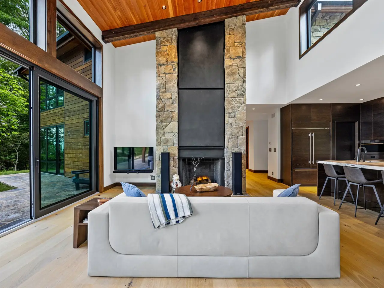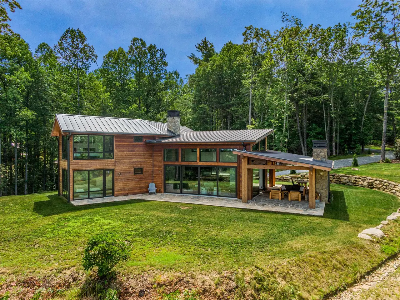 One of Brevard's most exceptional view homes, this European-inspired modern rustic retreat by Platt Architecture sits on four-plus wooded acres in Eagle Lake, just 12 minutes from downtown. Enjoy year-round Blue Ridge Mountain views-including a stunning view of Cedar Rock in Pisgah National Forest-and easy access to a private 30-acre high-elevation lake. Premium finishes include Kommerling steel-frame windows and doors, imported European White Oak floors, handcrafted Walnut cabinetry and trim, and floating stairs. The exterior features durable and elegant Brazilian Ipe siding. Geothermal HVAC with humidifier and fresh air intake ensures year-round comfort. The open floor plan flows effortlessly onto a spacious covered porch with a wood-burning fireplace and a level yard-perfect for outdoor entertaining or play. A branch of Philips Creek meanders through the property, including a lower-level oversized garage/workshop. Crafted with care, this home offers refined mountain living at its finest.