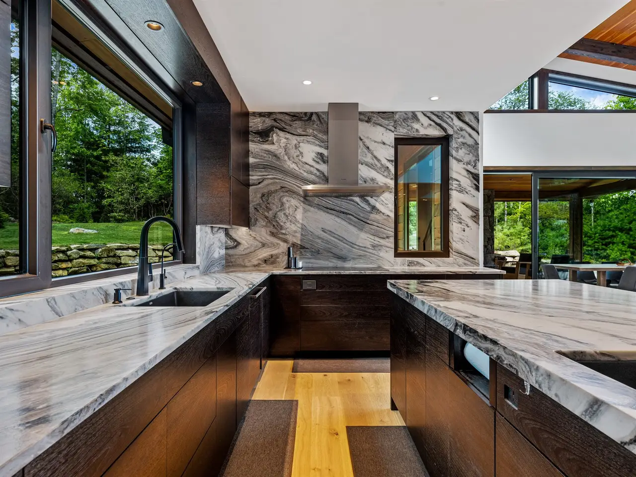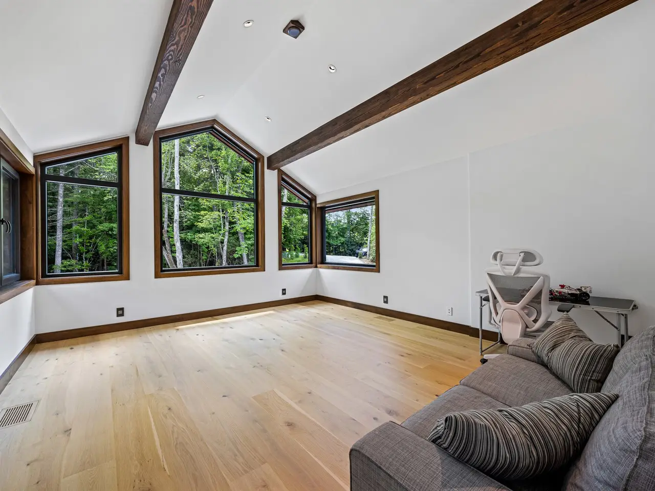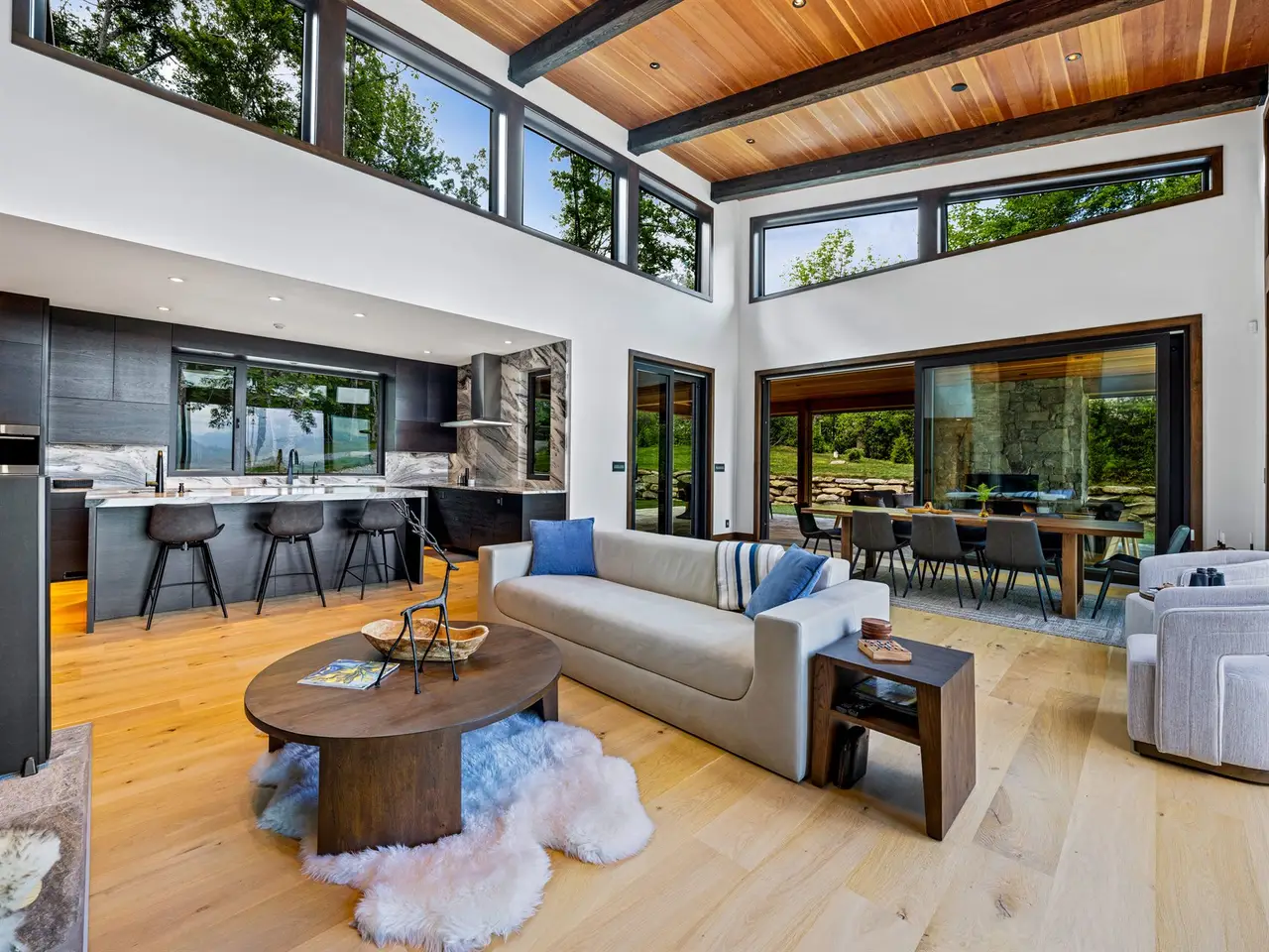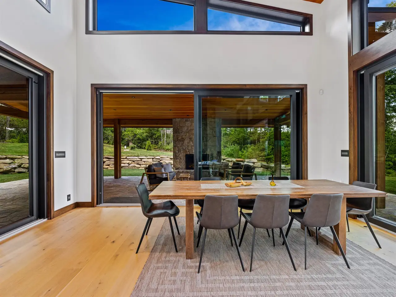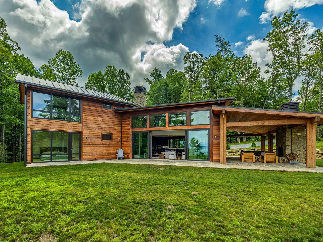 One of Brevard's most exceptional view homes, this European-inspired modern rustic retreat by Platt Architecture sits on four-plus wooded acres in Eagle Lake, just 12 minutes from downtown. Enjoy year-round Blue Ridge Mountain views-including a stunning view of Cedar Rock in Pisgah National Forest-and easy access to a private 30-acre high-elevation lake. Premium finishes include Kommerling steel-frame windows and doors, imported European White Oak floors, handcrafted Walnut cabinetry and trim, and floating stairs. The exterior features durable and elegant Brazilian Ipe siding. Geothermal HVAC with humidifier and fresh air intake ensures year-round comfort. The open floor plan flows effortlessly onto a spacious covered porch with a wood-burning fireplace and a level yard-perfect for outdoor entertaining or play. A branch of Philips Creek meanders through the property, including a lower-level oversized garage/workshop. Crafted with care, this home offers refined mountain living at its finest.