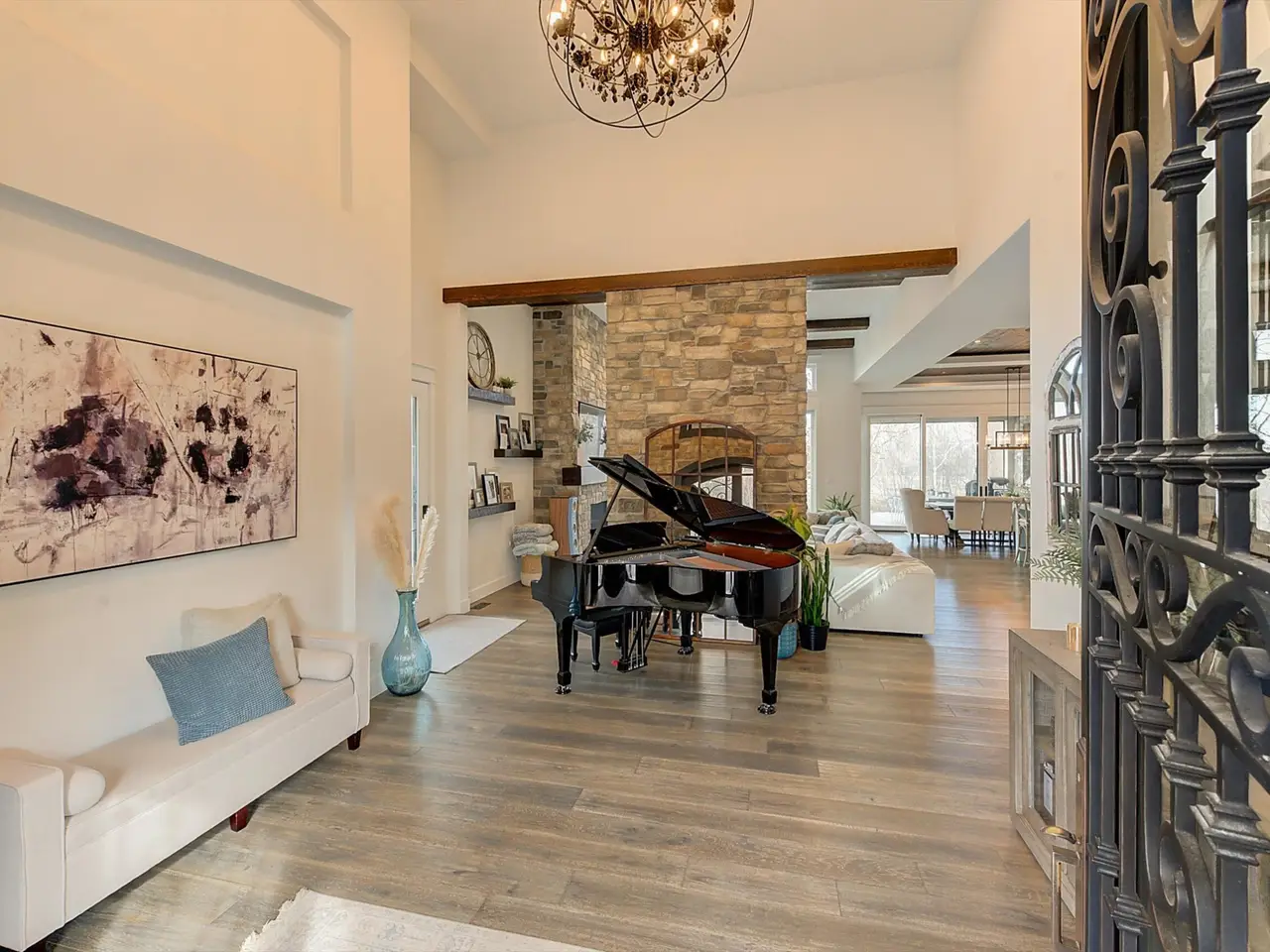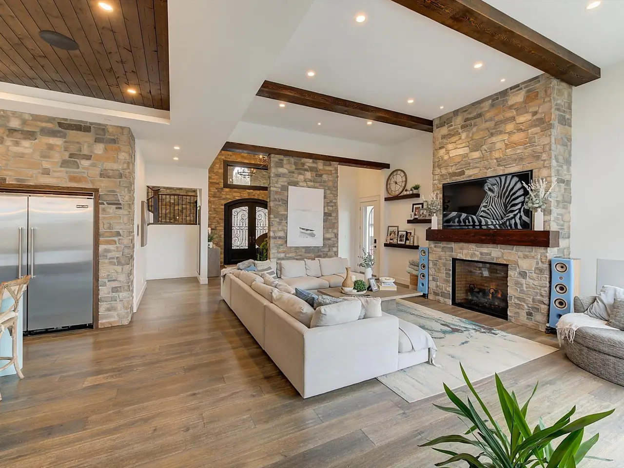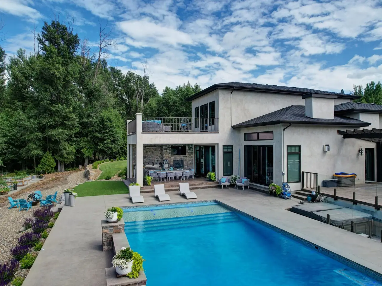 Listed by Unison Jane Hoffman Realty | Picturesque estate in Southeast Kelowna resting on approximately 7+ pristine acres, with a Tuscan-inspired residence offering over 9000 sq. ft. of luxury living with 6 beds and 7 baths. This home has been uniquely divided into 2 separate living spaces, making it ideal for multi-generational living. Designed to be a private oasis for entertainment and tranquility, the property features a high-end concrete 20×40 saltwater pool with a Baja shelf, multiple patios for outdoor living with a fireplace & TV, an outdoor kitchen, a detached 25×40 shop, horse barn/paddock, raised garden boxes, and 3 ponds surrounding the yard, creating an exceptional ambiance. The main home has been beautifully designed for a large family; the upper level offers 4 beds, including a “luxury hotel-like” primary retreat with a spa-like ensuite. A custom media/home theatre and games room with deck access offer a high-end experience for the “tech” in the family. The separate accommodation offers quality finishes and a spacious design for the extended family/in-laws. This completely private space features 3 bedrooms, 3 bathrooms, an oversized garage, and a patio to enjoy the tranquility of the surrounding ponds. This is an excellent opportunity to enjoy a rural setting surrounded by vineyards, orchards, only minutes to Myra Canyon recreational park for hiking/biking, trail riding, and the City of Kelowna amenities. 9 vehicle garage parking and 9 outdoor parking spaces.