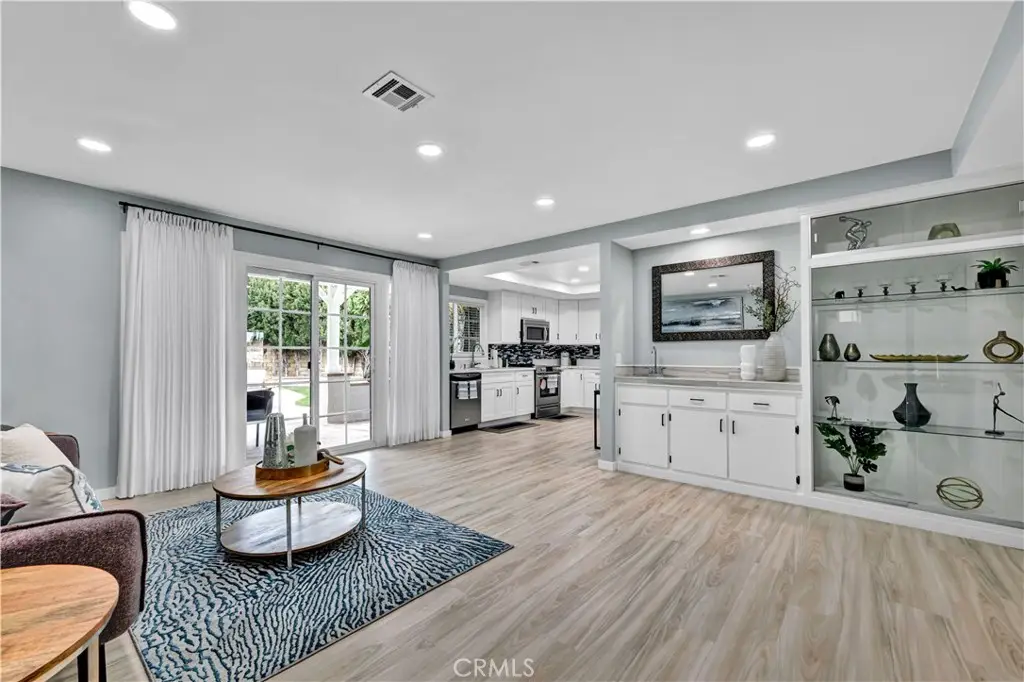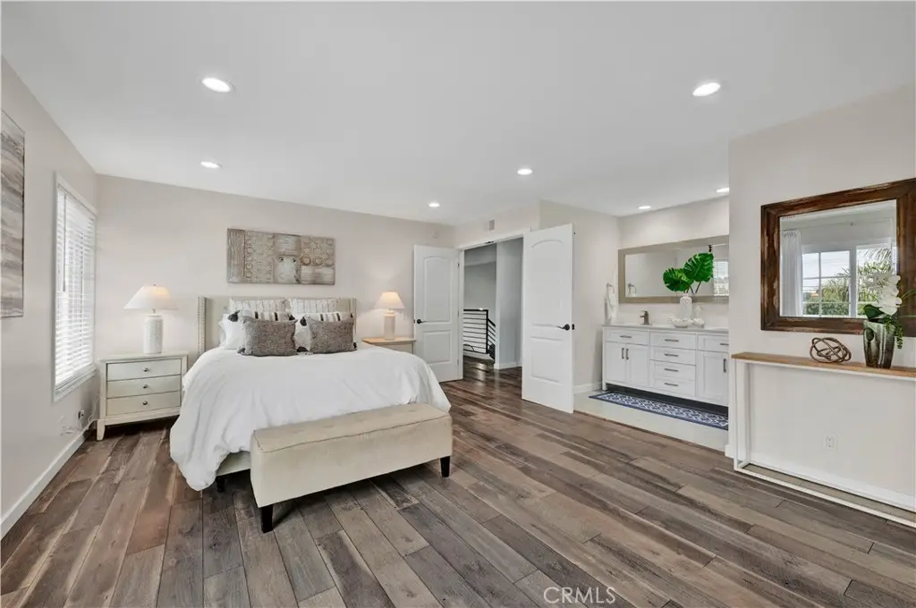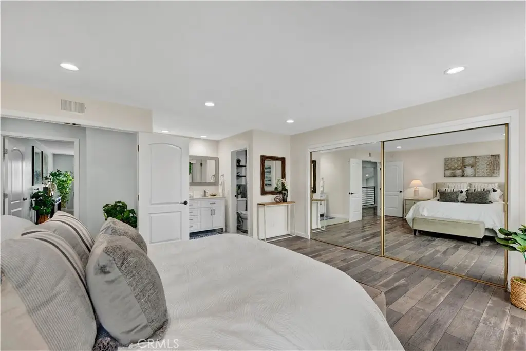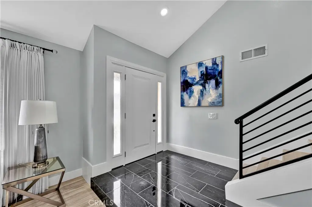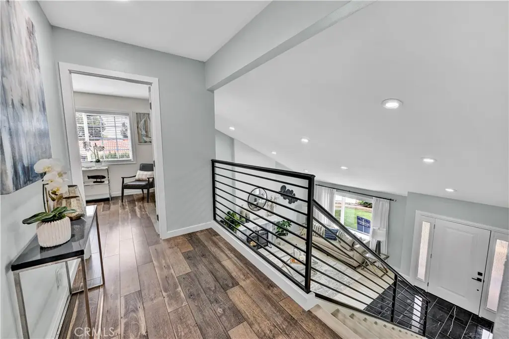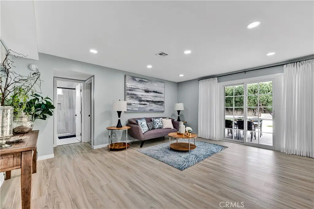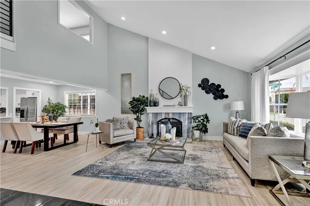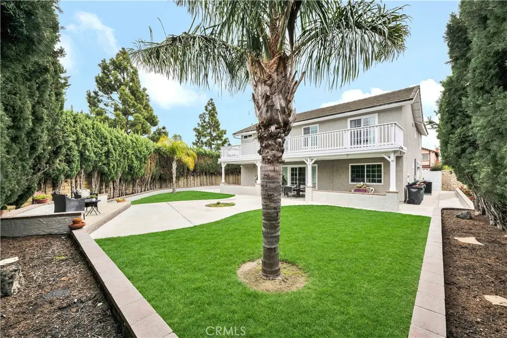 Just like a brand new custom-built home, this exquisite 4 bedroom, plus massive bonus room (optional 5th bedroom), 3.5 bath Parkside Estates Home offers 2,388 SF of luxurious living on an oversized 7400 SF lot. Every square inch has been masterfully upgraded, using the finest materials and craftsmanship with impeccable attention to detail throughout. Everything is New! This breathtaking residence features an open concept floorplan, central A/C, downstairs bedroom & bath, a finished epoxy garage, an amazing park-like backyard, all newer dual pane French windows & sliders, recessed lighting, new wood vinyl flooring, raised panel doors, designer paint, and more! Located on a cul-de-sac street, this home stands out from all the others with its captivating curb appeal showcasing custom hardscape of flagstone & stained concrete, professional tropical landscaping, new exterior paint, wood & flagstone siding, and concrete tile roof. Step through the custom front door w/2 sidelights to the showstopping elegant formal living room with soaring two-story ceiling, bay window, marble fireplace, adjacent formal dining room, and dramatic wrought iron staircase. The brand new chef's dream kitchen features coffered ceiling, Quartz countertops, glass mosaic tile backsplash, white shaker soft-closing cabinetry, an eat-in breakfast bar, and brand new stainless Frigidaire appliances. The kitchen flows seamlessly into the welcoming family room with wet bar & custom built-in glass display cabinet. All 3 bathrooms have been exquisitely upgraded with tile or marble wainscoting and surrounds, clear glass barn-door style enclosures, floating shelving, new vanities, and new designer fixtures. Upstairs double doors open to the luxurious primary suite with double-wide mirrored closets, dual sinks, and a sliding French door that leads to a long veranda balcony overlooking the gorgeous backyard. Two additional spacious bedrooms upstairs share a jack & jill bath, and the huge bonus room boasts a walk-around entertainer's wet bar, half bathroom, and storage closet. The backyard is made for entertaining with an extra long covered patio, raised planters, manicured landscaping, lush lawn, and extra wide side yards, one even includes an additional covered patio. this impressive home is in a great neighborhood, walking distance to Mile Square Park and neighborhood park. Close to award-winning schools, shopping, restaurants, and a short drive to beach.