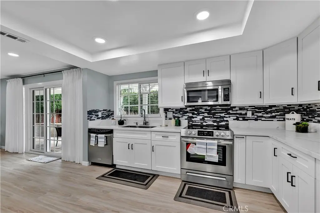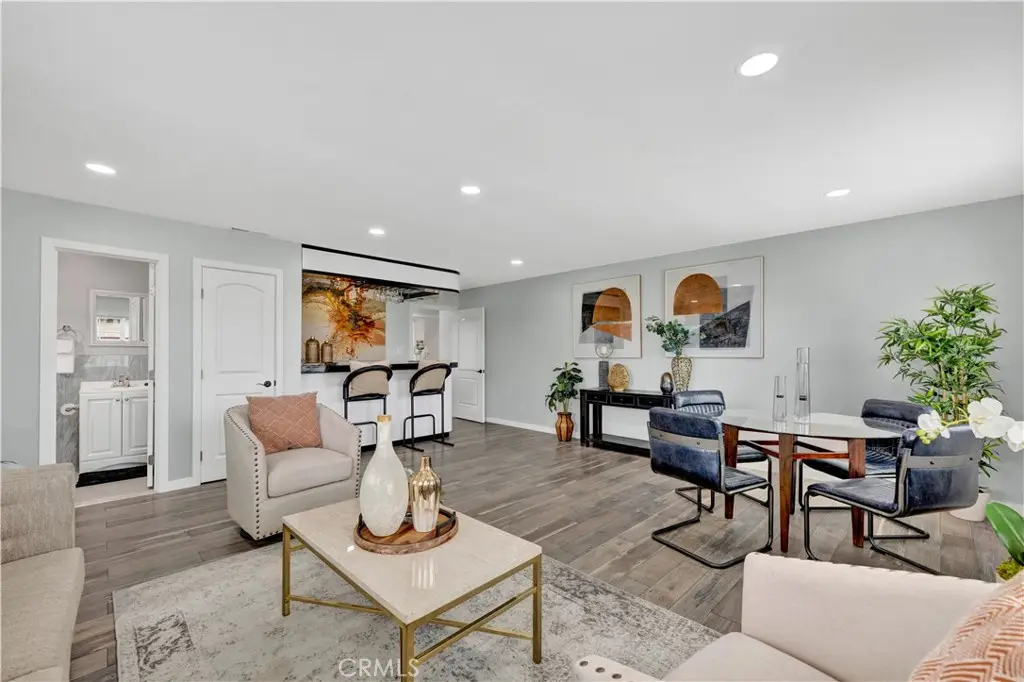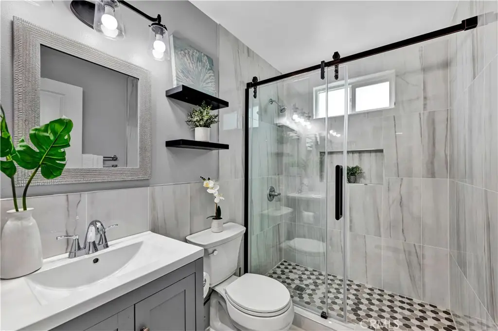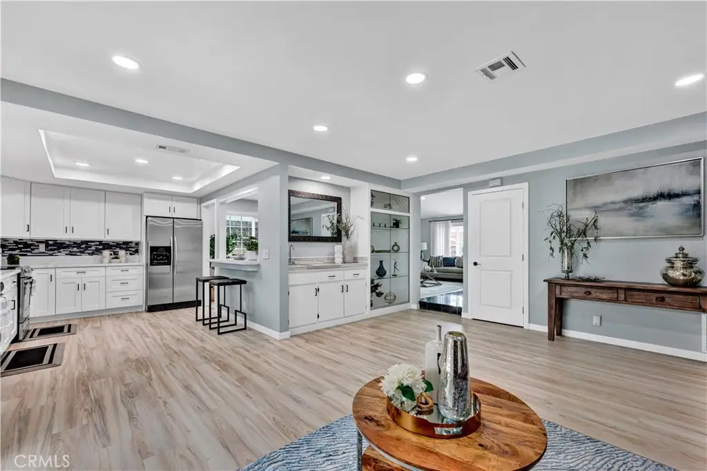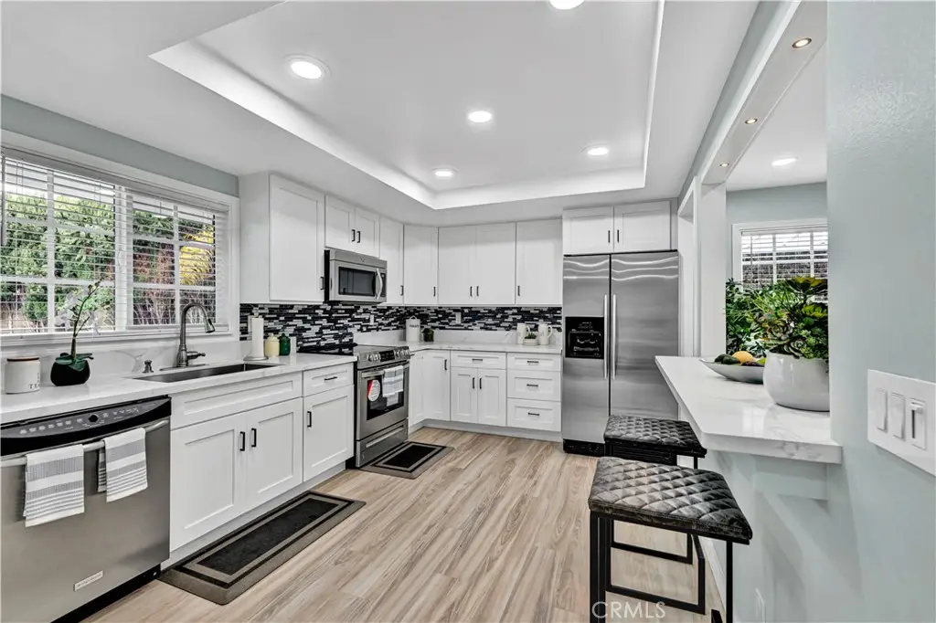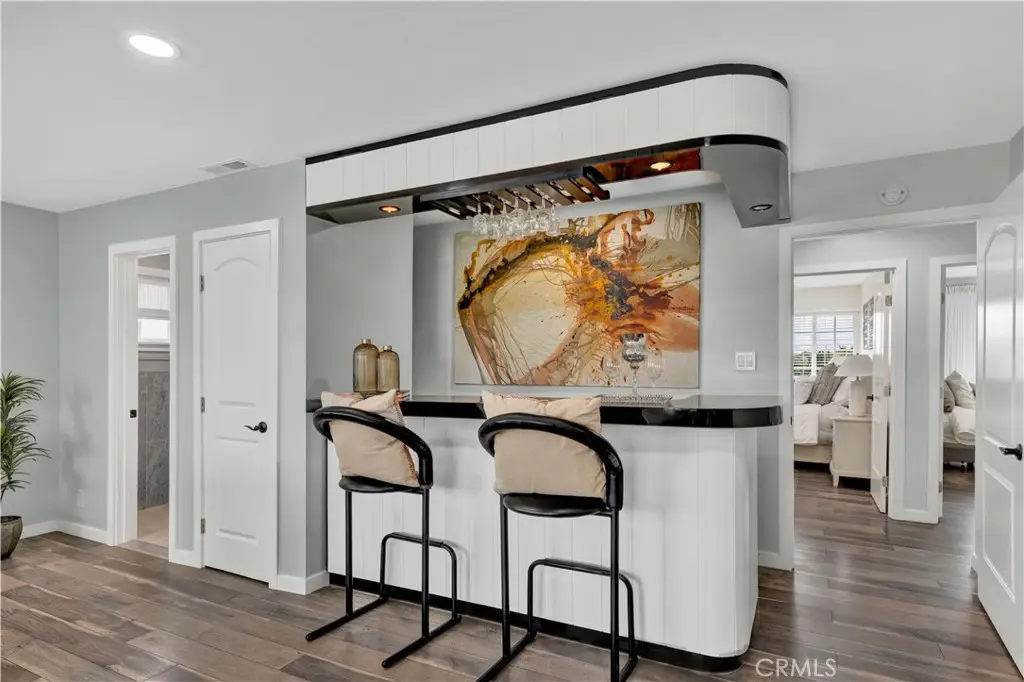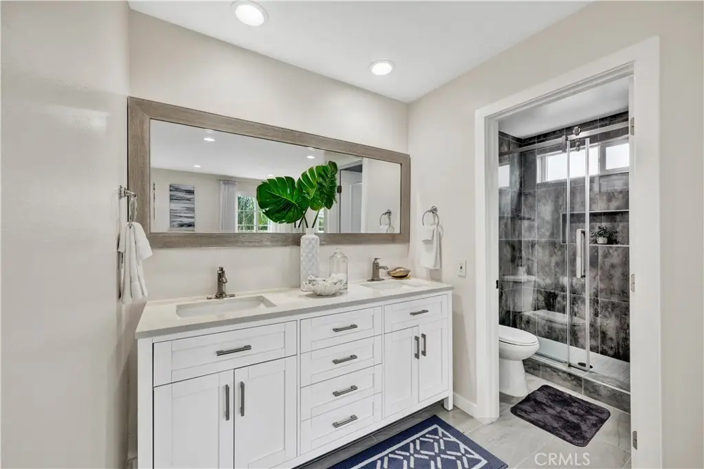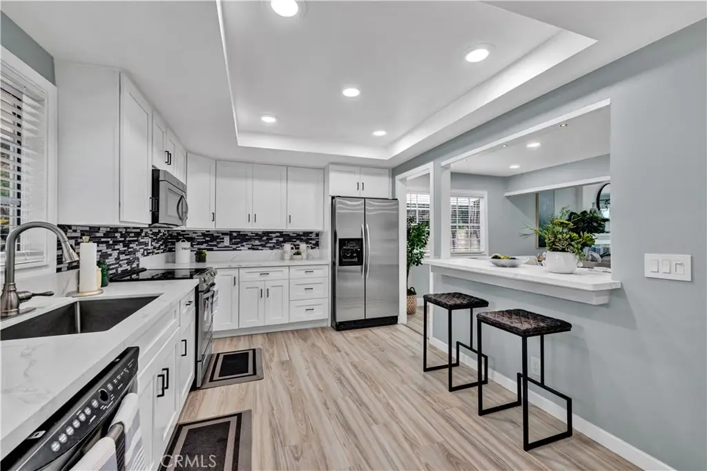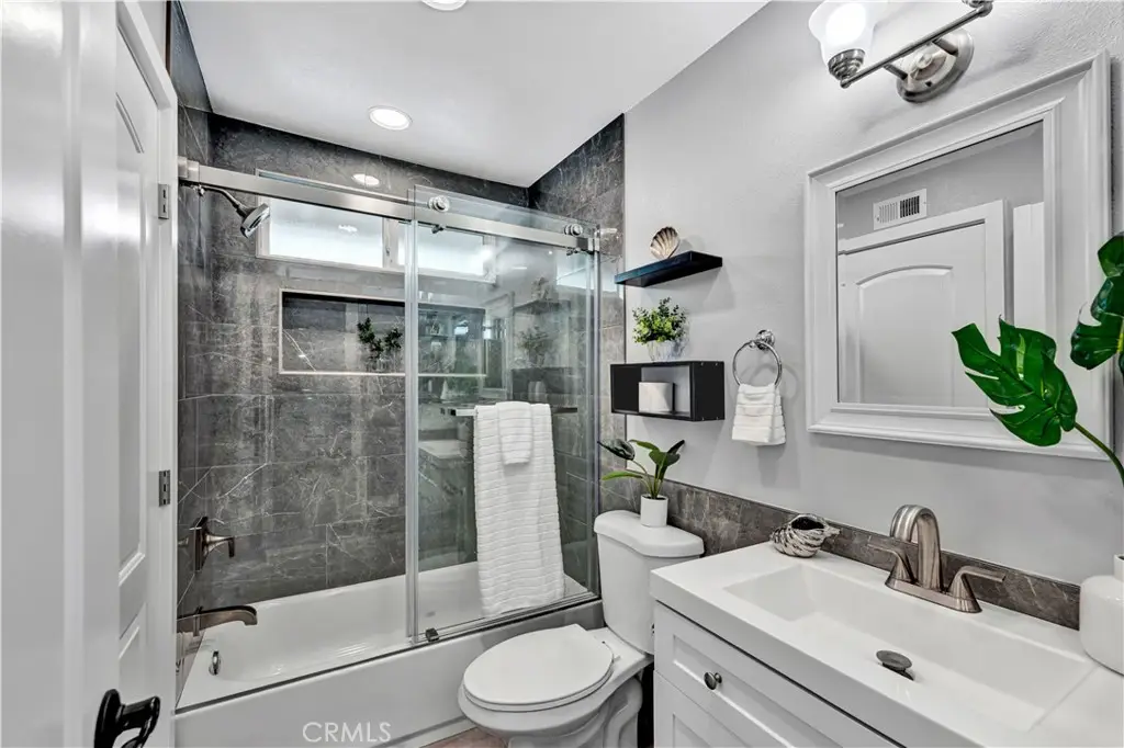 Just like a brand new custom-built home, this exquisite 4 bedroom, plus massive bonus room (optional 5th bedroom), 3.5 bath Parkside Estates Home offers 2,388 SF of luxurious living on an oversized 7400 SF lot. Every square inch has been masterfully upgraded, using the finest materials and craftsmanship with impeccable attention to detail throughout. Everything is New! This breathtaking residence features an open concept floorplan, central A/C, downstairs bedroom & bath, a finished epoxy garage, an amazing park-like backyard, all newer dual pane French windows & sliders, recessed lighting, new wood vinyl flooring, raised panel doors, designer paint, and more! Located on a cul-de-sac street, this home stands out from all the others with its captivating curb appeal showcasing custom hardscape of flagstone & stained concrete, professional tropical landscaping, new exterior paint, wood & flagstone siding, and concrete tile roof. Step through the custom front door w/2 sidelights to the showstopping elegant formal living room with soaring two-story ceiling, bay window, marble fireplace, adjacent formal dining room, and dramatic wrought iron staircase. The brand new chef's dream kitchen features coffered ceiling, Quartz countertops, glass mosaic tile backsplash, white shaker soft-closing cabinetry, an eat-in breakfast bar, and brand new stainless Frigidaire appliances. The kitchen flows seamlessly into the welcoming family room with wet bar & custom built-in glass display cabinet. All 3 bathrooms have been exquisitely upgraded with tile or marble wainscoting and surrounds, clear glass barn-door style enclosures, floating shelving, new vanities, and new designer fixtures. Upstairs double doors open to the luxurious primary suite with double-wide mirrored closets, dual sinks, and a sliding French door that leads to a long veranda balcony overlooking the gorgeous backyard. Two additional spacious bedrooms upstairs share a jack & jill bath, and the huge bonus room boasts a walk-around entertainer's wet bar, half bathroom, and storage closet. The backyard is made for entertaining with an extra long covered patio, raised planters, manicured landscaping, lush lawn, and extra wide side yards, one even includes an additional covered patio. this impressive home is in a great neighborhood, walking distance to Mile Square Park and neighborhood park. Close to award-winning schools, shopping, restaurants, and a short drive to beach.