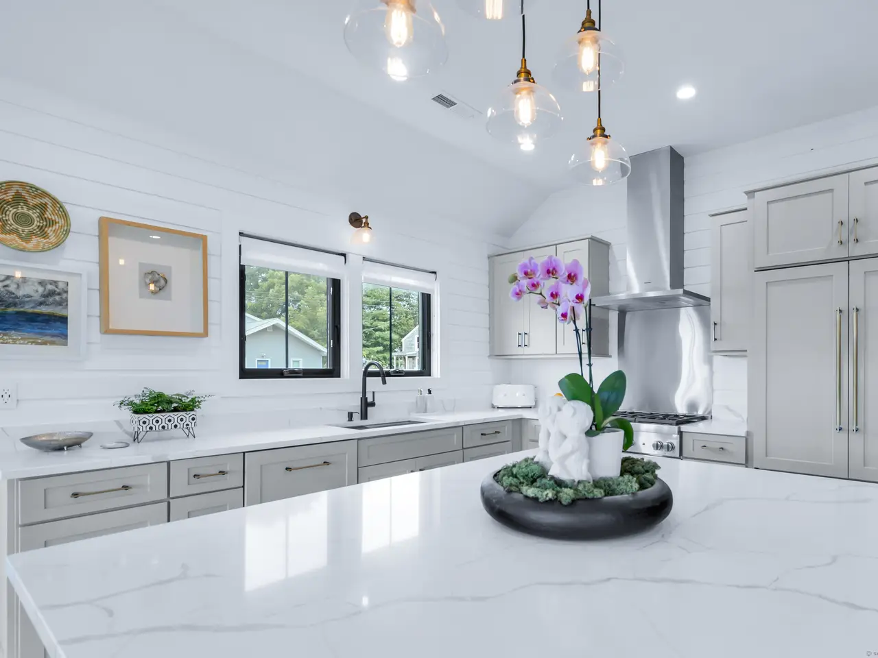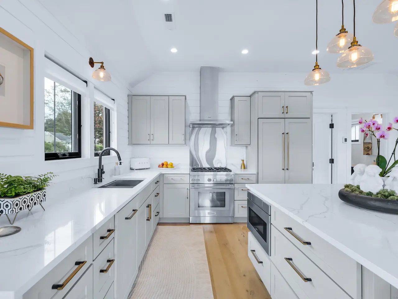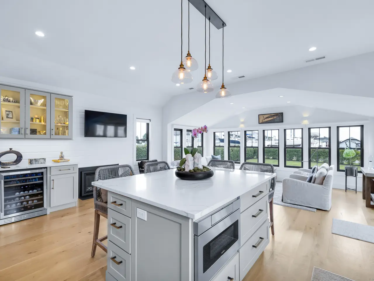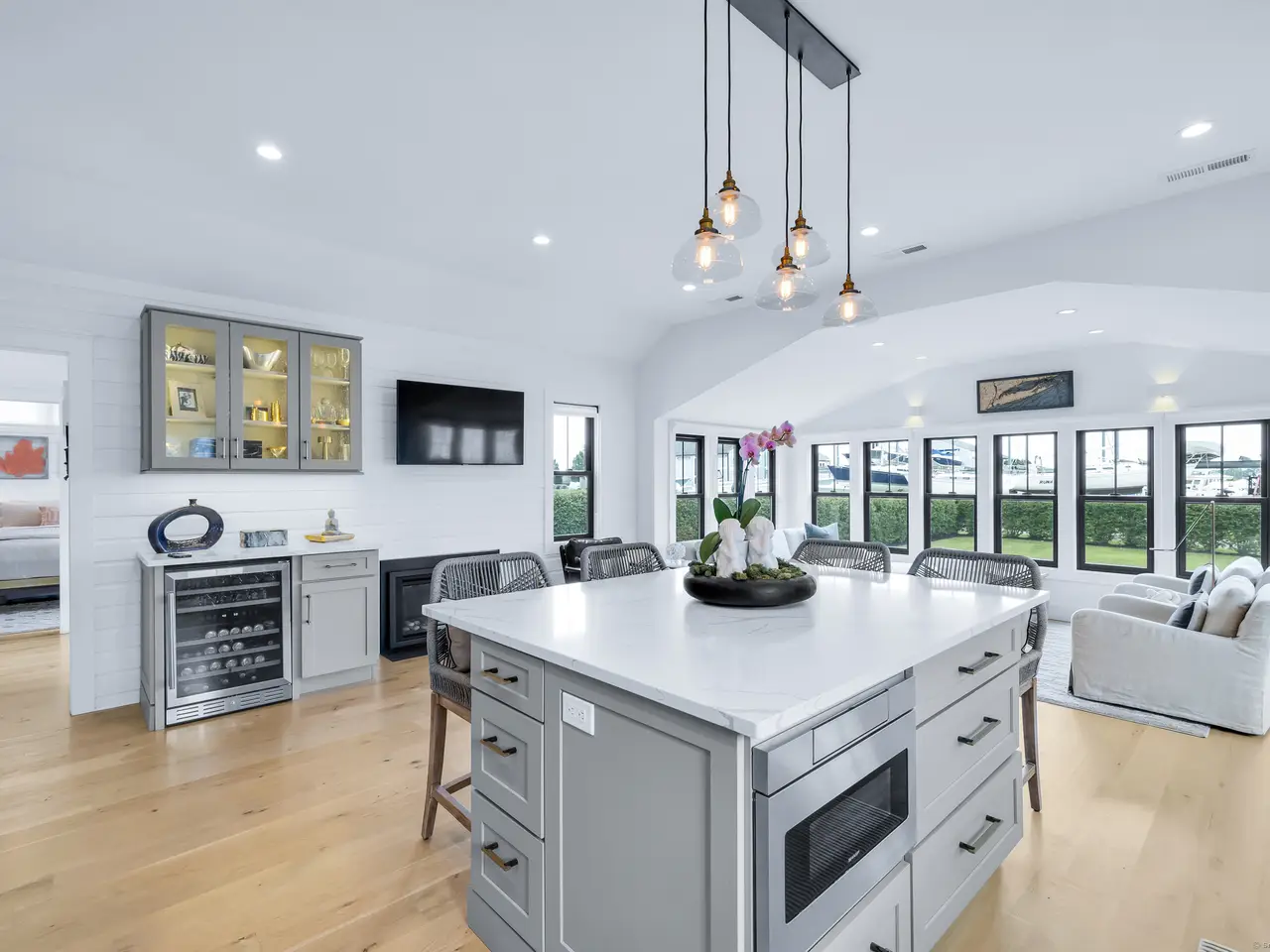 RARE OFFERING It's not often a property like this becomes available! Nicely situated in a prime location just steps to multiple marinas and some of the shoreline's favorite waterfront restaurants, this better-than-new two-bedroom, two full bath, one-car garage ranch is a standout. Completely rebuilt from the ground up by the current owner, this thoughtfully designed home offers luxurious one-level living with an open-concept layout and light-filled spaces throughout. High-end finishes include wide plank maple flooring, batten board walls and striking black Andersen Fibrex windows. The chef's kitchen features quartz countertops, a center island, and high end stainless steel appliances; all seamlessly connected to the inviting living room with a cozy gas fireplace. The primary suite offers a built-in closet system and a stunning designer bath with a walk-in shower. A second bedroom enjoys access to a full bath. Outside, the home is clad in durable Hardie Board siding with AZEK trim and a 50-year architectural roof. Set on a level .21-acre corner lot, the property includes a fenced area with a private terrace, a landscaped side yard with mature plantings for privacy, and a patio with a custom-built granite fire pit; perfect for entertaining. Enjoy modern conveniences like propane heat, central A/C, city water, and proximity to Shanks, Aqua, and the famous Lobster Landing; home to what many consider the best lobster roll in New England! Don't miss this opportunity to own a coastal gem.