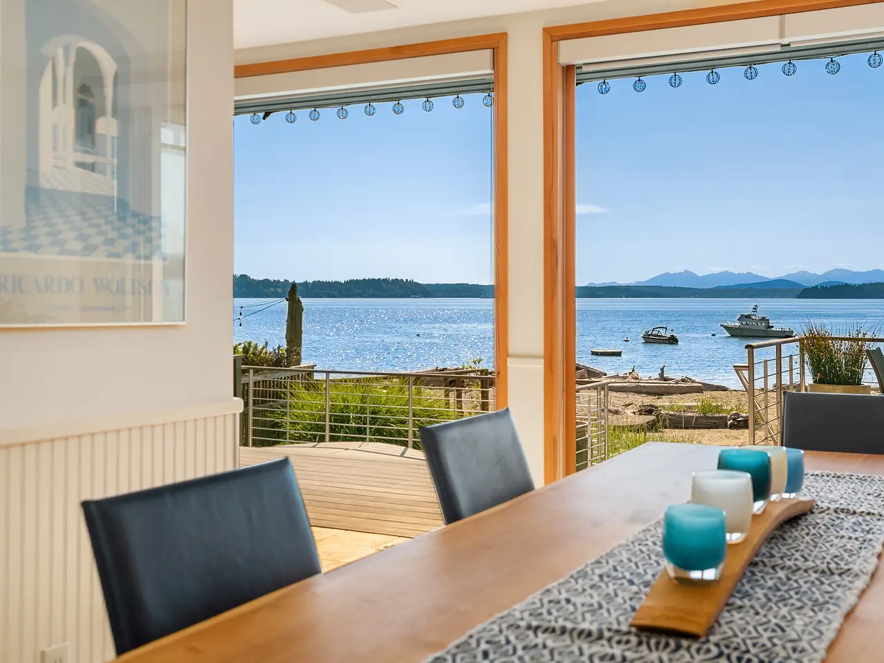 Follow your heart to this quintessential Pacific Northwest home, on a sandy shore, in West Seattle. Minutes from the city but feels so far away. This beachfront property is a rare gem, with fifty feet of water frontage, where you can swim, kayak, or fish. Disappearing glass doors seamlessly integrate indoor/outdoor living. You’ll love hosting parties and gatherings with friends, where you can enjoy the sun, sand, and sunsets from your west-facing decks. Watch the ferry from your hot tub as it delivers passengers to and from Vashon and beyond. Enjoy stunning views of the Sound and Olympic Mountain range from almost every room. No bank/bulkhead to worry about - just walk right out to the shore. This Pacific Northwest, beachfront, playground will sooth your soul.
