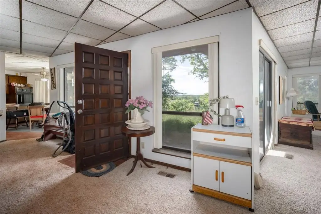 Welcome to your private slice of country paradise 230 STUNNING ACRES acres of rolling land offering unmatched peace, natural beauty, and limitless potential. A beautifully tree-lined, covered drive welcomes you to this expansive property, which spans both sides of the road and showcases panoramic views stretching over two miles. Whether you're dreaming of a secluded hunting retreat, a working livestock ranch, or a serene church getaway, this land offers the perfect setting. The property features multiple fenced pastures with rich grass and quality hay, ideal for cattle or horses. A scenic pond and dense timberland, including sections of lush river bottom, create an excellent environment for both livestock and wildlife. Deer are a frequent sight, making this a premier location for hunting enthusiasts. At the heart of the land lies a unique underground rock house with a flat metal roof. It boasts a spacious living area with large picture windows that frame breathtaking views and a rock wood-burning fireplace that adds rustic charm and warmth. Outbuildings include a large barn with full-length covered pens on both sides, a three-sided shed, and a loading chute, providing ample infrastructure for ranching operations. Mature native pecan trees, redbuds, wildflowers, and plum bushes dot the landscape, adding seasonal color and character to this tranquil retreat. Barbed wire fencing secures the perimeter, and the overall setting is peaceful, quiet, and rich with potential. Whether you're looking to live off the land, start a cattle operation, or simply enjoy the natural beauty and solitude, this property delivers on every level.