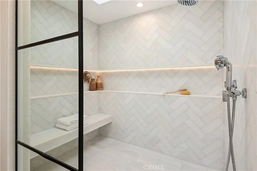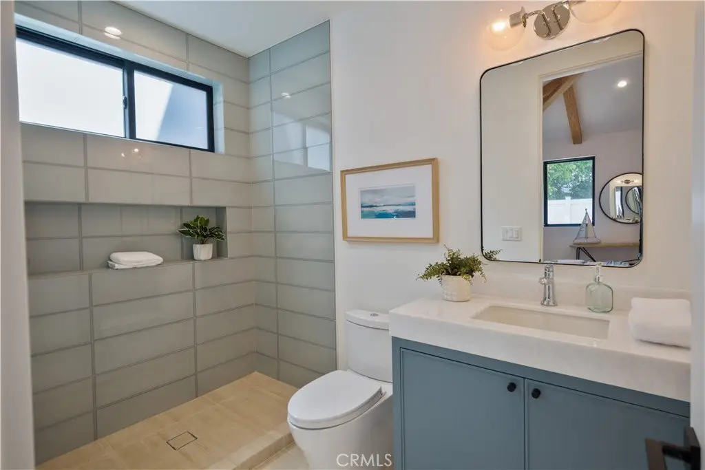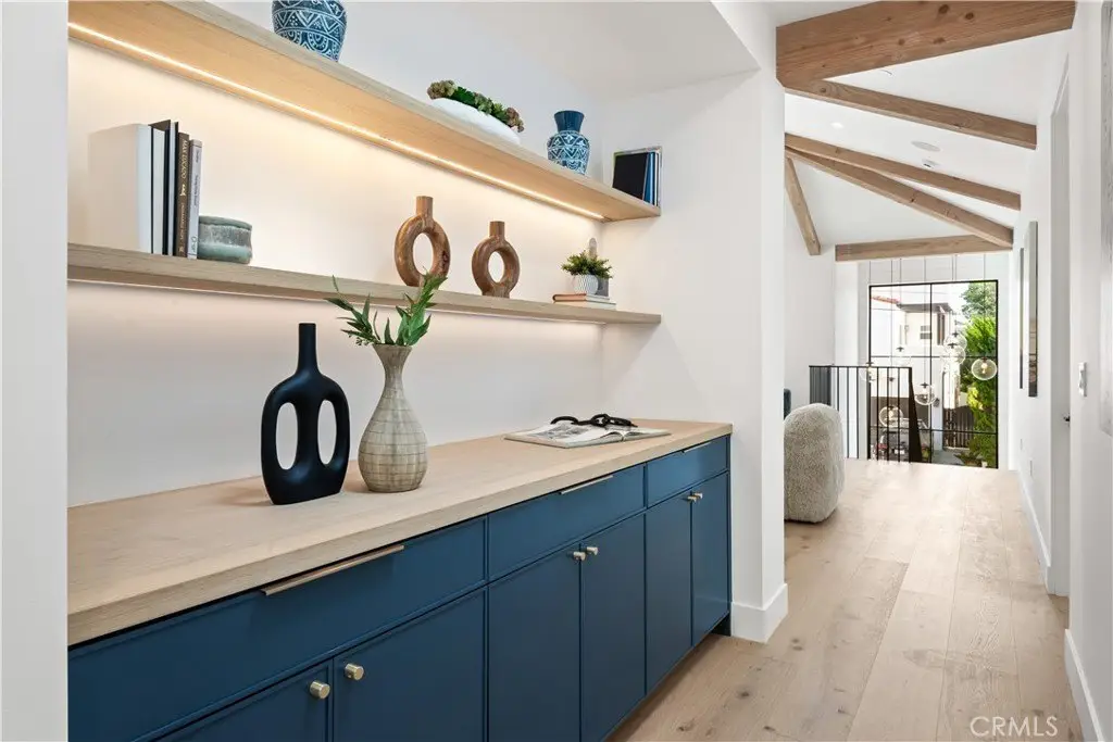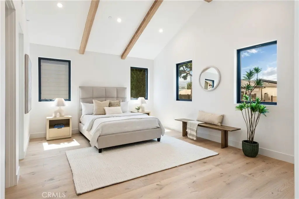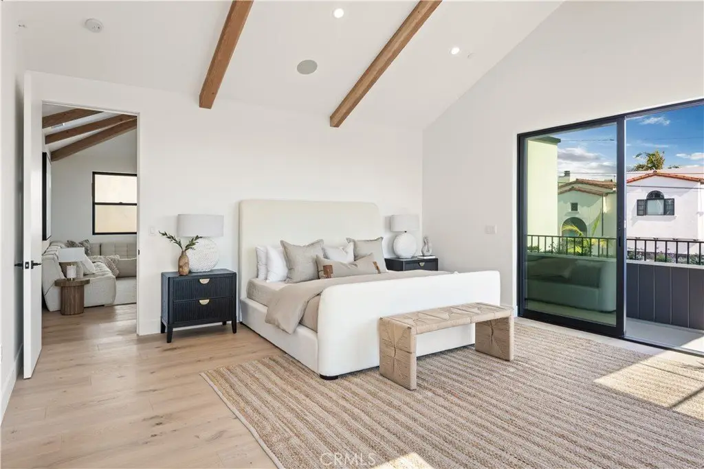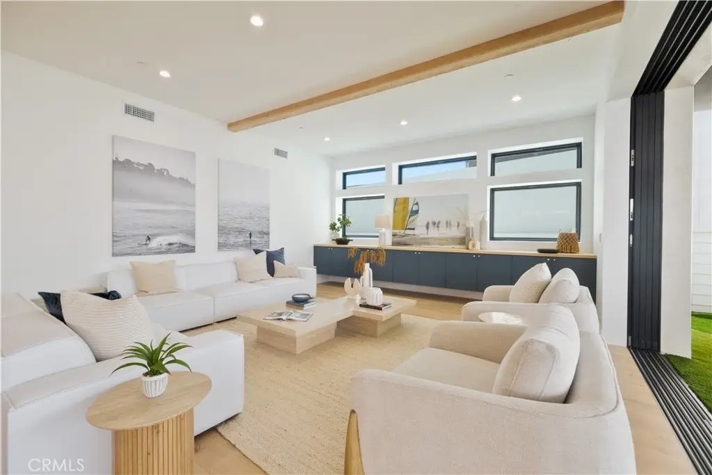 Wake up to soft ocean breezes drifting through your home as the day unfolds. A 28-foot Fleetwood sliding glass wall opens entirely to your private backyard, creating a seamless indoor-outdoor environment ideal for entertaining. The glass wall continues as a sliding window that pockets away, transforming into a countertop bar that connects your kitchen directly to the built-in grilling station outside—perfect for effortless gatherings and sunset dinners with friends. Inside, a 10-foot Arabescato Belgia marble island anchors a chef’s kitchen equipped with a 48-inch Wolf range, Sub-Zero refrigeration, and custom cabinetry, blending functionality with refined design. The open-concept layout flows beneath 10-foot ceilings with sand-blasted Douglas fir beams, complemented by wide-plank white oak floors and designer lighting throughout. Upstairs, the primary suite features a 12-foot glass wall that opens to peekaboo ocean breezes, while the spa-inspired bath offers a freestanding soaking tub, a glass walk-in shower with a bench and skylight, and dual walk-in closets ready for your personal touch. Each bedroom includes its own en-suite bath and either a built-in or walk-in closet, providing comfort and privacy for family and guests. Modern living is made seamless with smart home features including WiFi access points on every floor, a Ring security system, Nest climate control, and Cat6 wiring throughout for blazing internet speeds. Solar panels paired with a Tesla battery pack provide energy efficiency, while a 2-car garage with a 40-amp EV charger ensures practicality meets lifestyle. Blending Scandinavian modern elegance with coastal California ease, this newly constructed East Hermosa residence is crafted for those who value intentional design, warm contemporary style, and a connection to the vibrant beachside community around you. When you buy here, you are buying a lifestyle.
