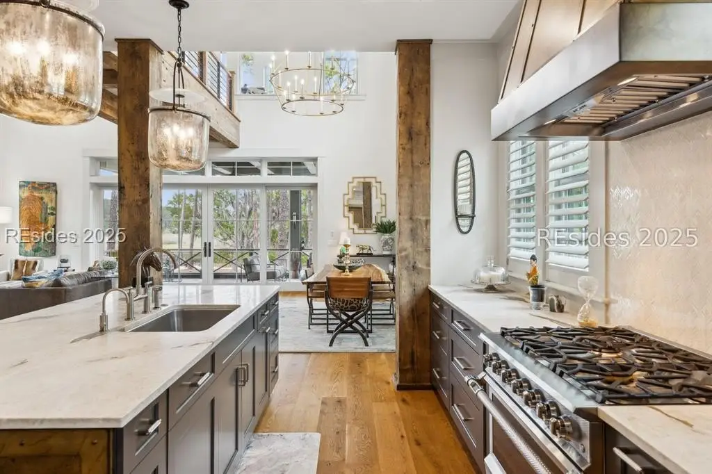 415 Corley St is the ultimate Palmetto Bluff escape! Located in Moreland Village, the stunning marsh-front property provides 180-degree views from its screened and open porches and unbelievable outdoor space. With 4 beds/4 baths, plus a bunkroom, and sprawling two-story living space with chef's kitchen and auxiliary kitchen, this luxury coastal home feels completely private yet is steps from Coles restaurant, bowling, 2 pools, fitness center, Moreland landing, and more. A Lowcountry oasis surrounded by preserved woodlands and marsh, this home is ideal for a tranquil primary residence or lucrative short-term rental investment.