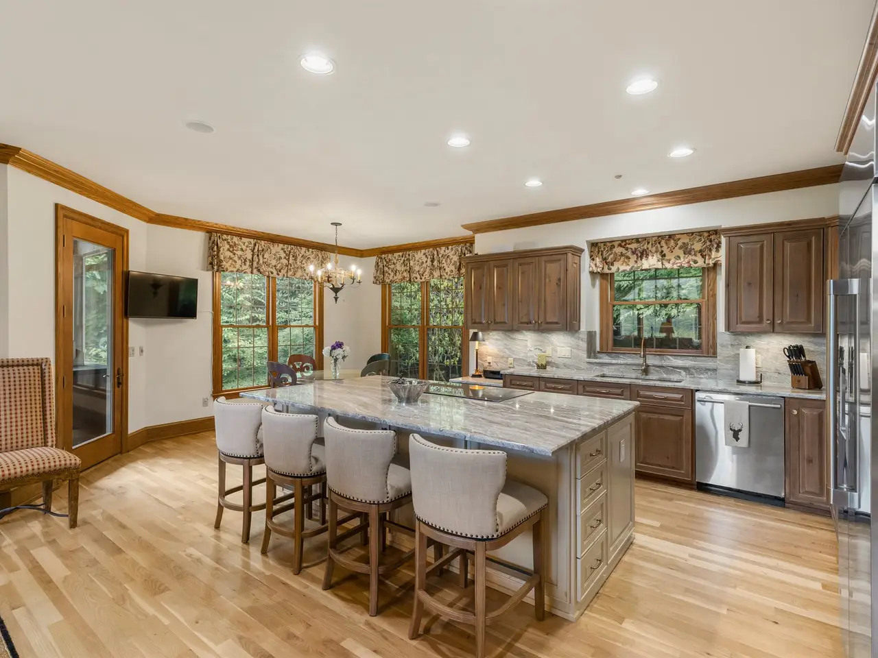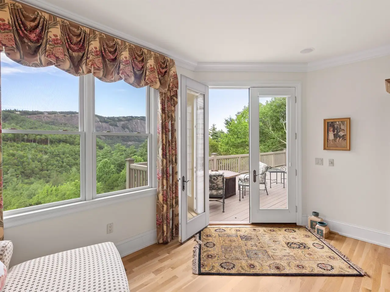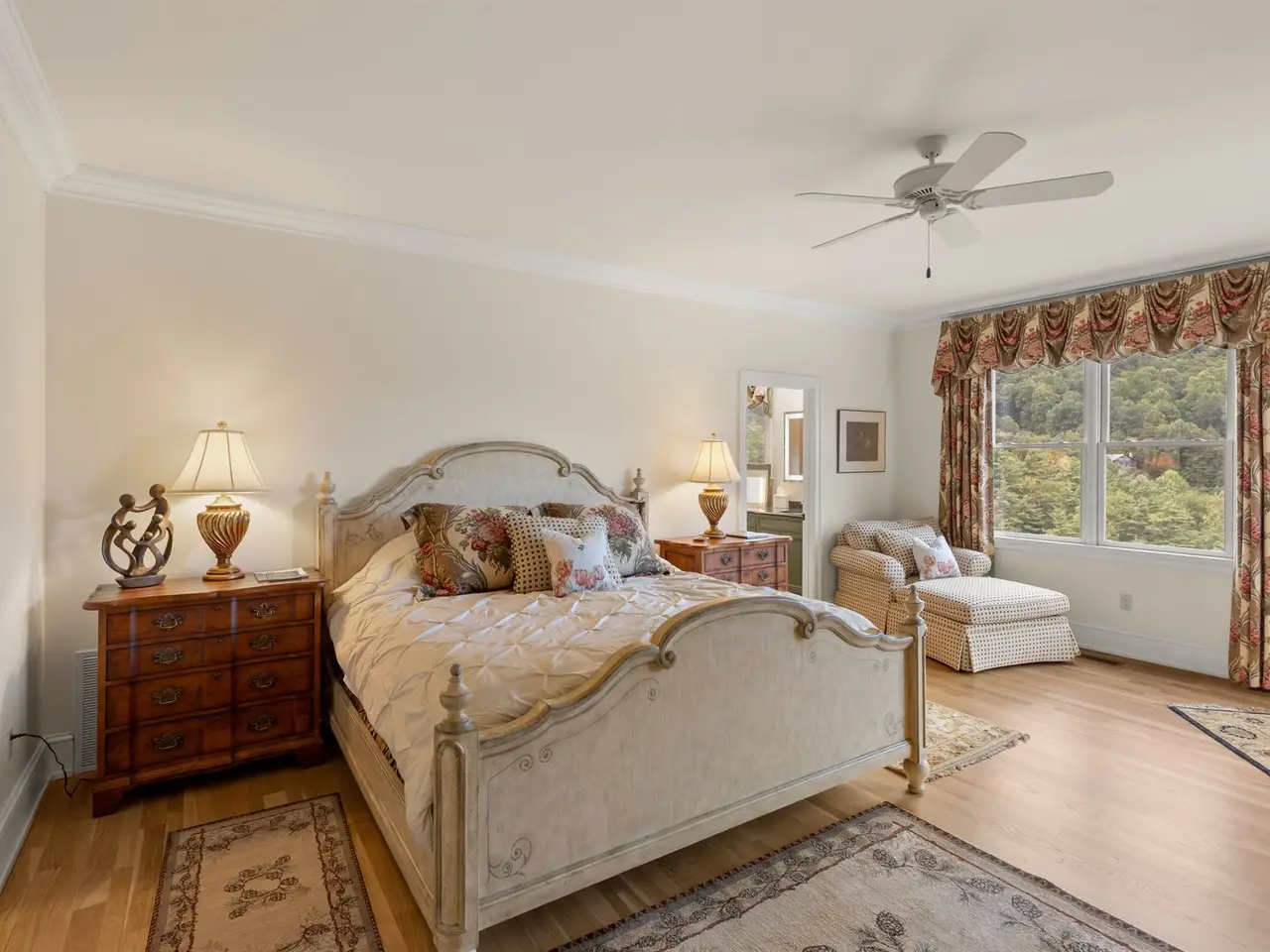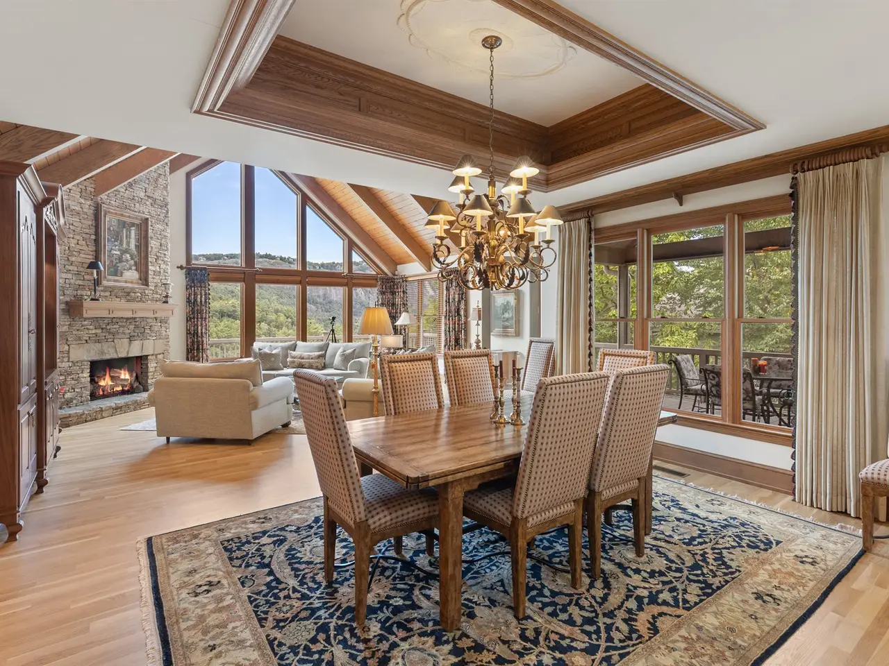 This is the panoramic BIG VIEW! Prepare to be captivated by sweeping, unobstructed views of iconic Whiteside Mountain from this stunning Highlands Falls Falcon Ridge residence, a home so remarkable it has been featured twice in Architectural Digest. Designed with generous proportions and effortless flow, the home offers main-level living with the primary suite conveniently located on the entry level. Architectural details abound, highlighted by custom wormy chestnut and oak features throughout, including an impressive 3? solid wormy chestnut entry door. The primary suite commands breathtaking mountain views and sunrises and boasts a lavish Italian marble bath with soaking tub, oversized shower, dual lighted mirrors, hidden lighted vanity, Kohler fixtures, custom walk-in closets, and a private wet bar with sink and mini-fridge. The open-concept living, dining, and kitchen spaces flow seamlessly onto a screened porch with a fully outfitted grilling station featuring a Blaze grill?an entertainer's dream with Whiteside Mountain as the backdrop. The main level also conveniently includes a guest bedroom, full bath, office/den with custom glass paned wormy chestnut and oak door, and a full laundry room with sink. The lower level provides for guest privacy with a second living area with fireplace, private deck, two spacious en-suite bedrooms, powder room, bonus/flex room with gym/playroom potential, and a secondary laundry area. Recent upgrades are extensive, including a remodeled kitchen, refinished hardwood floors, 27 new windows, new roof, gutters with guards, encapsulated crawlspace, repaved driveway with focal pavers, updated HVAC systems, new water heaters with recirculation pump, blown-in attic insulation, new gas logs in main level fireplace, and view clearing to fully showcase dramatic views of Whiteside Mountain, Wildcat Ridge, and Cullasaja Club beyond. A drainage system beneath the upper deck ensures protection for the lower-level outdoor living area. Peace of mind comes with a 500-gallon fresh water reserve tank and a whole-house generator. A two-car garage with workshop, along with a welcoming exterior accented by a serene water feature, completes this mountain sanctuary. This Highlands Falls home is more than a residence?it is a retreat of timeless architecture, meticulous updates, and awe-inspiring views. Membership to Highlands Falls CC is not mandatory but the amenities are tremendous and the club is vibrant.