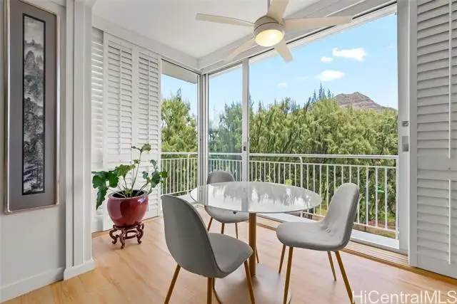 Don't miss this opportunity for a well priced, beautiful and large 1-bedroom unit a popular, Diamond Head Apartment's Ltd. A well-managed and maintained building FEATURES a newly renovated stylish entry, covered common area open air lanai with BBQ, guest seating to entertain, heated pool, beach access, and an outdoor shower. Living along the "Gold Coast" of Honolulu is PERFECT for a very convenient location! This jewel of a unit has GREAT greenery views of Kapiolani Park's ironwood trees, distant mountains, Diamond Head over the treetops, and city day & nightlight views! The trade winds blow nicely through the unit bringing in Hawaii's fresh air. An open living room and enclosed lanai are surrounded by large, picturesque windows for WONDERFUL natural lighting. The gold coast is within walking distance of the Waikiki Shell Amphitheatre, popular beaches, restaurants, hiking, surfing, shopping, open markets, and IDEAL for living a healthy lifestyle! Designed by Vladimir Ossipoff and built in 1957, this well laid out unit is move-in ready and features built-in book shelving, extra closet spaces, plantation shutters and a meticulously maintained condition. Furniture is negotiable.