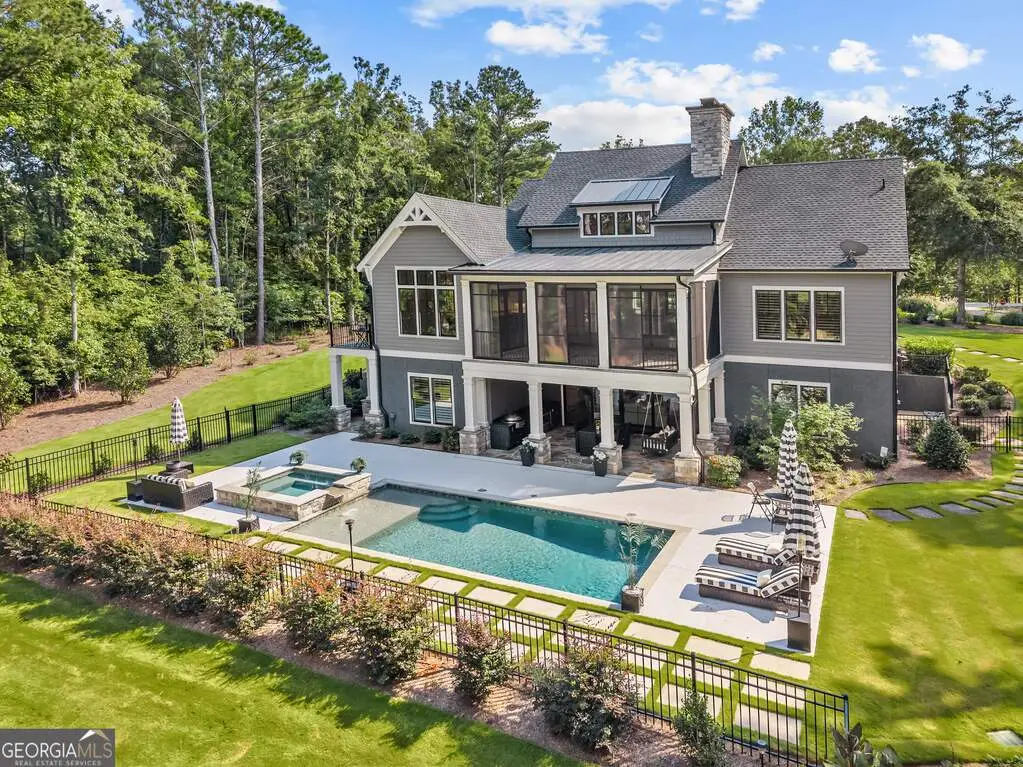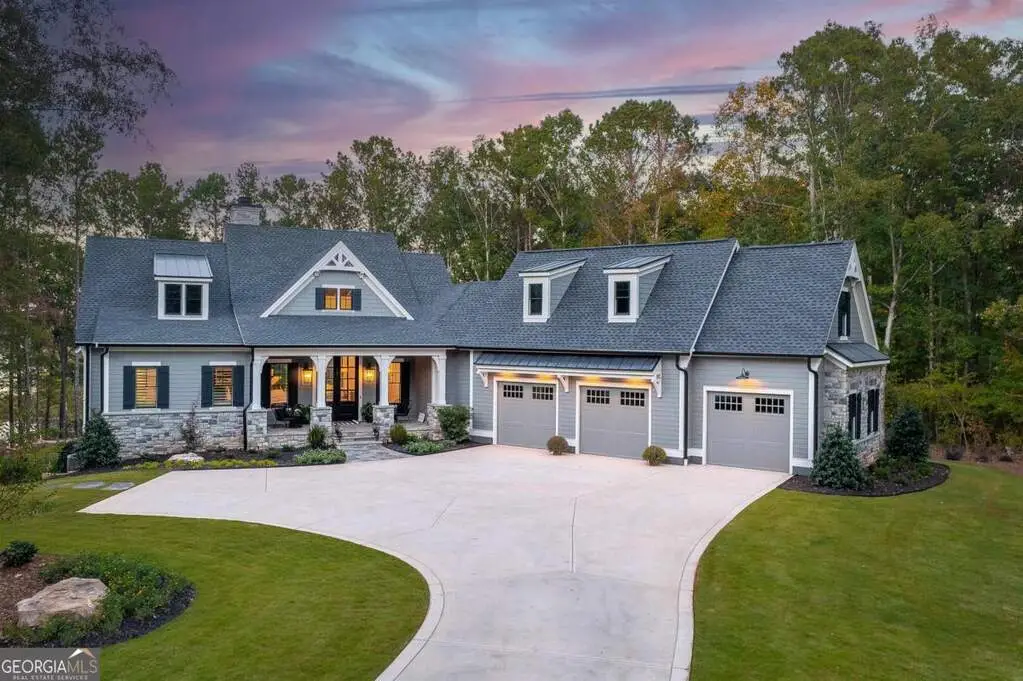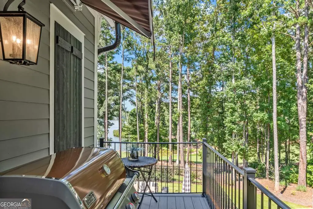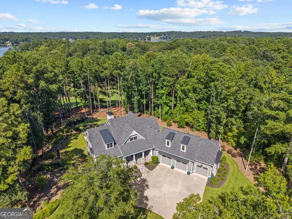 Exquisite Custom Home Overlooking Lake Oconee Nestled on a 1.45-acre flawlessly manicured lot, this magnificent custom-built home exemplifies premier craftsmanship and luxurious living. Perfectly designed to capture both sophistication and comfort, this property is a sanctuary for those seeking a home that stands apart in elegance and prestige. Welcome to Your Dream Home Experience expansive lakeside residence, featuring 4 spacious bedrooms and 3.5 meticulously designed bathrooms. Stepping through the front door, you are greeted by an airy open floor plan and soaring ceilings adorned with wood beam accents and a stunning floor-to-ceiling stone fireplace. A Culinary Haven The gourmet chef's kitchen is the epitome of luxury, outfitted with custom cabinetry and a porcelain island. It's well-equipped with premium appliances, including an adjacent wet bar complete with a Miele built-in coffee maker and a wine cooler, perfect for entertaining guests. Effortlessly extend your gatherings to the all-season screened patio through multi-slide glass doors that merge the great room and dining area with the natural beauty of the outdoors. Private Retreat The main floor is home to the stunning primary bedroom, and a spa-like primary bathroom that features timeless fittings and a custom closet tailored. Additional organized storage solutions are included in the spacious laundry and mudroom, designed with built-in cabinets and cubbies for convenience and style. Elegance Across Levels An elegant staircase leads to the terrace level, offering another open floor plan with a second captivating stone fireplace. This space hosts a versatile great room, dining area, and three impeccably appointed bedrooms. The outdoor experience continues to a summer kitchen exemplifying both functionality and beauty. Luxury Amenities The home's outdoor oasis includes a breathtaking pool with a sun deck, spa and an exquisite water feature that cascades into a Koi fish pond. Children and pets can