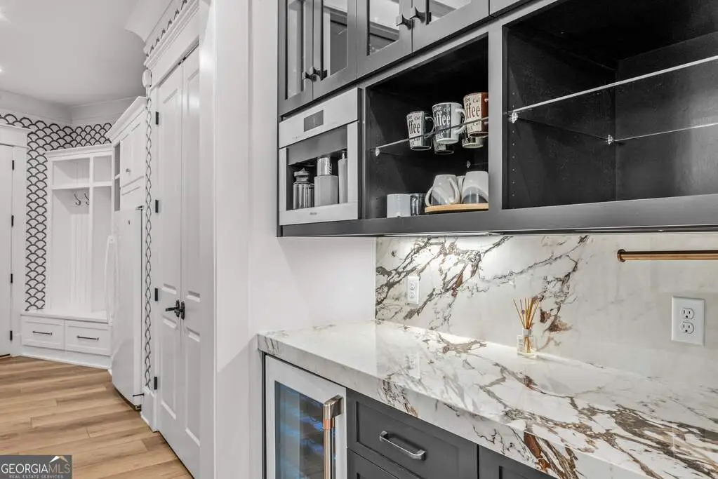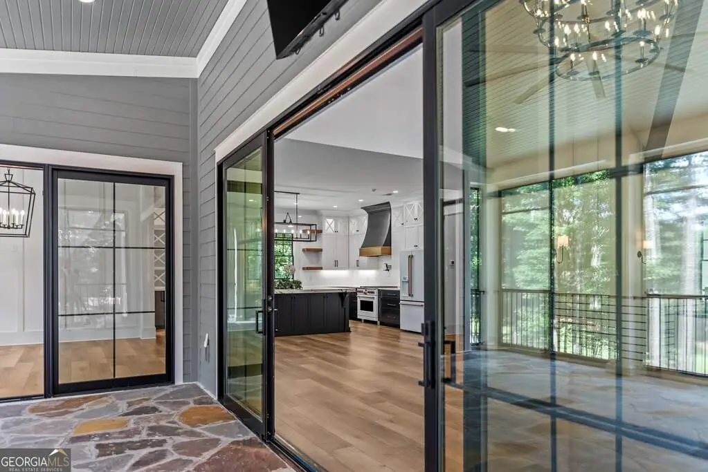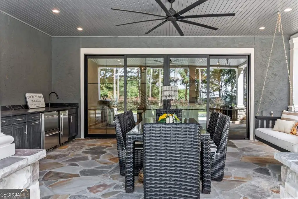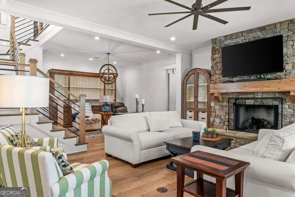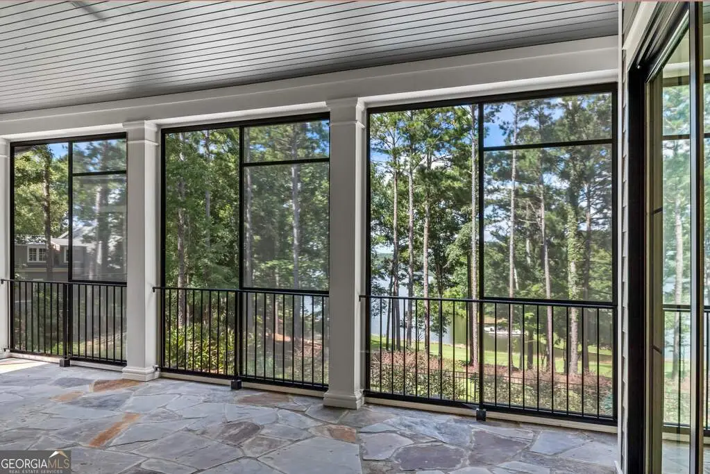 Exquisite Custom Home Overlooking Lake Oconee Nestled on a 1.45-acre flawlessly manicured lot, this magnificent custom-built home exemplifies premier craftsmanship and luxurious living. Perfectly designed to capture both sophistication and comfort, this property is a sanctuary for those seeking a home that stands apart in elegance and prestige. Welcome to Your Dream Home Experience expansive lakeside residence, featuring 4 spacious bedrooms and 3.5 meticulously designed bathrooms. Stepping through the front door, you are greeted by an airy open floor plan and soaring ceilings adorned with wood beam accents and a stunning floor-to-ceiling stone fireplace. A Culinary Haven The gourmet chef's kitchen is the epitome of luxury, outfitted with custom cabinetry and a porcelain island. It's well-equipped with premium appliances, including an adjacent wet bar complete with a Miele built-in coffee maker and a wine cooler, perfect for entertaining guests. Effortlessly extend your gatherings to the all-season screened patio through multi-slide glass doors that merge the great room and dining area with the natural beauty of the outdoors. Private Retreat The main floor is home to the stunning primary bedroom, and a spa-like primary bathroom that features timeless fittings and a custom closet tailored. Additional organized storage solutions are included in the spacious laundry and mudroom, designed with built-in cabinets and cubbies for convenience and style. Elegance Across Levels An elegant staircase leads to the terrace level, offering another open floor plan with a second captivating stone fireplace. This space hosts a versatile great room, dining area, and three impeccably appointed bedrooms. The outdoor experience continues to a summer kitchen exemplifying both functionality and beauty. Luxury Amenities The home's outdoor oasis includes a breathtaking pool with a sun deck, spa and an exquisite water feature that cascades into a Koi fish pond. Children and pets can