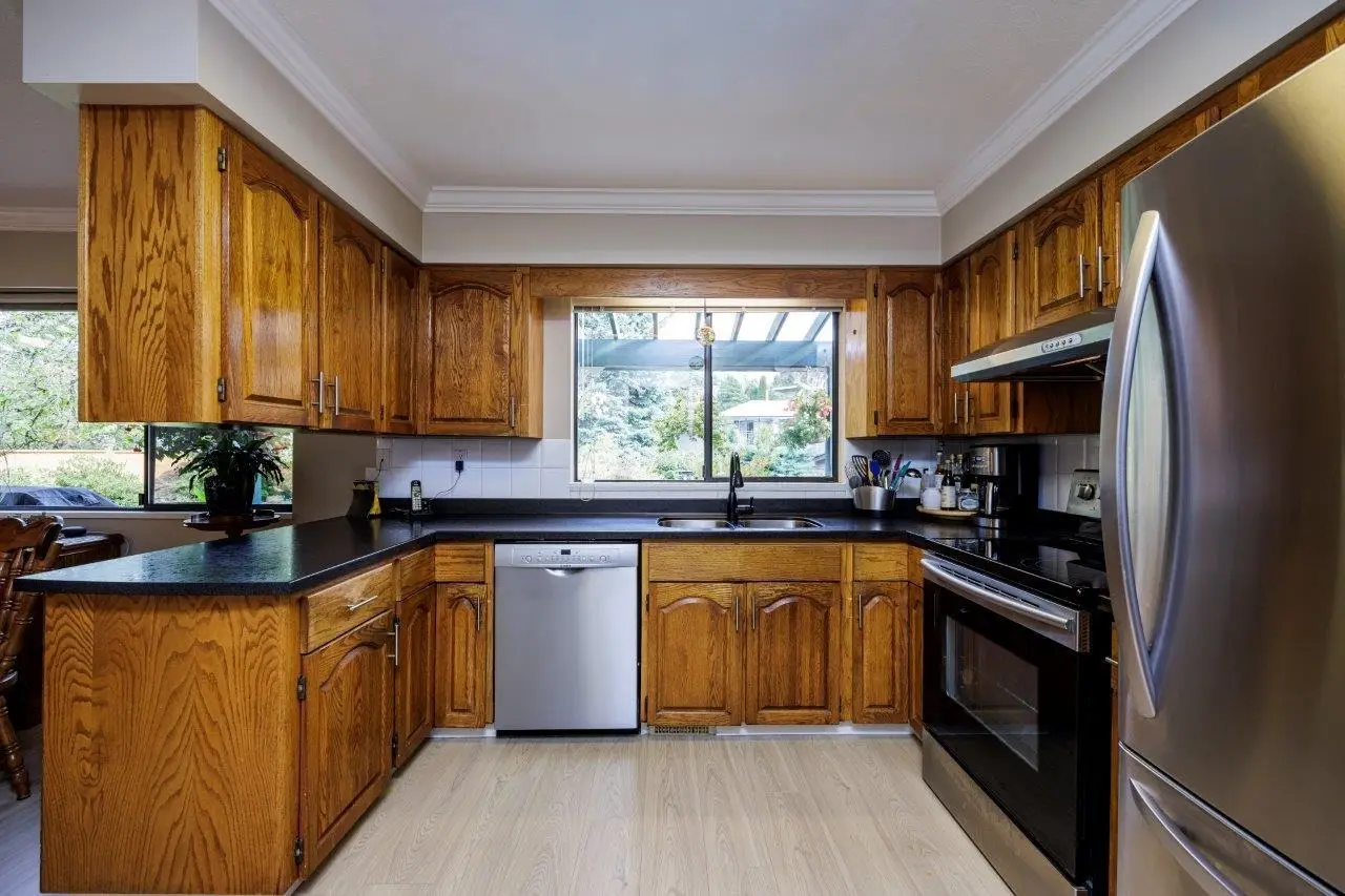 WELCOME TO THIS BEAUTIFULLY MAINTAINED 3 BEDROOM, 3 BATH HOME ON A LARGE 8887 SQFT LOT WITH LANE ACCESS. Situated in the MOST TRANQUIL Upper Deer Lake Cul-De-Sac, you are only MINUTES TO GREAT SCHOOLS, DEER LAKE PARK and WALKING TRAILS, transit, Burnaby Lake Sports Fields. This WEST COAST CONTEMPORARY boasts VAULTED CEILINGS, NATURAL WOOD TRIM, emphasizing an open concept layout, MAXIMIZING NATURAL LIGHT, creating a seamless connection between indoor and outdoor spaces. A beautiful, LUSH BACKYARD with a manicured lawn, floral gardens, creating a serene backyard oasis. Highlites include newer flooring, spectacular Christina Lake Stone fireplace, updated appliances, picturesque electric fireplaces, large primary with ensuite and walk ins, double attached garage.