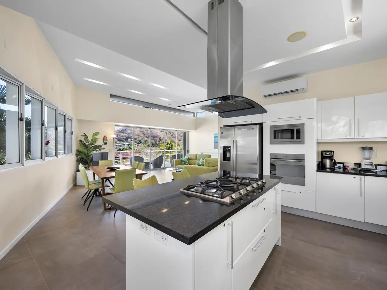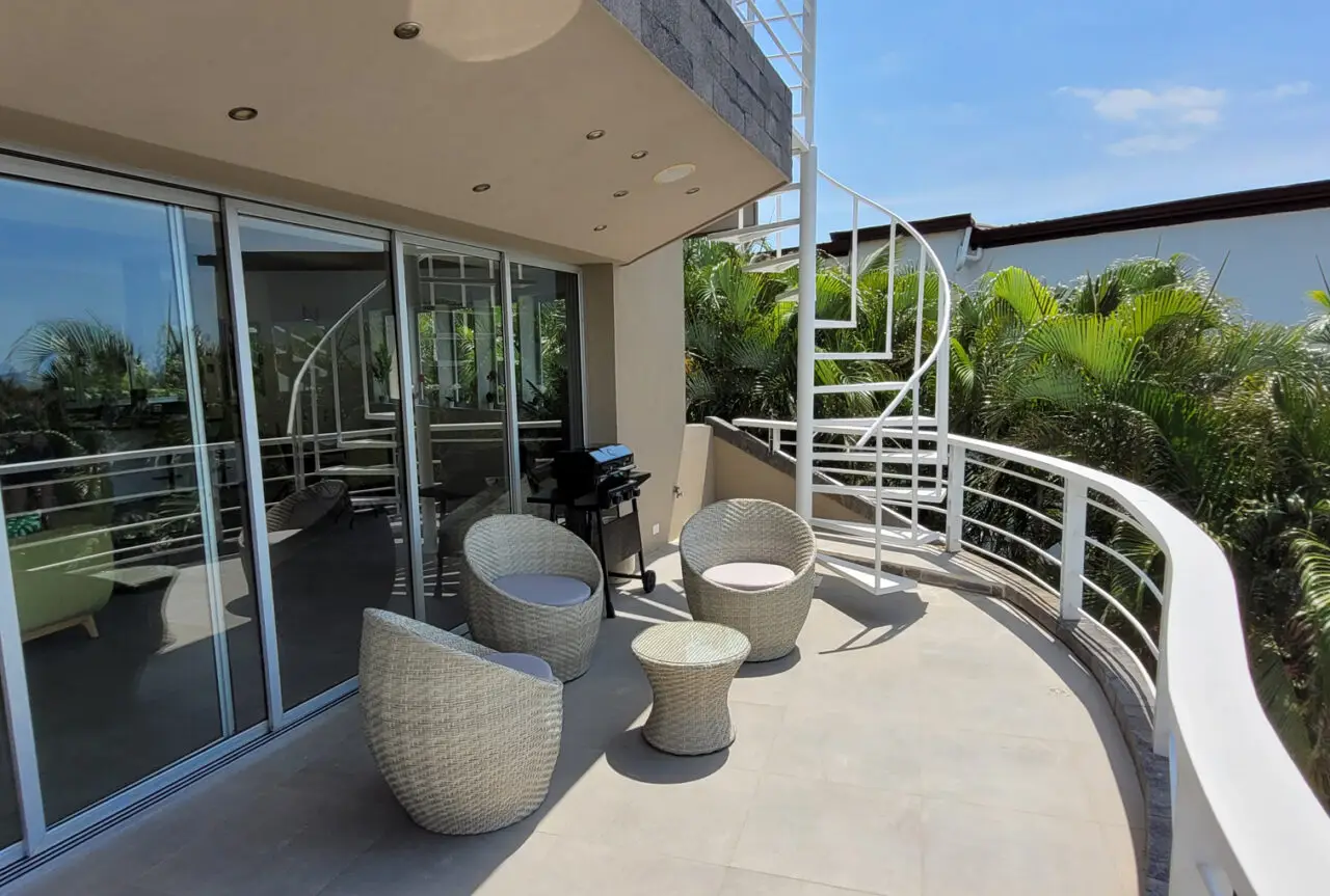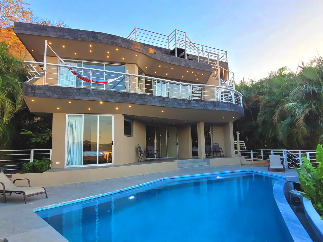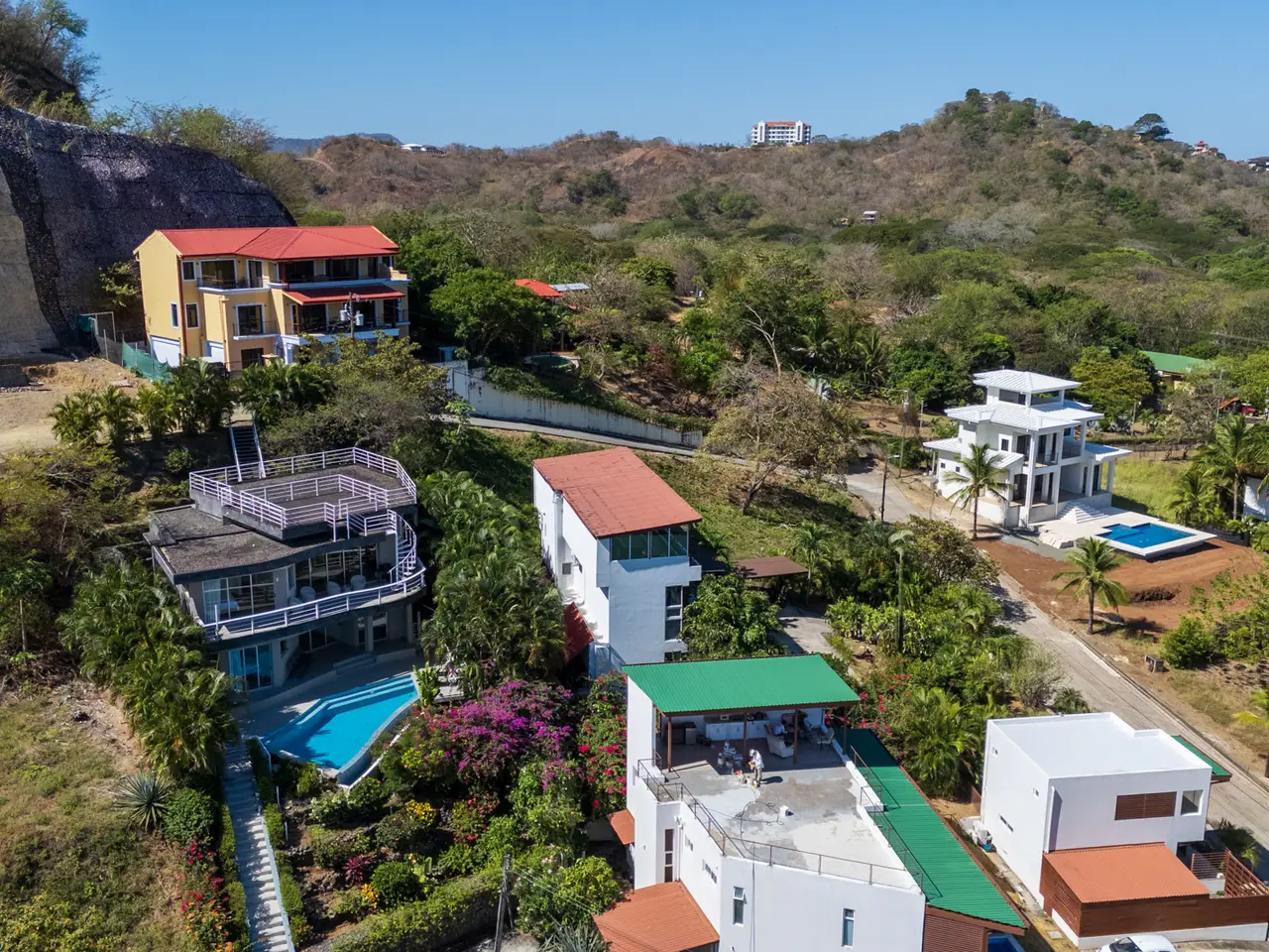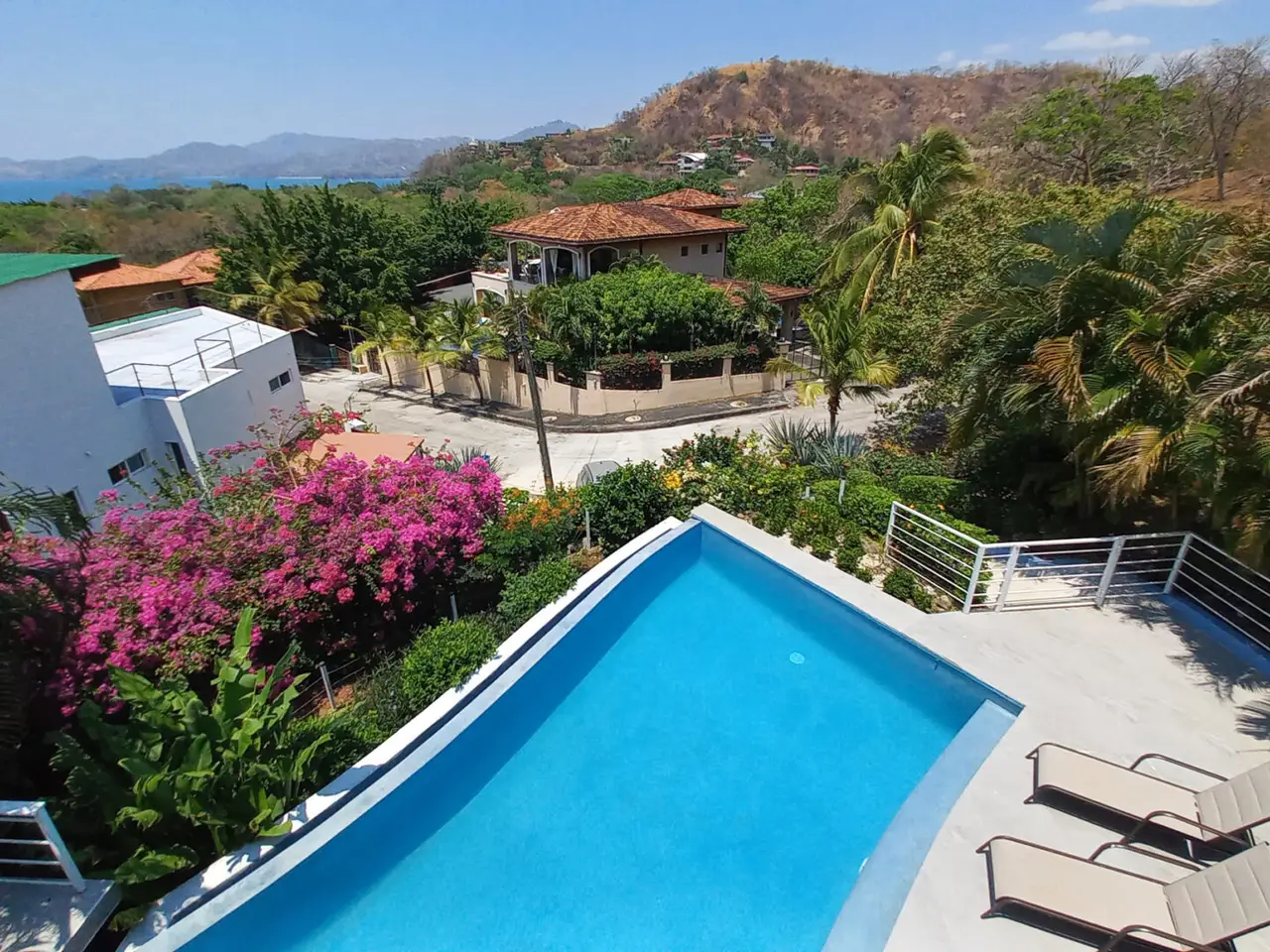 Located in the heart of Playa Flamingo, and walkable to fantastic beaches, the site of the new Flamingo Marina, grocery stores, and an array of restaurants, lives Casa Nalifos. This beautiful Italian masterpiece has a stunning ocean and mountain views, and is perched upon a hill in the popular Altos de Flamingo guard-gated subdivision. You may enter the home from either the upper or lower staired entrance. Both entrances are beautifully landscaped with a variety of flowers and local plants that are fed by a full irrigation system, allowing for beautiful gardens year-around and easy maintenance. When entering you will enjoy the feel of the luxurious imported Italian porcelain tile that is featured throughout the entire home and patios. The gourmet kitchen offers top of the line Smeg cooking appliances that are imported from Italy. The chef in the family will enjoy the best of both worlds, with the gas cooktop and electric wall oven. The kitchen also features a stainless steel refrigerator/freezer and dishwasher. This home has 4446 sq ft of construction, which includes the upper-level family room with a retractable wall of glass doors. This opens up to create an open-air feeling and show off the beautiful ocean views. You will also enjoy ocean views from the upper-level master suite as well. There are two guest rooms on the ground level that are directly off the saltwater pool; each with ensuite bathrooms. Extra features in this home include a rooftop ocean view deck, central vacuum system, interior doors that are imported from Italy, exterior motion lighting, soft-close cabinets and drawers, rain showers, recessed lighting throughout, volcanic stone cladding, Cat 5 wiring throughout, and a security system. Casa Nalifos was designed to enjoy the beautiful views from every room, as well as taking advantage of the natural tropical breezes. It was built to the highest of efficiency standards. Altos de Flamingo has many permanent residents and a few vacation rental homes. If you are looking for a well-built home that has views, is in a gated community, and is walkable to the beach, we assure you this home will not disappoint and is a must-see!