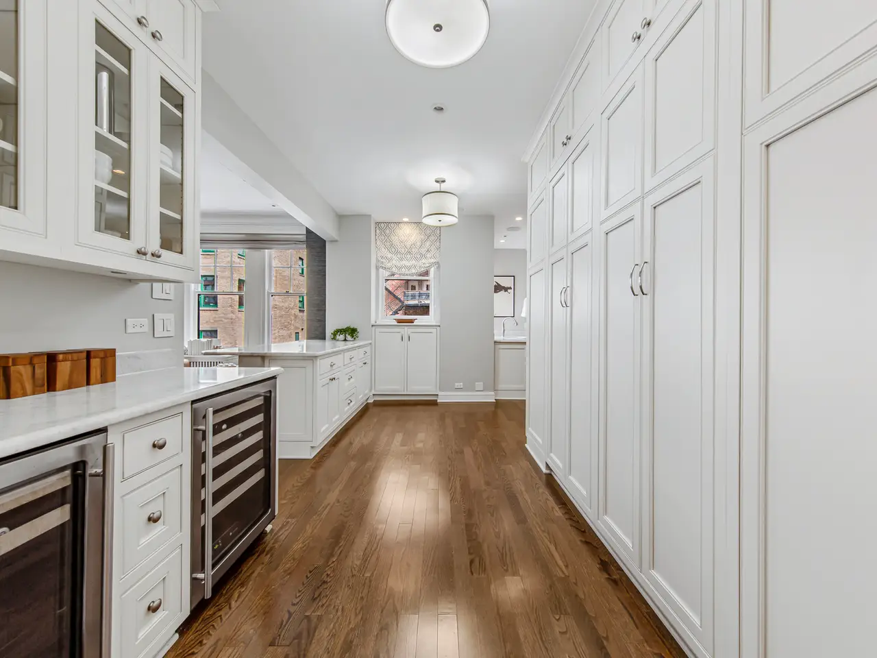 Welcome to this elegant 3,000 sq. ft. residence in a historic pre-war Fugard & Knapp building, ideally situated in the heart of the Gold Coast/Streeterville. Blending classic architecture with timeless modern design, this boutique building offers just 19 exclusive residences, with only two homes per floor. A dramatic 23-foot gallery sets the stage for this refined 3-bedroom, 3.1-bath home. The expansive kitchen anchored by a large center island, offers abundant pantry storage, two beverage coolers, and a a warming oven. Appliances include a 6-burner Electrolux gas range, oven and vent hood, full-size Electrolux side-by-side refrigerator/freezer, Bosch dishwasher, and generous cabinetry and marble counter space. The kitchen flows seamlessly into the entertainer's family room. Custom millwork, oak hardwood floors throughout, and designer lighting add sophistication and warmth to every space.The formal dining room connects to the elegant living room showcasing a wood burning fireplace with marble surround which provides a sophisticated focal point. Natural light abounds in this home. Primary suite has large walk-in closet, put 3 additional storage areas, marble vanity and surround shower. Two large additional bedrooms both have walk-in closets. The building has been thoughtfully updated with new elevators, plumbing, life-safety systems, and a beautifully renovated lobby. A large private storage room plus a shared storage, and impeccably maintained common spaces. Just steps from the Magnificent Mile and Lake Michigan, residents enjoy world-class dining, international boutiques, luxury designer shopping, and easy access to Oak Street Beach and Chicago's Lakefront Trail. Pet-friendly, professionally managed, and attentive door staff offering personalized service ~ this is city living at its most sophisticated.