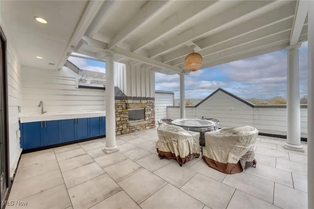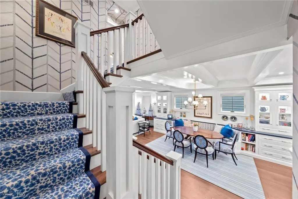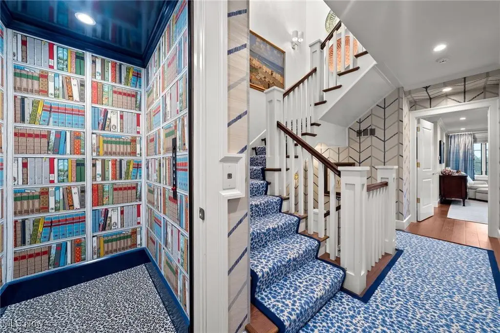 Located in the heart of Chagrin Falls, this extraordinary 4 level residence has been renovated and decorated to utter perfection by the current owner. No expense was spared and no detail was overlooked throughout. A charming and beautifully landscaped courtyard welcomes one into the foyer through a custom front door. One will immediately notice the exquisite decor, highest end finishes, and the meticulous attention to detail. On this entry level there is an elevator with access to all 4 floors, a home gym with rubber floor, and a grand staircase with a custom runner. The main level of this home is an entertainer's dream and features the most extraordinarily designed dream kitchen. Here you will find the highest level of finishes including custom inset cabinets, a huge center-island, Calcutta Gold marble countertops, professional stainless-steel appliances, a wine cooler, ice maker, and spectacular decorative hood. Off of the kitchen is a beautiful bar area which is perfect for entertaining. The main living area includes a fabulous dining room with custom banquette which opens into the main great room. Here you will find a magnificent raised hearth which is flanked by custom built-ins and floor to ceiling windows which overlook the village. The owner's suite in this unit occupies an entire floor and is the definition of "Luxury!" The bedroom is a quiet retreat, the marble bathroom is second to none (steam shower, dual vanities, heated floor, heated towel rack, Porto Romano sconces, and jetted tub), two walk-in dressing rooms, and even a private laundry room. The top level is a retreat for guests with a bedroom area, media room, spectacular bathroom, and access to the outdoor veranda. This beautiful, covered terrace has a stone fireplace and built-in bar area with sink. This one-of-a-kind residence is truly a showplace.