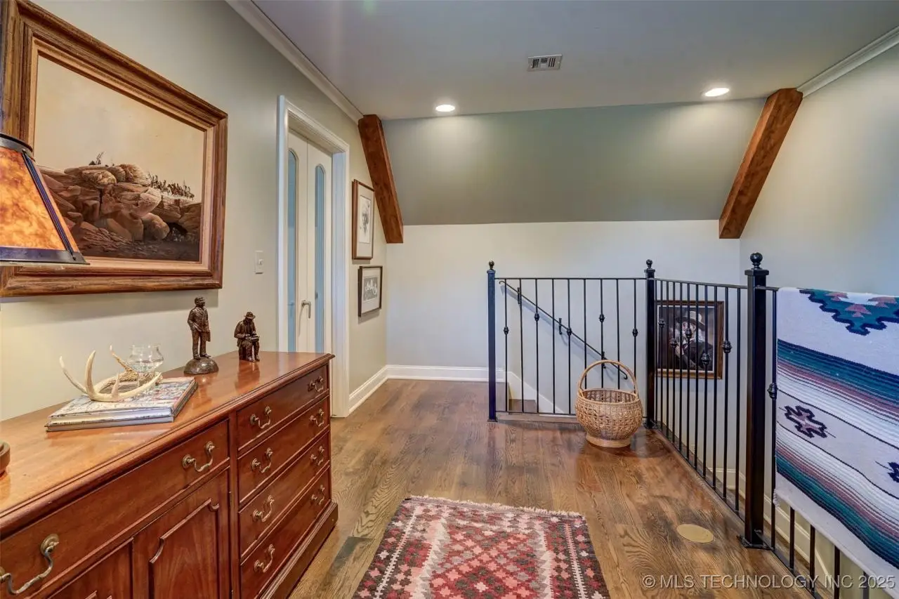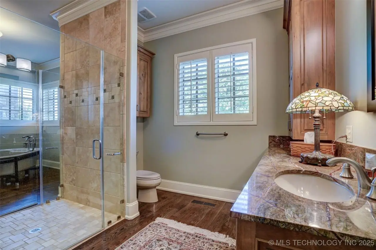 3/4 AC Country in the City! Adjoining lot & acreage w/red-iron barn also available. Custom designed & built with exec touches. Meticulously hand cut stone exterior, fresh paint, high-end comp shingled roof. Grand entryway with curved iron staircase & decorative bronze tiling. Hardwood floors, plantation shutters, solid wood doors, Pella windows, high-end Kohler plumbing. Kitchen w/ "Red Dragon" granite, double ovens & large eating area. Nearby butler's pantry with honed-finish Brazilian Quartzite counters, STORAGE, 2nd dishwasher, fridge/freezer/icemaker hookups. 10' ceilings down, 15' in grand living area. Multi-room sound wired. 2nd living down could be bedroom with large walk-in SAFE ROOM. Master en suite with double dressing/closet rooms. Convenient laundry chute, & dumbwaiter elevator. Large rec room over garage, HUGE walk-in attic storage! Upstairs office overlooks backyard. Attached 4 car garage, porte cochere, 2 covered patios. Separate 2 car workshop with vaulted ceiling for potential car lift, also has HVAC, attic space, heated water faucet and 1/2 bath.