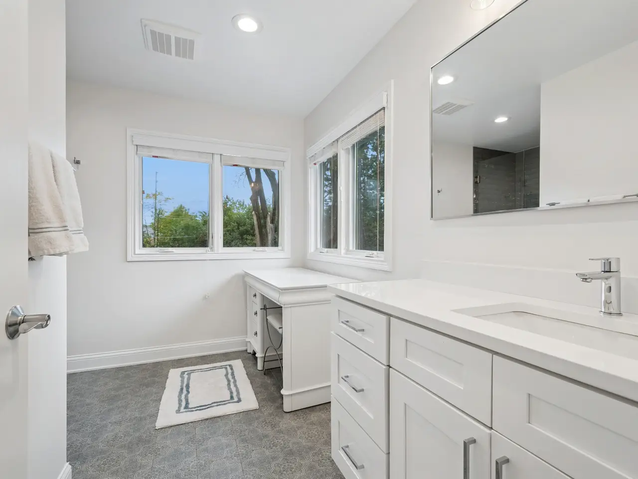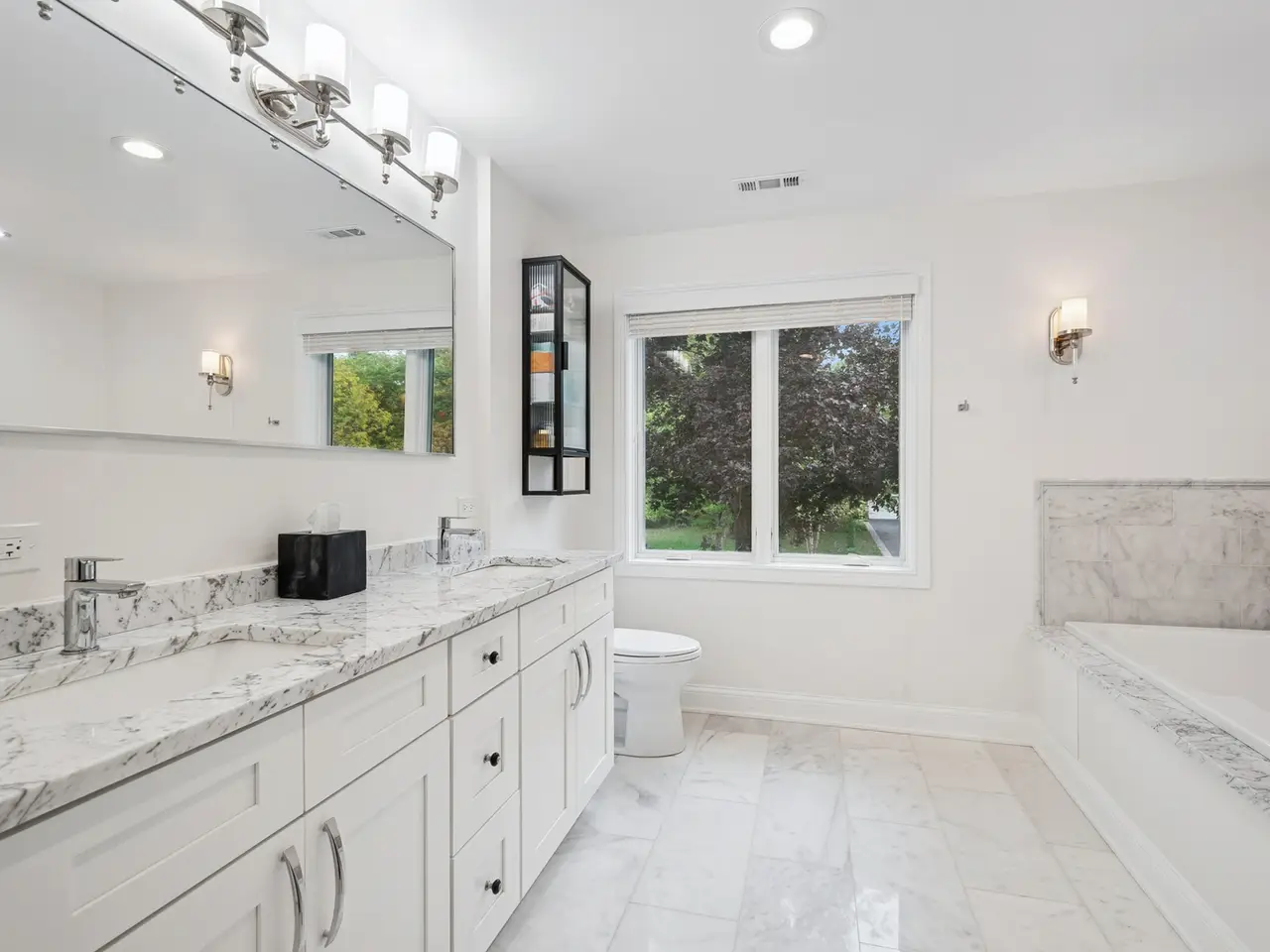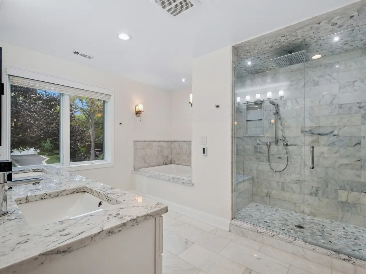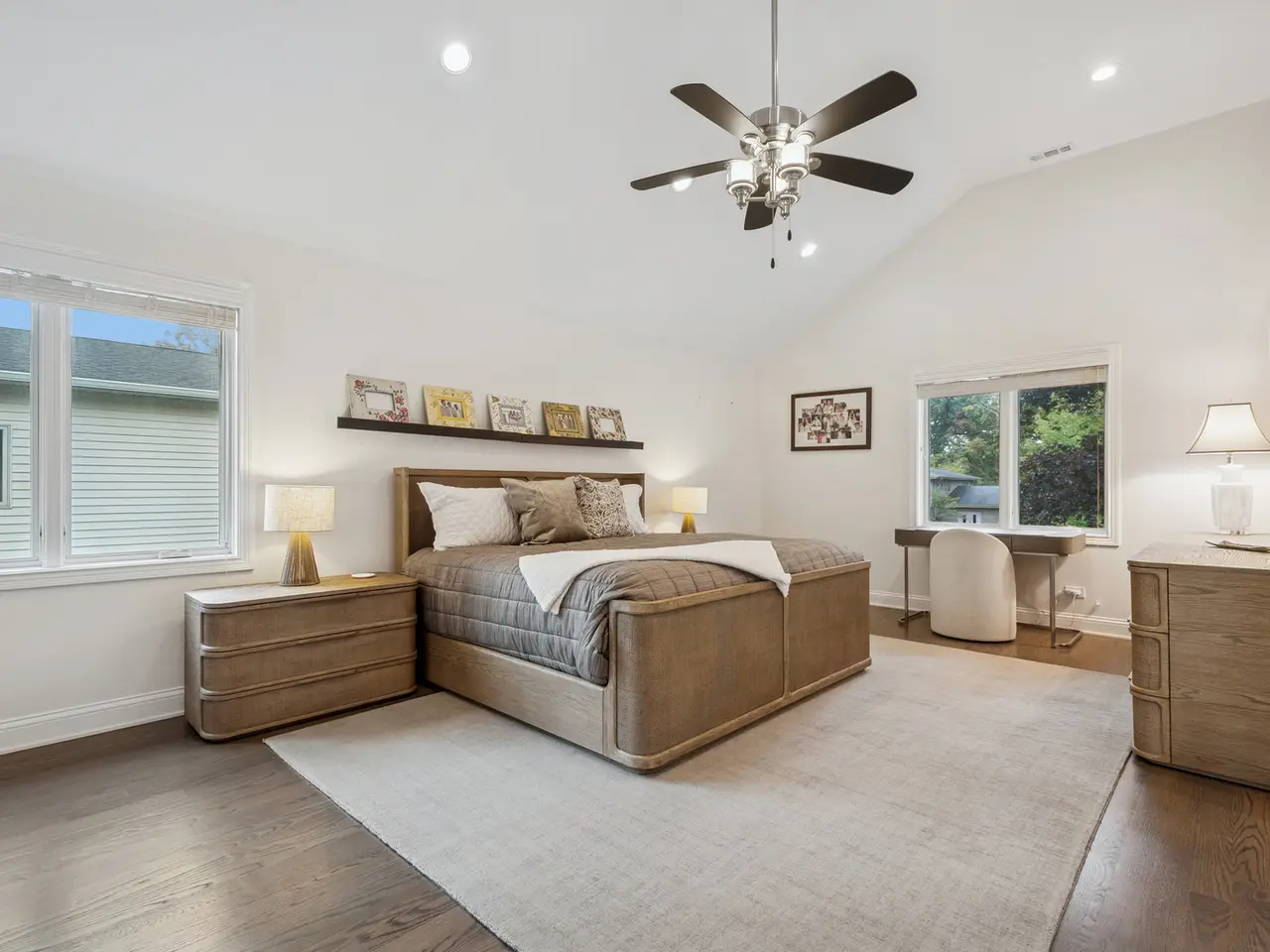 Impeccably renovated and thoughtfully upgraded, this 4,225 sq. ft., 4-bedroom, 5-bathroom home in northern Highland Park perfectly blends modern luxury with timeless design. Taken down to the studs during a complete 2019-2020 renovation, the home offers all-new systems including HVAC, plumbing, roof, and appliances, providing move-in-ready peace of mind. The main level showcases an elegant open layout anchored by a showstopping chef's kitchen with a 15-foot island, Sub-Zero refrigerator/freezer, Wolf six-burner range with dual ovens, Bosch dishwasher, Thermador drawer microwave, beverage refrigerator, and farmhouse sink. Recent enhancements include Waterstone brushed brass fixtures and matching luxury hardware. Red oak hardwood floors in a modern gray finish run throughout, with recessed lighting, Lutron dimmers and custom Hunter Douglas motorized blinds to enhance both comfort and sophistication. The upper level features a luxurious primary suite with vaulted ceilings, a spa-quality bath, and generous closet space, while each additional bedroom includes a private full bath. A third-floor laundry room adds convenience, and the finished lower level offers flexible living space for a recreation room, gym, or fifth bedroom. A Trex deck with built-in lighting and a natural gas fire table creates a seamless indoor-outdoor flow. Additional highlights include Nest thermostats, a SimpliSafe security system, a spacious mudroom with built-ins, a fully fenced backyard, and an attached two-car garage. Ideally situated near parks, restaurants, the train station, and Fort Sheridan's scenic lakefront trails, this home offers the best of Highland Park living.