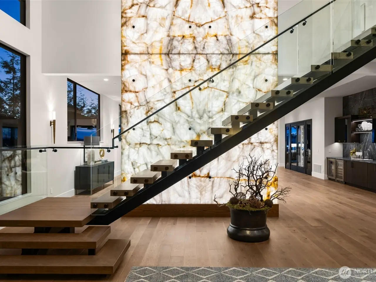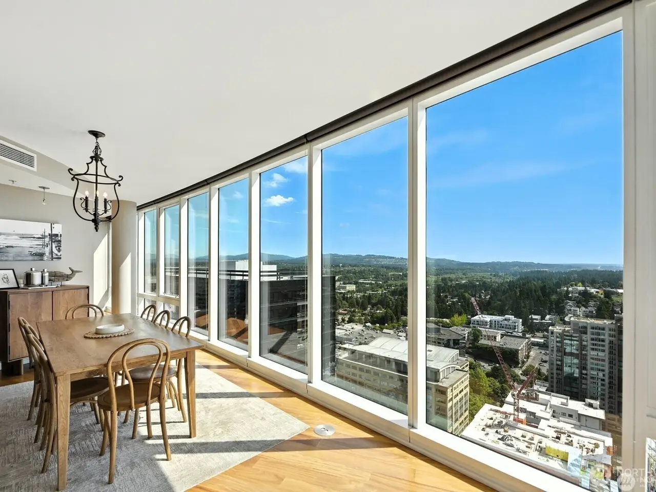 • Walls of glass framing Mt. Rainier, Lake Washington & city lights