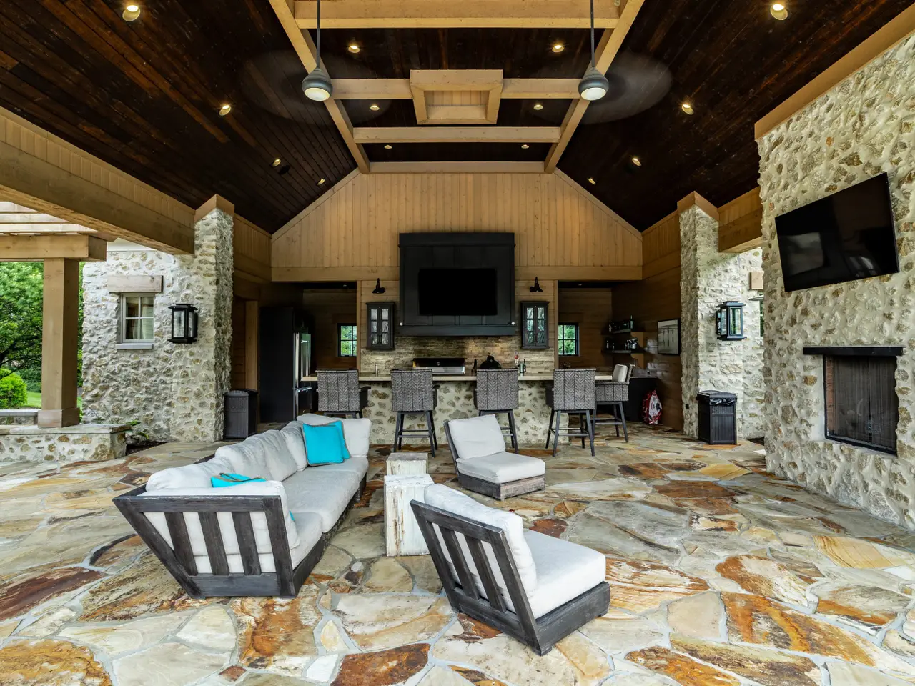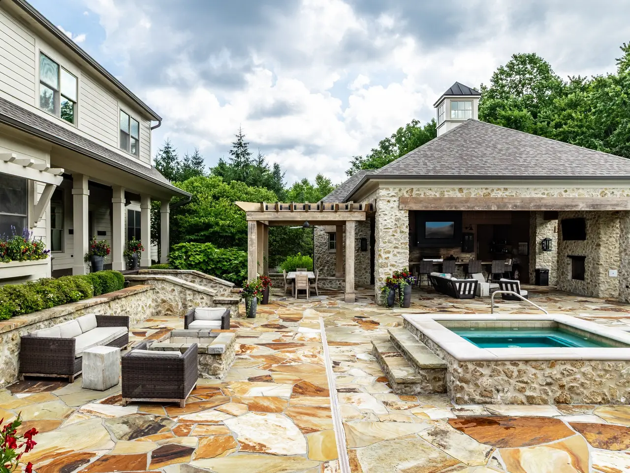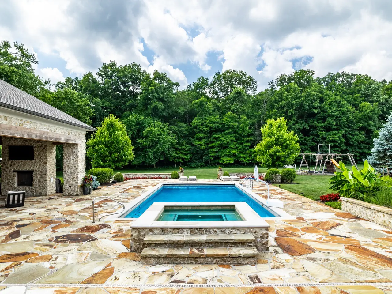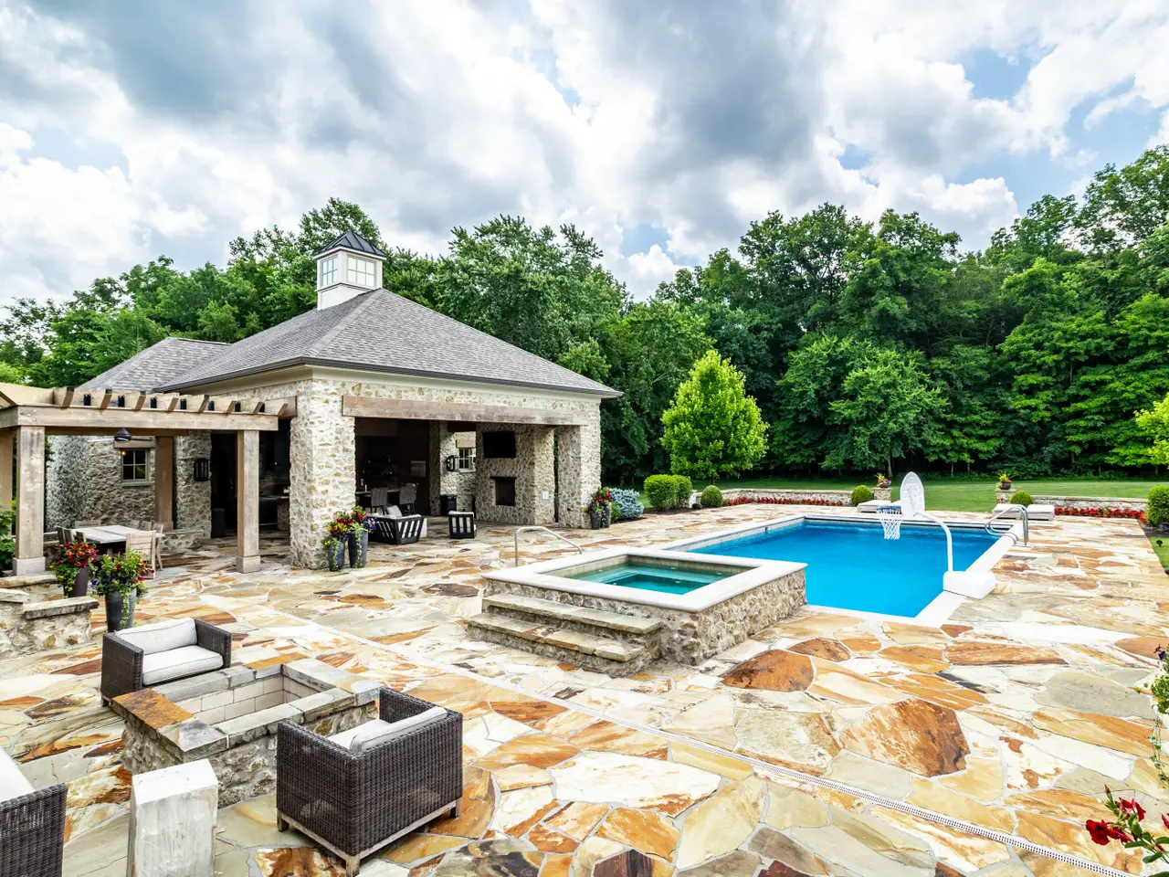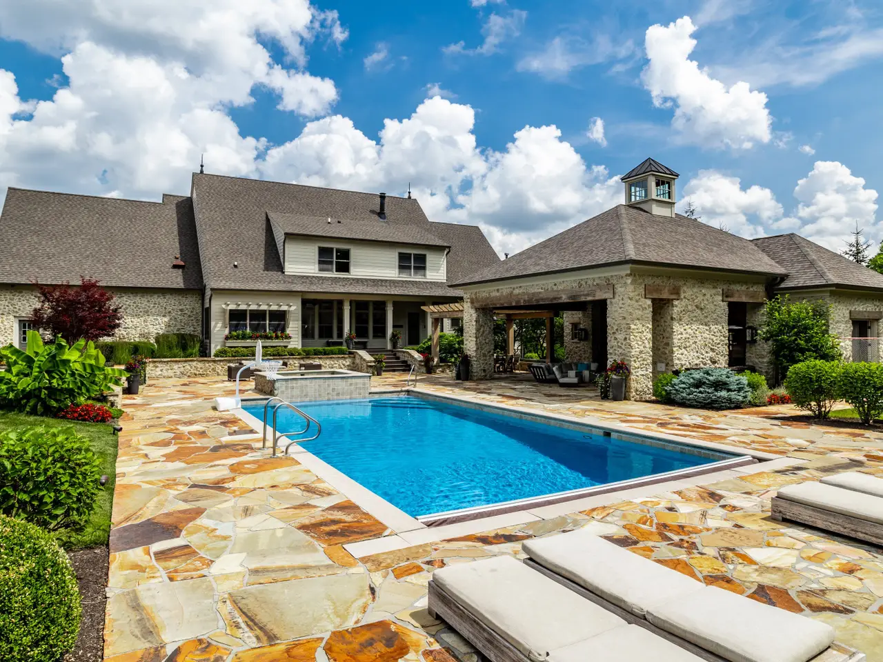 Possession to be February 1st, 2026. This stunning property is a true entertainer's paradise, with a backyard that feels like a private resort. Lounge by the in-ground pool, unwind in the hot tub, or gather around the firepit. Effortlessly host unforgettable gatherings with a fully equipped outdoor kitchen featuring a grill, Green Egg, wine fridge, refrigerator, dedicated bathroom, washer and dryer, and plenty of extra storage! A charming carriage house provides flexibility and privacy for guests or extended family, offering a full bedroom and bath, office nook, and cozy living space. Step inside and enjoy the inviting layout, where the great room welcomes you with a stone fireplace, built-ins, and picturesque views of the backyard. It opens to a stylish kitchen complete with a built-in bar, and flows into a sunlit breakfast room overlooking the outdoor oasis. Just across from the great room, you'll find a formal dining room, ideal for special gatherings. The main-floor primary suite is a peaceful retreat with a fireplace, spa-like bathroom with a soaking tub, walk-in shower, and a layout that ensures complete privacy. Upstairs, you'll find three additional bedrooms, a spacious loft, and a rec room, perfect for work, play, or relaxation. The finished basement expands your living options with another bedroom, large rec room, family room, game room and wet bar, ideal for movie nights or game day gatherings. With endless spaces to spread out, entertain, or simply enjoy quiet moments, this home truly has it all.