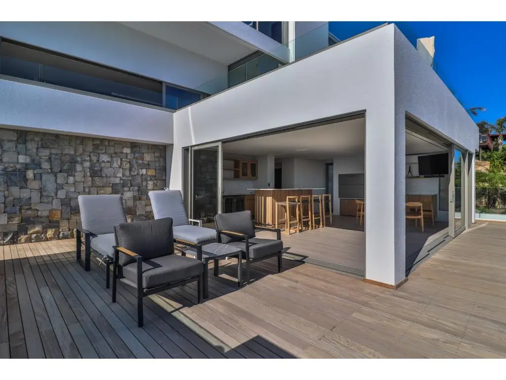 Brand New Iconic House for Sale in Mossel Bay. Welcome to an architectural masterpiece perfectly situated to capture breathtaking views of the Indian Ocean and the majestic Outeniqua Mountains. This stunning north-facing home embraces warmth year-round, combining modern aesthetics with meticulous attention to detail in every corner. The spacious private entertainment level features a stylish bar, ideal for hosting friends and family, and a built-in braai that invites you to enjoy outdoor cooking year-round. This level flows effortlessly to the pool patio, where you can relax in the heated pool, basking in the sun and sipping a cold drink while soaking in the stunning vistas. The expansive patio space is perfect for alfresco dining or lounging, making it the ultimate oasis for gatherings and leisure. Take the elevator to the next level, where the heart of the home unfolds in an open-plan design. The contemporary kitchen, equipped with high-end appliances and sleek cabinetry, is perfect for culinary enthusiasts. An oversized island offers ample space for meal prep and casual dining. The living and dining areas are bathed in natural light, thanks to large sliding doors that beckon the fresh ocean breeze indoors. Imagine enjoying family dinners while gazing out at the picturesque coastline, a daily reminder of natureGÇÖs beauty. Ascend to the top level, where comfort meets luxury in four spacious bedrooms, each with its own ensuite bathroom. The master suite is a true sanctuary, thoughtfully positioned to capture the best views, complete with a private balcony where you can sip your morning coffee while watching the sunrise over the ocean. Each guest bedroom is designed with comfort in mind, providing a welcoming retreat for family and friends. Beyond the exquisite design and luxurious interiors, this exceptional property boasts a prime location. Just a short stroll away, youGÇÖll find the renowned Mossel Bay Point, where a variety of exceptional restaurants and charming caf+¬s await to tantalize your taste buds. Enjoy leisurely walks along the beach, explore local boutiques, or indulge in the vibrant atmosphere of this beloved coastal town. Experience the perfect blend of luxury, comfort, and breathtaking scenery in your new home.