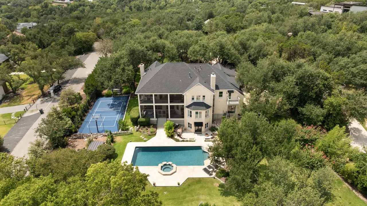 Timeless Hill Country Elegance Meets Refined Modern Comfort Tucked away in one of Westlake’s most prestigious and private enclaves, 402 Graciosa Cove is a rare offering that combines architectural grace with everyday livability. Nestled in a quiet cul-de-sac, this exceptional estate sits on a level, fully usable 1 acre lot, framed by mature oak trees and lush landscaping that extends from edge to edge. The property offers an unparalleled sense of privacy, enhanced by a gated driveway and its location on a no drive-thru street, creating a serene retreat just minutes from the energy of downtown Austin. Elegantly remodeled in 2021, the 6,826 square foot residence evokes timeless sophistication while embracing soft-modern, transitional interiors. Graceful living and dining areas flow effortlessly into informal gathering spaces, creating a floorplan that is both functional and flexible for multigenerational living or entertaining on a grand scale. With five bedrooms, six bathrooms, five living areas, a dedicated office, and a versatile flex space, every inch of the home has been designed with comfort and elegance in mind. A finished walk-out basement adds further dimension to the living experience, while a 700+ bottle conditioned wine cellar invites moments of indulgence. Screened porches on both the upper and lower levels extend the living space outdoors, with the upper-level veranda capturing sweeping views of downtown Austin—a rare and spectacular sightline from a property offering this level of privacy. The grounds are a dream for recreation and relaxation, featuring a sparkling pool and spa with water features, a lighted sport court configured for both pickleball and basketball, and expansive green space for play or potential additions. The home is finished with a three-car garage complete with coated floors and built-in storage. Despite the tranquility, the location is remarkably convenient—within walking distance to top-rated Eanes ISD schools, and just moments from Austin’s best shopping, dining, and cultural destinations. With a low tax rate and favorable assessed value, 402 Graciosa Cove is the ultimate expression of luxury living in a setting that feels like your own private Hill Country resort, all while being remarkably close to the pulse of the city.