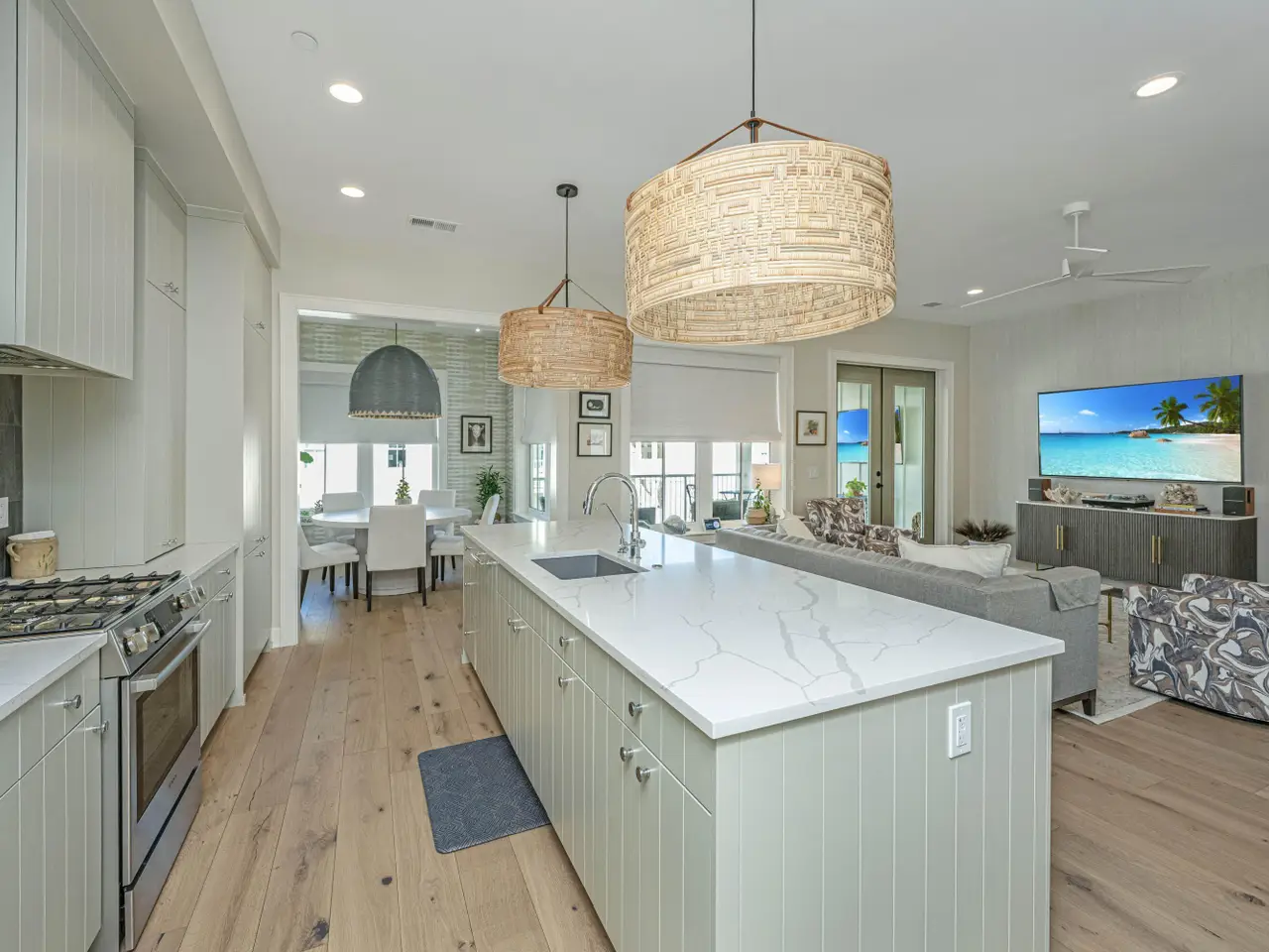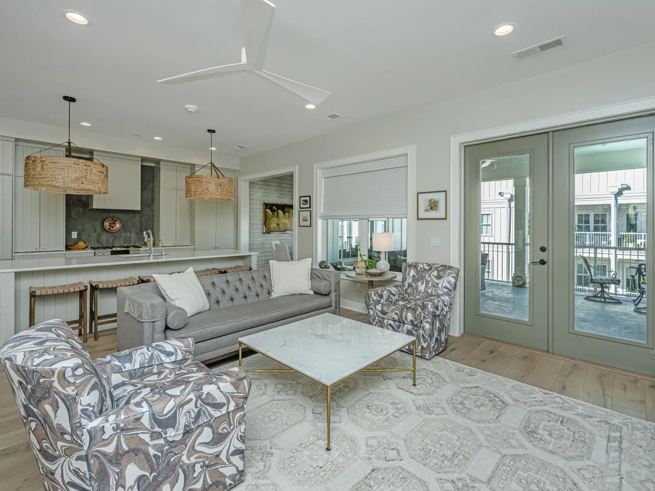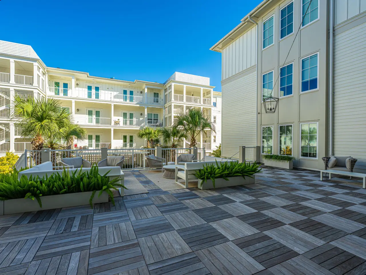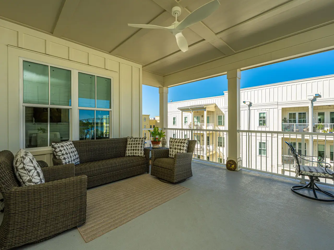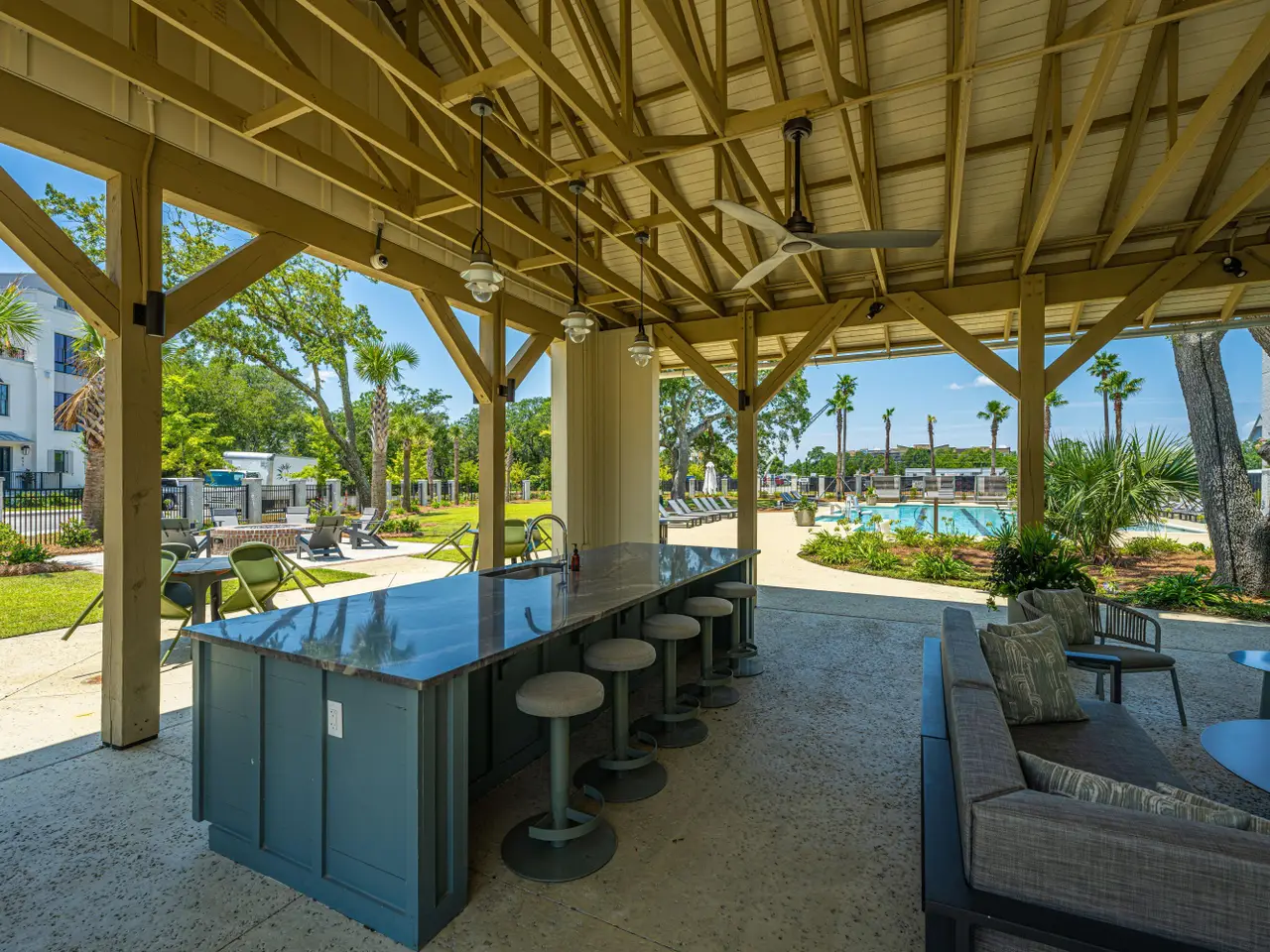 Luxury living at The Waterfront on Daniel Island! This 2024 top floor 2 bedroom 2 bathroom condominium is perfection! Enjoy fantastic views of the Wando River while basking in comfortable breezes from the large terrace. One of only six units throughout the community with no adjoining walls, experience unmatched quiet and privacy with an abundance of natural light from windows on all sides. Upgrades galore! Wide plank hardwood flooring throughout, high end lighting fixtures and ceiling fans, custom closets and kitchen pantry designed by Inspired Closets, built-in kitchen appliances offering a seamless cabinetry esthetic, professionally installed high end wallpaper, additional ceiling lighting in dining room, custom window treatments in every room, large 2 x 4 shower tile and specialty mirrors in both bathrooms, upgraded Farrow and Ball wall paint with all walls and trim receiving 2 additional coats of paint after purchase. Beautiful kitchen tile backsplash and custom countertop in pantry with added electrical outlet. Impeccably maintained unit with garage storage and 2 parking spaces conveniently located next to the elevator. Beautiful courtyard with multiple seating areas and state of the art grille. Well equipped fitness center and tranquil pool with gathering pavilion.