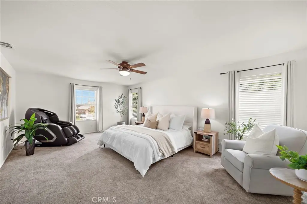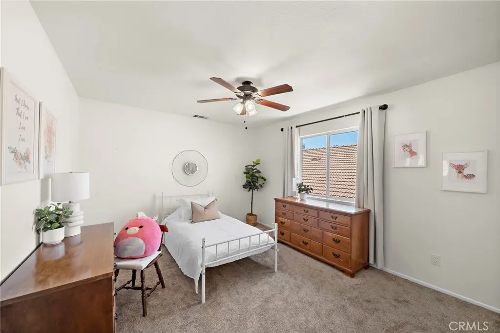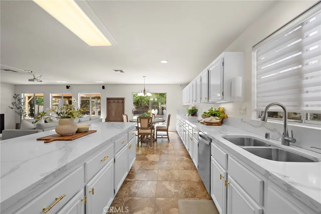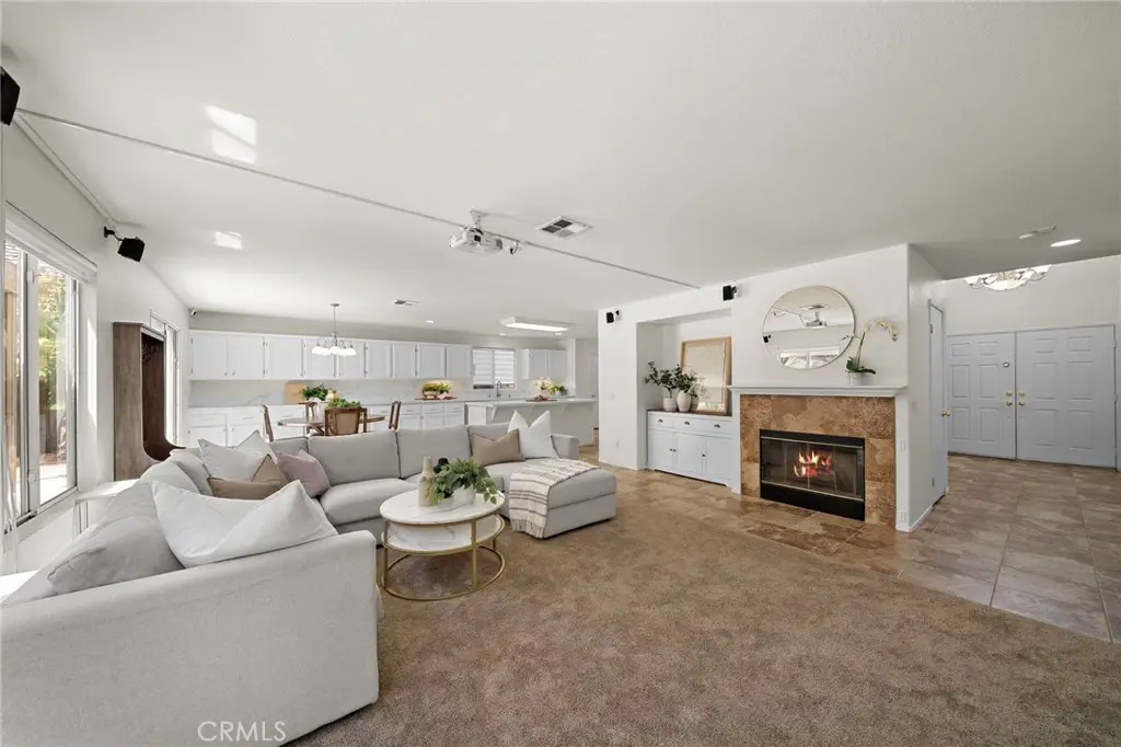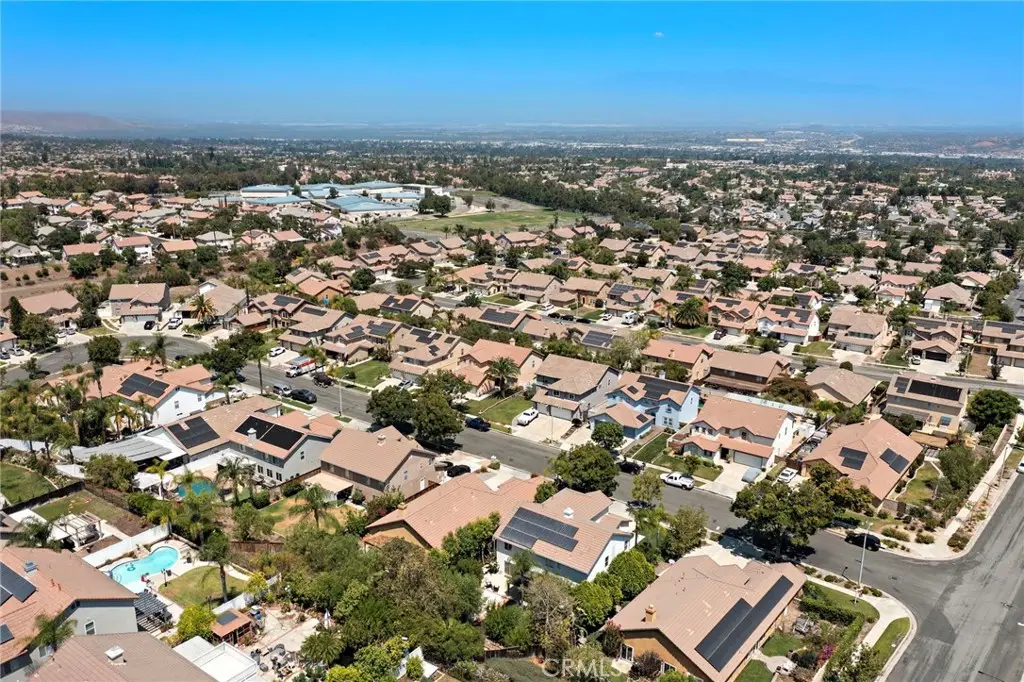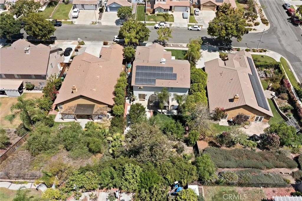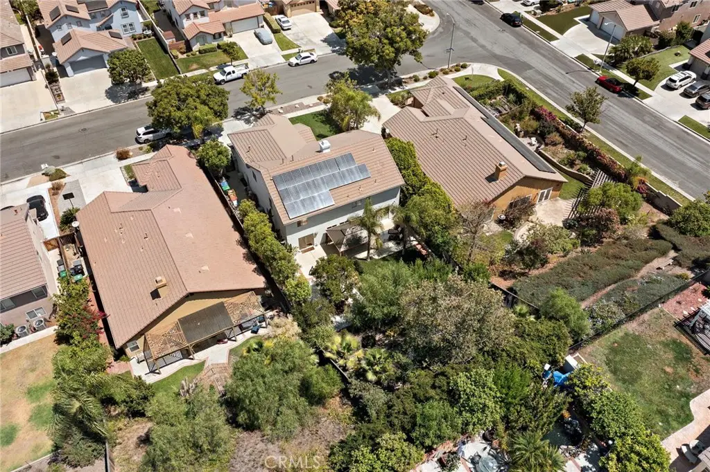 Stunning six bedroom, three bath home with NO HOA, LOW TAXES, and fully paid 8.4 kW SOLAR! Located in a highly desirable neighborhood in the foothills of South Corona, this spacious home offers an ideal floorplan with a downstairs bedroom and full bath--perfect for guests or multi-generational living. Enter through double doors into a light-filled home featuring formal living and dining rooms, a generous sized family room that opens with gas fireplace, which opens into an updated kitchen with brand-new quartz countertops, large island, stainless steel appliances, and breakfast nook with slider to the backyard. Upstairs you'll find five more spacious bedrooms, including a luxurious primary suite with double-door entry, dual walk-in closets, soaking tub, separate shower, dual vanities, and a sit-down vanity area. A large loft offers flexible space for a home office, playroom, or second living area. The private backyard is pool-sized and perfect for entertaining family and friends alike for a barbecue, play dates, or evening drinks with a large patio, mature fruit trees (lemon & pomegranate), raised garden beds, and terraced planting areas. Energy-efficient upgrades include solar (installed 2018), tankless water heater, newer dual zoned HVAC (Dec 2022), whole-house fan, NEST thermostat with sensors, smart home window shades, and smart irrigation for both grass and drought-tolerant landscaping. The three-car garage offers ample storage, with plenty of driveway and street parking. Walk to Santiago High School and local parks, with easy access to the 91/15 freeways, express lanes, shopping, dining, and trails. This one truly has it all--space, upgrades, and location!