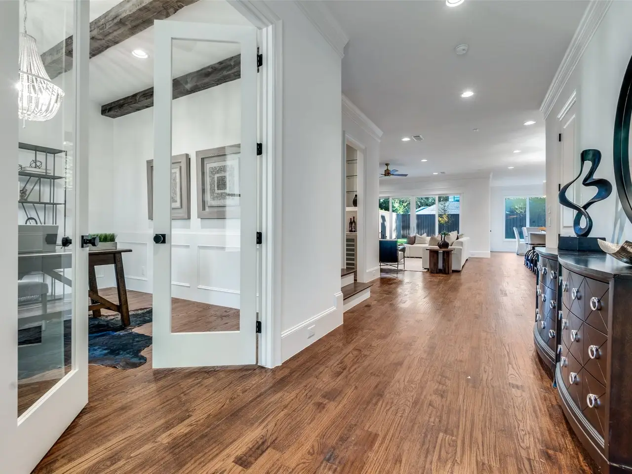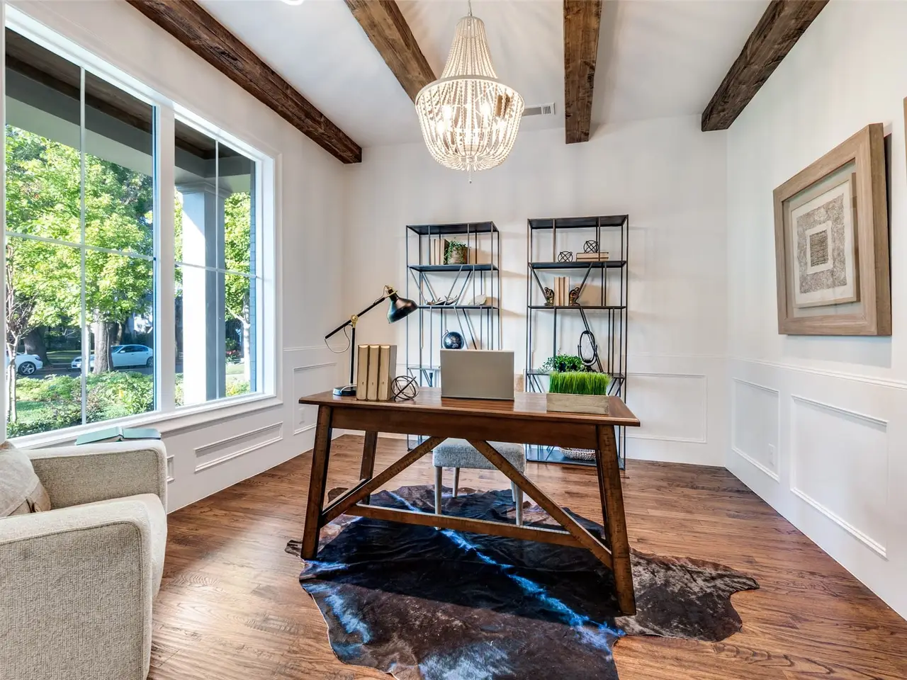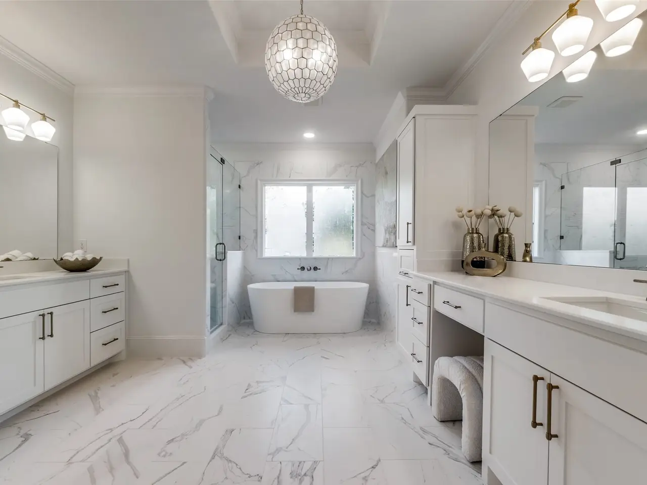 • Beaded chandelier and elegant stone finishes