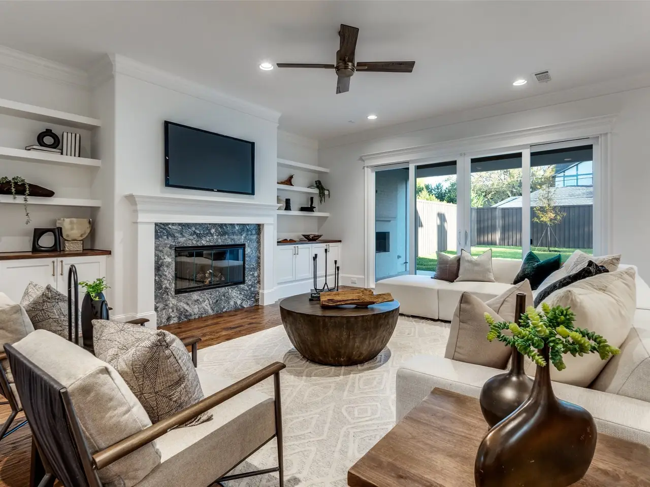 Welcome to perfection in Lakewood! Situated on one of the best blocks in the area, this stunning new construction boasts beautiful curb appeal and a thoughtfully designed floor plan with warm, inviting spaces throughout.A private study sits at the front of the home, leading to a spacious living room with custom built-ins and a fireplace. The wet bar flanks the living room opposite the kitchen, creating an effortless flow for entertaining. The expansive covered patio also features its own fireplace and opens to a large backyard, perfect for building your dream pool, garden, or outdoor oasis. The open-concept kitchen features an oversized island, natural stone countertops, built-in fridge, double ovens, and beverage station. Entertain like a pro with the second catering kitchen, complete with its own stove and oven, providing extra prep and cooking space for large gatherings.Downstairs also includes a private guest suite and a convenient mudroom just off the garage.Upstairs, the second floor features a generous game room, media room, and a luxurious primary suite with a beautifully designed bathroom, dual walk-in closets, and ample storage. Three additional bedrooms offer walk-in closets, and two share a bathroom, while the third has a private bath. Beautiful hardwood floors run throughout, with plush carpet in the media room for extra comfort.Nestled on an elevated lot just half a block from Lakewood Country Club and a short stroll to Lindsley Park and the Santa Fe Trail, this home truly offers the complete Lakewood lifestyle. From its natural materialslike the beaded chandelier, elegant stone finishes, and rich hardwood floorsto the impeccable layout, this home is a perfect blend of modern luxury and timeless style.