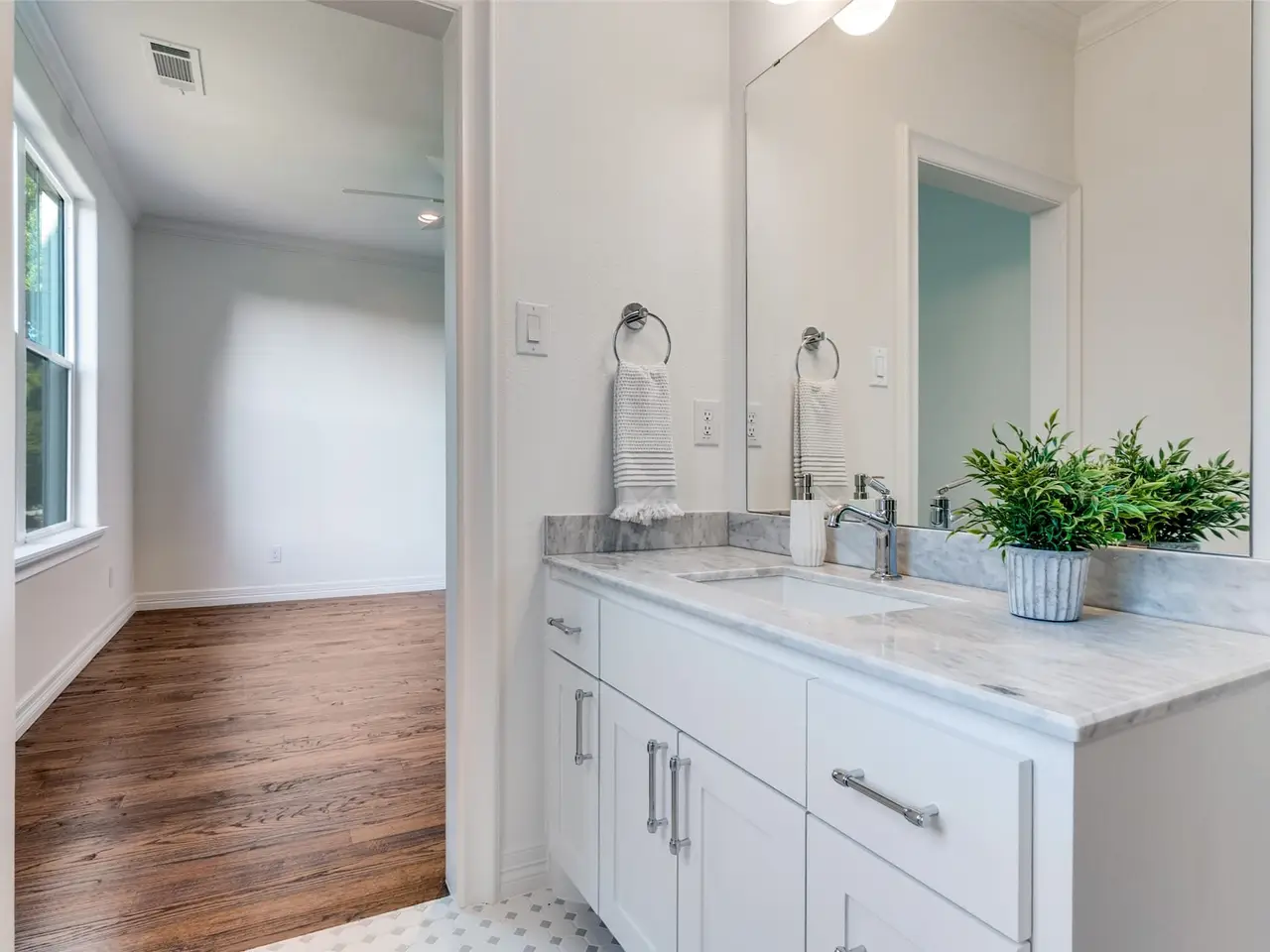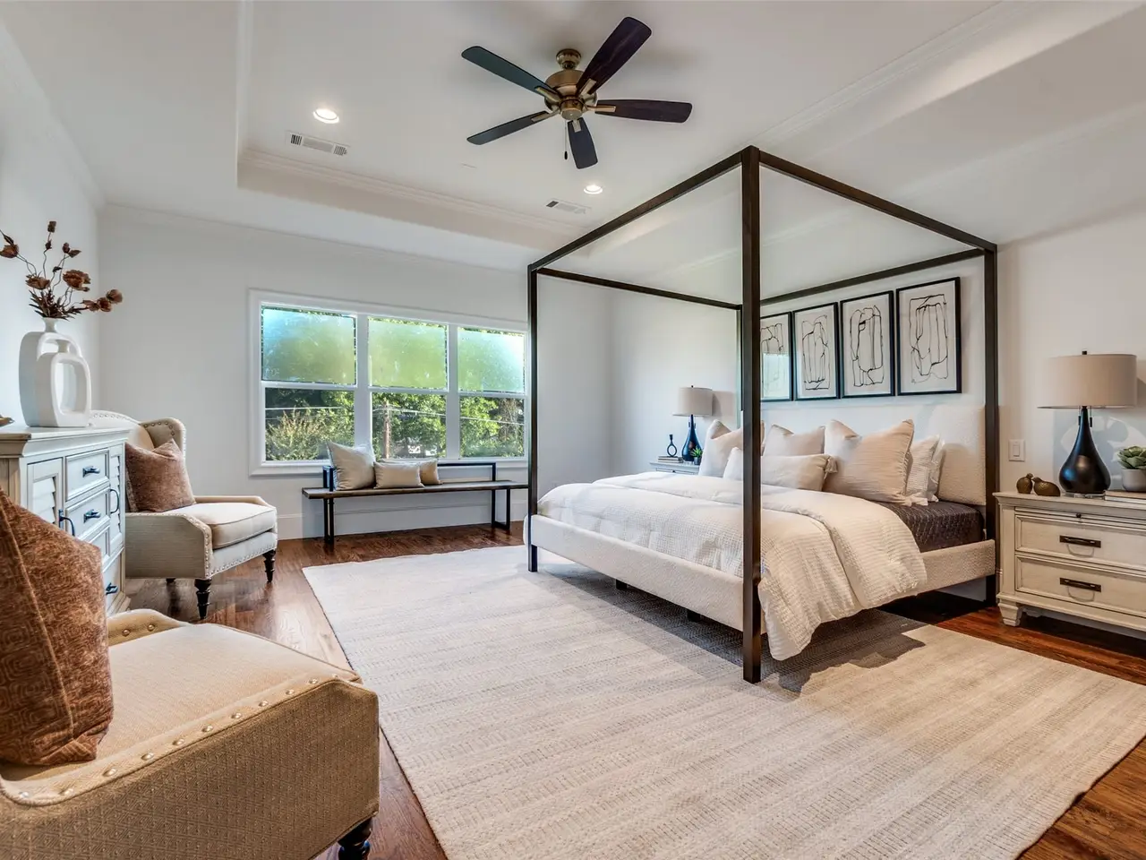 • Luxurious primary suite with dual walk-in closets