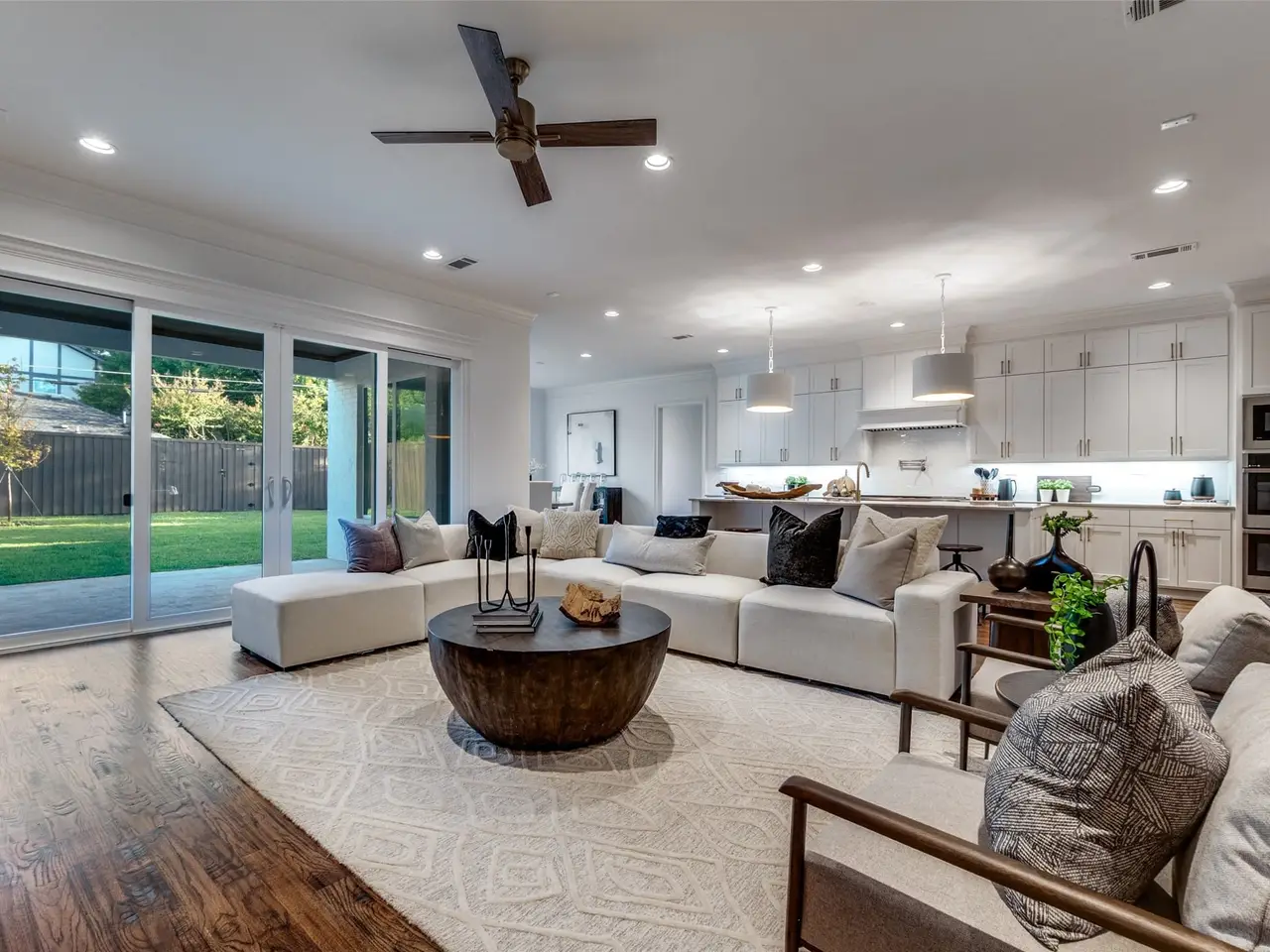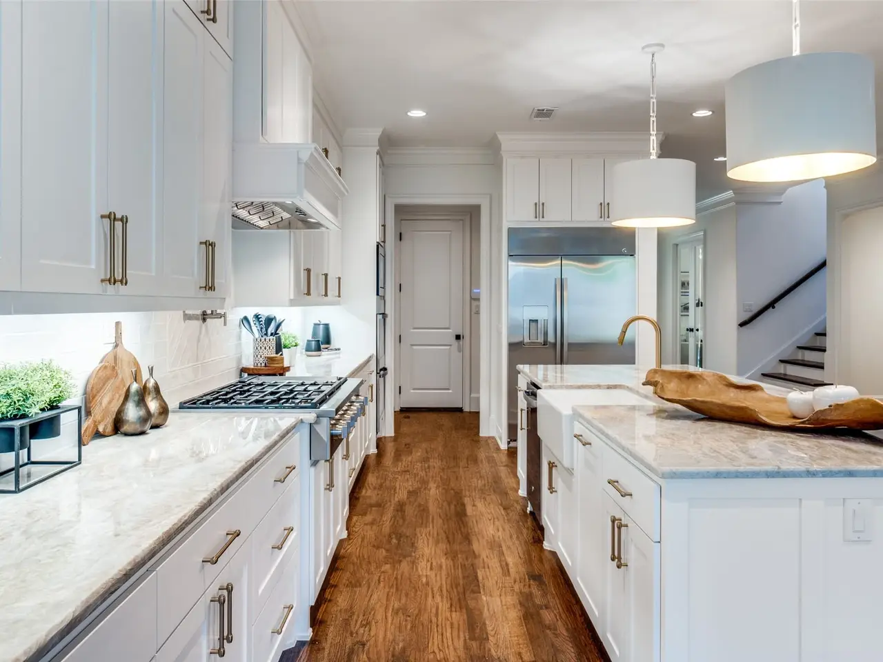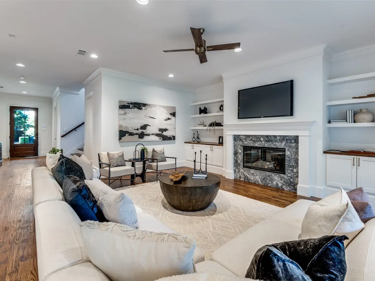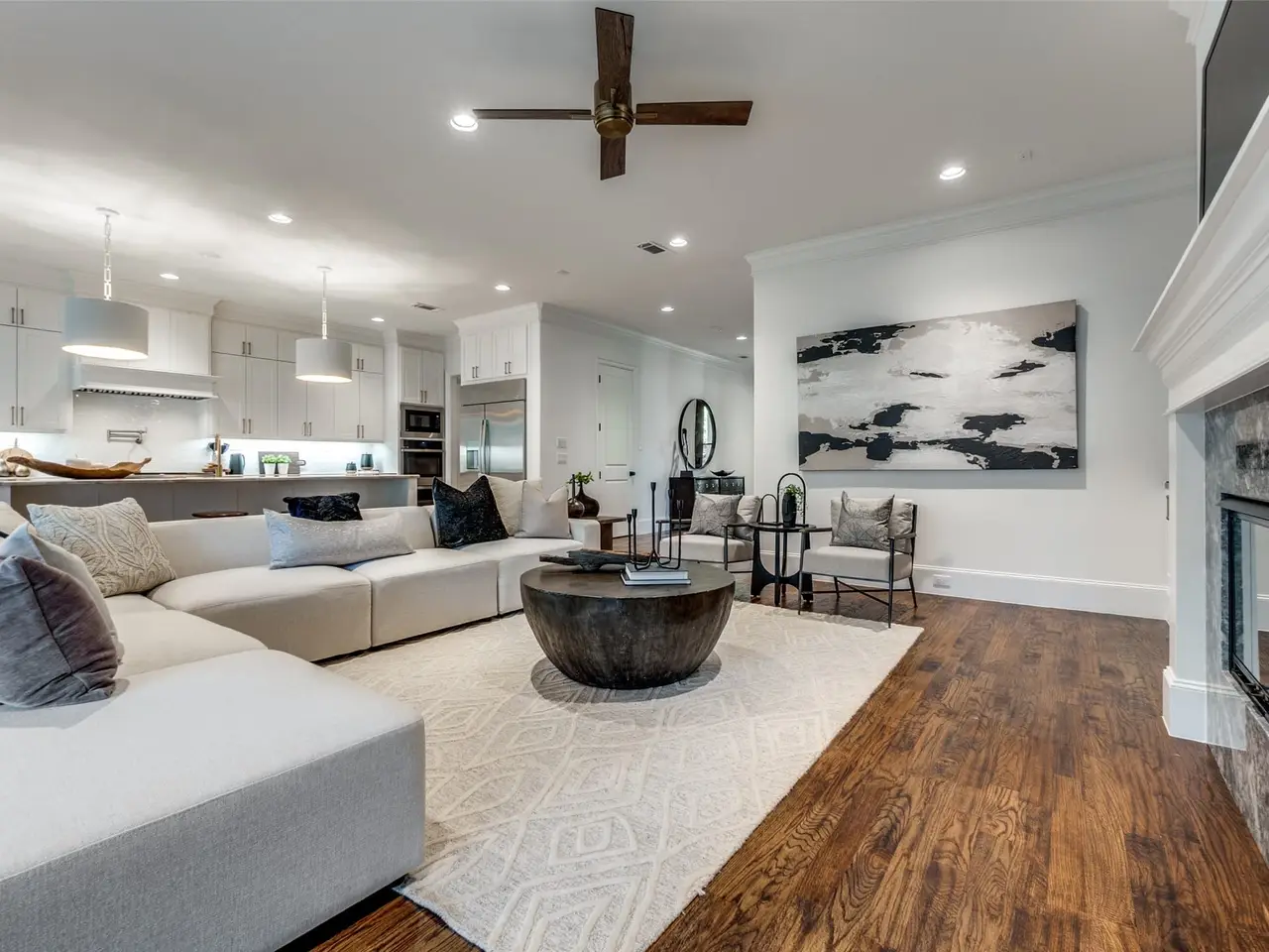 • Open-concept kitchen with natural stone countertops