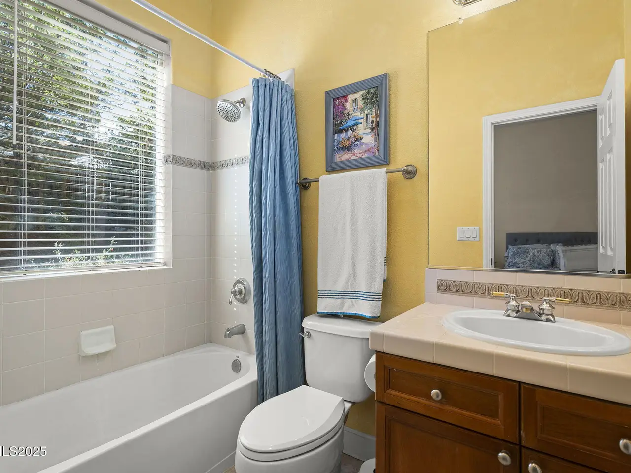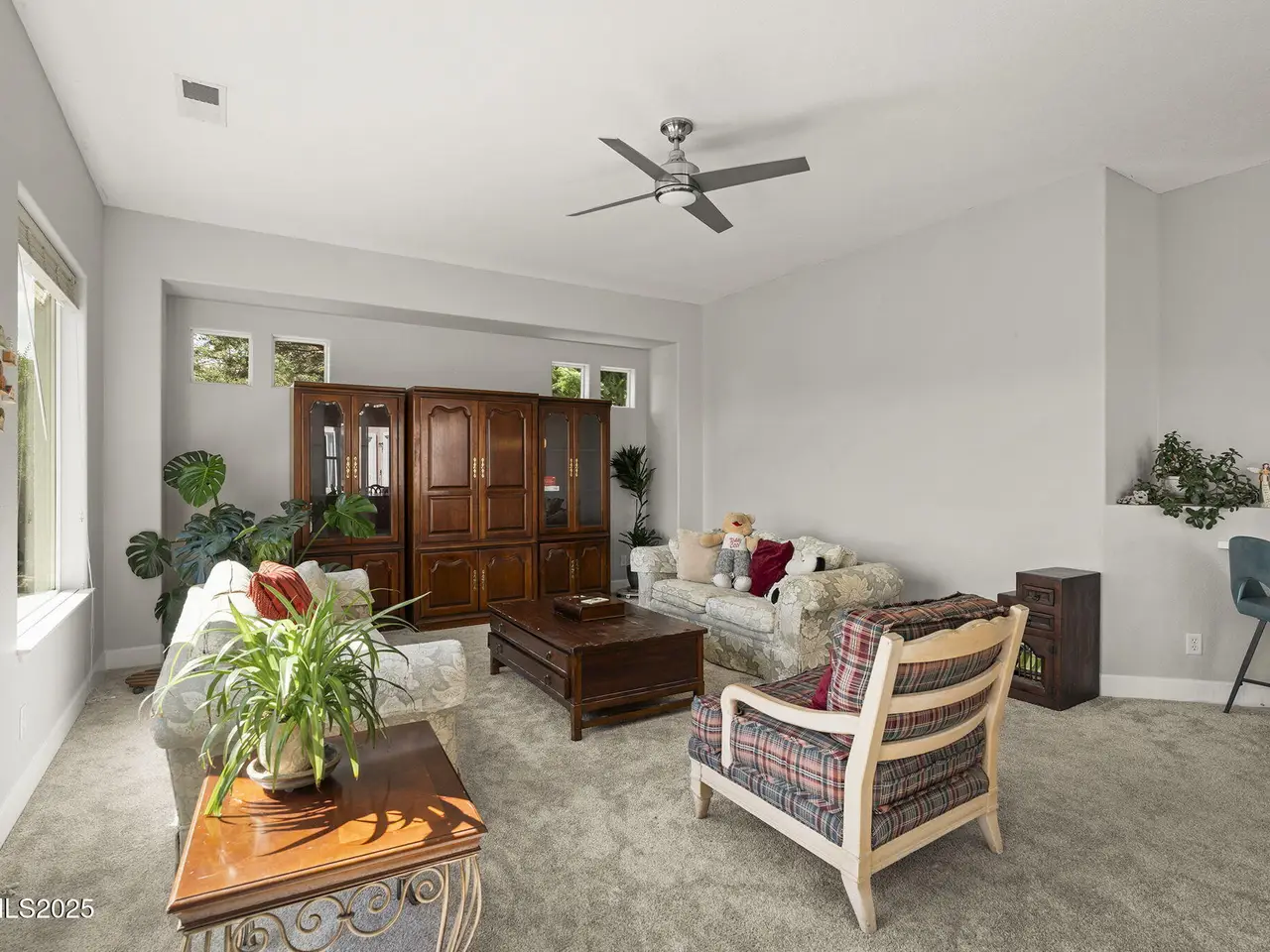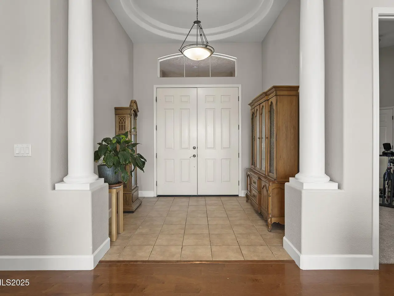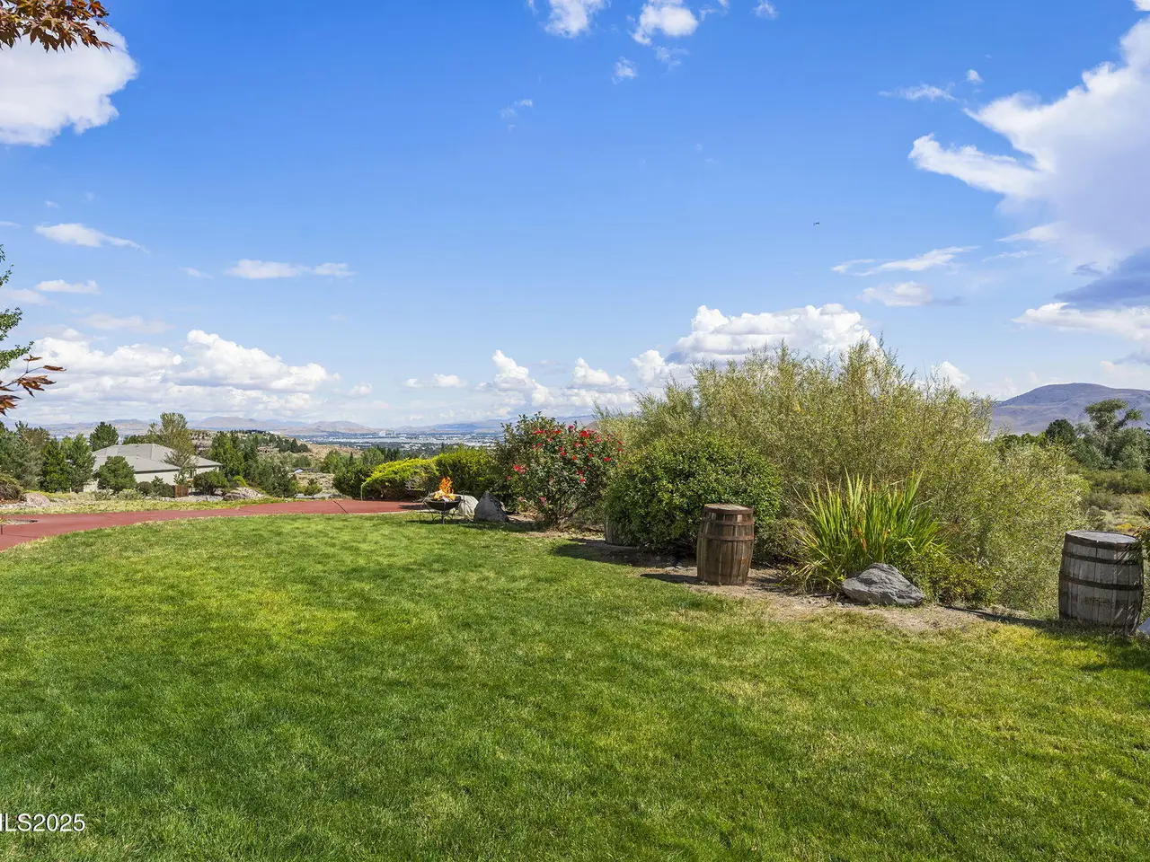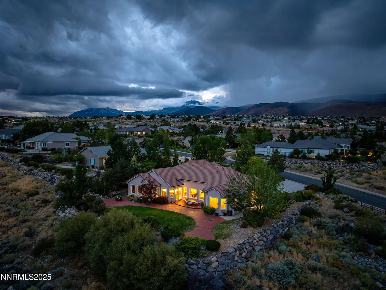 Experience elevated living in this elegant single-story home perched in the desirable Southwest Reno foothills in the prestigious community of Southwest Vistas. Perfectly situated on a spacious lot, this property offers unobstructed panoramic views of the surrounding mountains, valleys, and sweeping Nevada skies—creating a serene backdrop for everyday life. Close to top rated schools, major shopping and quick access to Mt. Rose. From the moment you arrive, the circular driveway and stately covered entry welcome you inside to soaring ceilings, architectural columns, and a bright, open floor plan designed for both comfort and style. The formal living area features expansive windows framing breathtaking vistas, a cozy gas fireplace, and an effortless flow into the dining space—ideal for hosting gatherings or enjoying quiet evenings in. The open kitchen is both functional and inviting, with a center island breakfast bar, abundant cabinetry, double ovens, and a walk-in pantry. It seamlessly connects to casual dining and family spaces, making it the heart of the home. Retreat to the luxurious primary suite, where picture windows capture the views and the spa-like bath features a soaking tub framed by columns, dual vanities, and a generous walk-in closet. Additional bedrooms are spacious and private, perfect for family, guests, or a home office. Step outside to your own slice of Nevada beauty. Expansive patios and walking paths meander through mature landscaping and natural rock features, offering multiple spaces to relax, entertain, or simply take in the fresh mountain air. Whether you're sipping morning coffee while watching the sunrise or hosting sunset dinners, the views will never disappoint. Located in a tranquil, established neighborhood with easy access to hiking trails, golf, shopping, dining, and top-rated schools, this home blends privacy, comfort, and convenience. With its timeless design, generous living spaces, and unmatched scenery, 5350 N Elk River Road is more than just a home—it's a lifestyle.