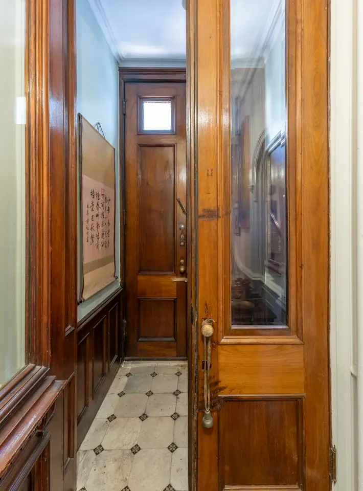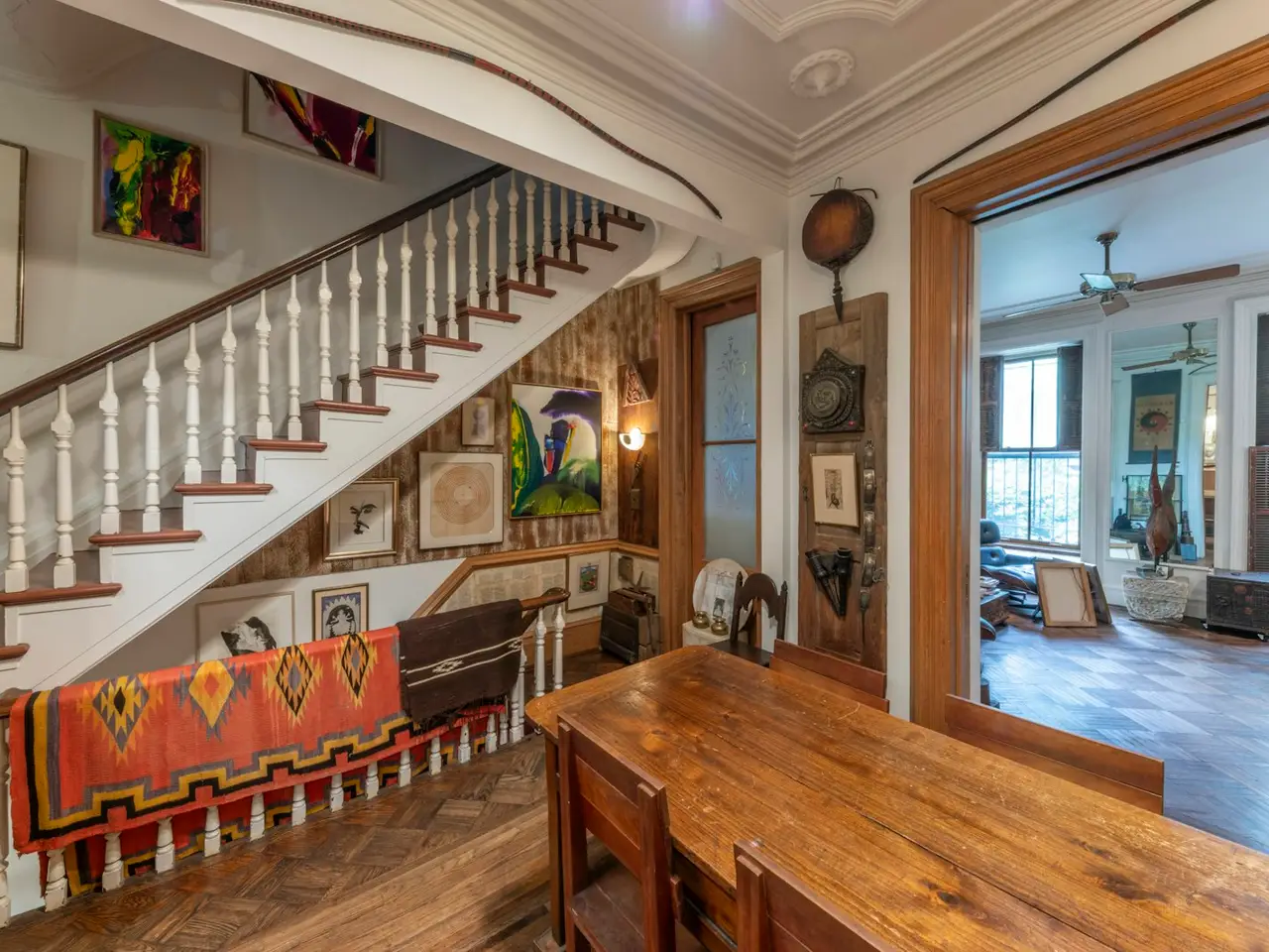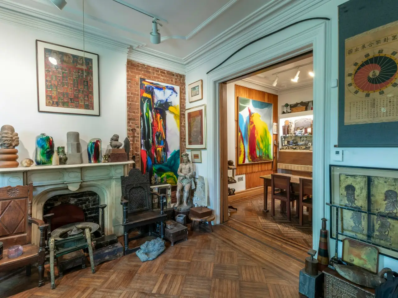 Welcome to 169 East 94th Street, a 4-story Neo-Grec townhouse located on a quiet tree-lined block in historic Carnegie Hill. Built circa 1899 and retaining much of its original detail, the house is part of a unique enclave of 24 uninterrupted row houses positioned between 94th and 95th Streets, each with unusually deep gardens offering a bucolic retreat from the hustle and bustle of city life. Bathed in sunlight and adorned with period details, this approximately 19-foot wide home is built on a 100-foot lot and features grand-scaled rooms with high ceilings, intricate plaster moldings, 6 wood-burning fireplaces with marble mantles, original parquet floors and a flexible 6-7 bedroom layout. Previously owned and occupied by a world renowned abstract impressionist artist, the house is a living museum with many of the walls, doors and cabinetry covered and collaged with Japanese prints, calligraphy on rice paper, placards and other quirky drawings and objects found in the shops and streets of Paris. A permanent part of the house, these thought provoking images provide a glimpse into the mind of an artistic genius and can either be preserved by the new owner, or donated to the artist's foundation. Beyond its artistic provenance, this unique property is primed for restoration and offers an additional 4,222 square feet of FAR allowing one to expand for a total of 7,678 square feet! A truly rare opportunity to create a legacy property in one of Manhattan's most peaceful neighborhoods with great restaurants, shopping, Central Park and some of New York's finest private schools right at your doorstep. Layout: Garden Floor: Under the stoop entrance with storage leads to a front office, separate kitchenette, rear bedroom with full bathroom and access to an expansive private garden. Parlor Floor: Tall stoop with double entrance doors leads to a front kitchen with original mahogany details and pier mirror, powder room, separate dining area and pocket doors opening onto a large Living room with wood-burning fireplace overlooking the garden. Third Floor: Original stairs and rails lead up to three light-filled bedrooms (one with fireplace), a large dressing room and a full bathroom. Fourth Floor: Three bright bedrooms (two with fireplaces) and a utility bathroom. Cellar: Storage, Washer-dryer, mechanicals