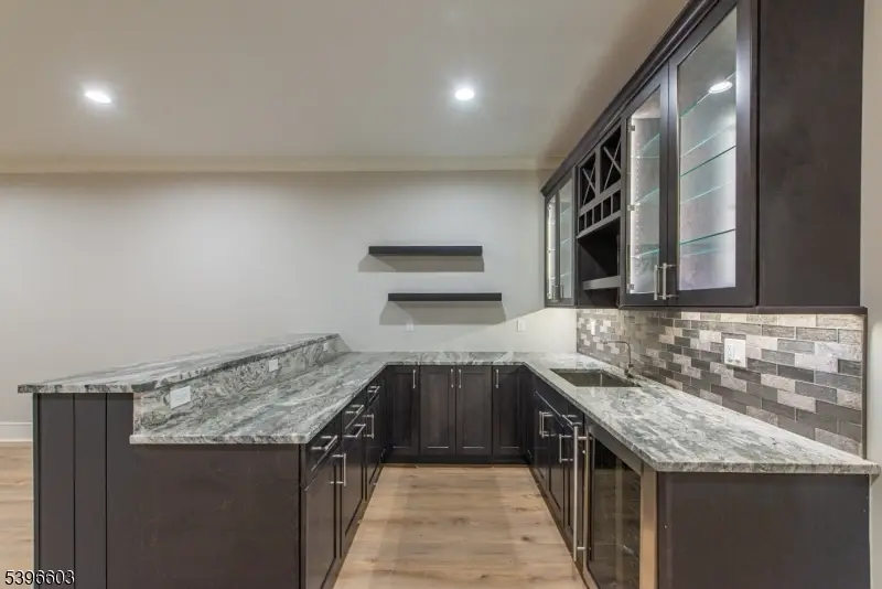 Experience elevated living at 24 Cliffside Drive, Livingston, an exquisite new construction estate spanning approximately 6,500 sq ft of refined design and craftsmanship.This 5-bedroom, 6.5-bath luxury home combines timeless architecture with modern sophistication, offering the ideal blend of comfort, function, and style. Step inside to a grand foyer that opens into bright, open-concept living spaces adorned with custom millwork and oversized windows. The chef's kitchen is the centerpiece of the home, featuring a striking double-profile quartz island, matching full-height quartz backsplash, professional-grade appliances, and a butler's pantry for effortless entertaining. The adjoining kitchen and living room are anchored by a sleek fireplace, while a second fireplace enhances the formal dining room's elegant ambiance. Upstairs, retreat to the primary suite with a spa-like bathroom, custom walk-in closet, and a private balcony overlooking the grounds. Two additional balconies provide peaceful second-floor escapes. The fully finished basement expands the living space with a wet bar, wine cellar, media area, and recreation space, perfect for gatherings or relaxation. Outdoors, enjoy a covered patio with a outdoor kitchen, ideal for year-round entertaining. The stone and stucco exterior, three-car garage, and 10-year builder's warranty complete this extraordinary offering. 24 Cliffside Drive redefines modern living in one of Livingston's most sought-after neighborhoods!