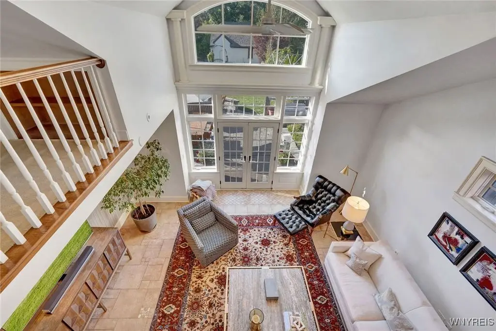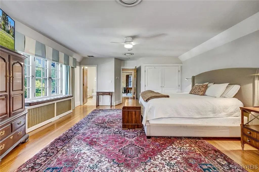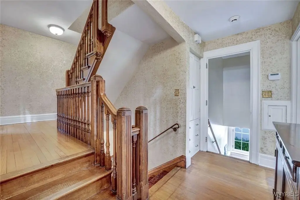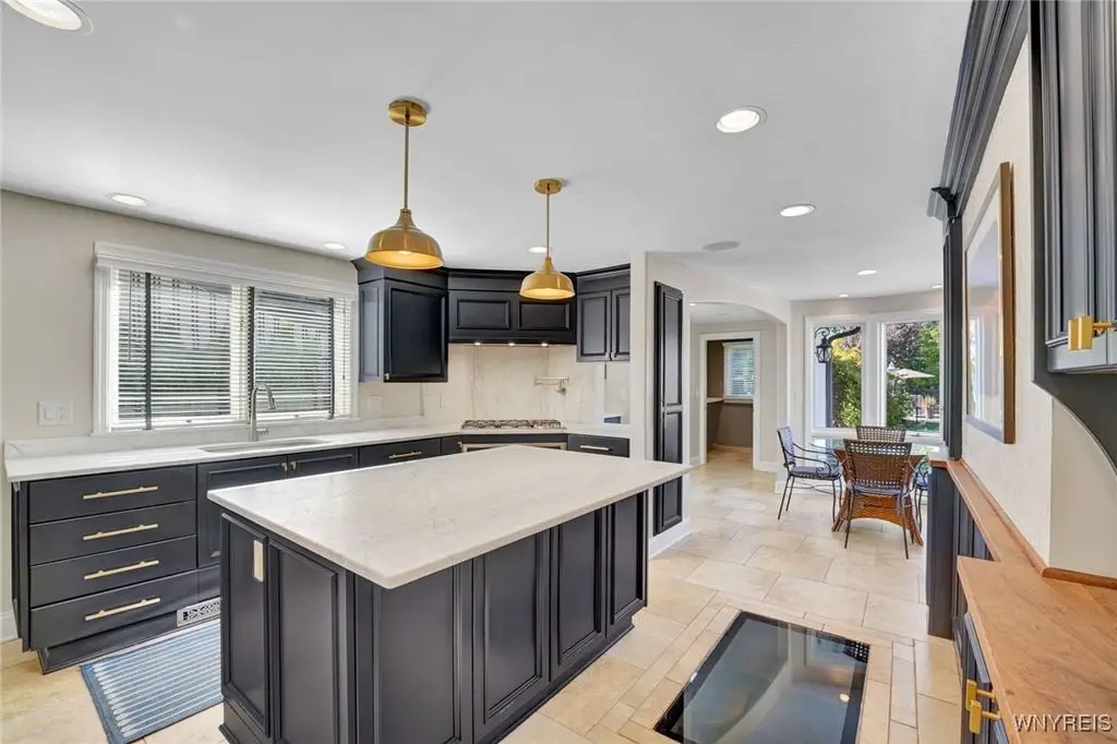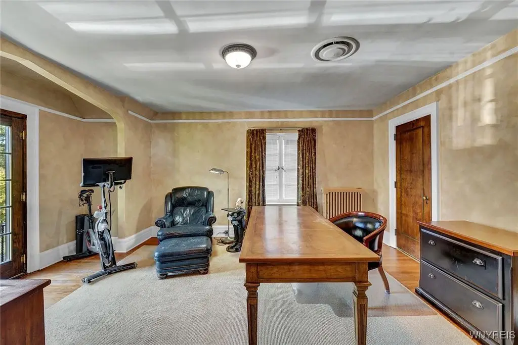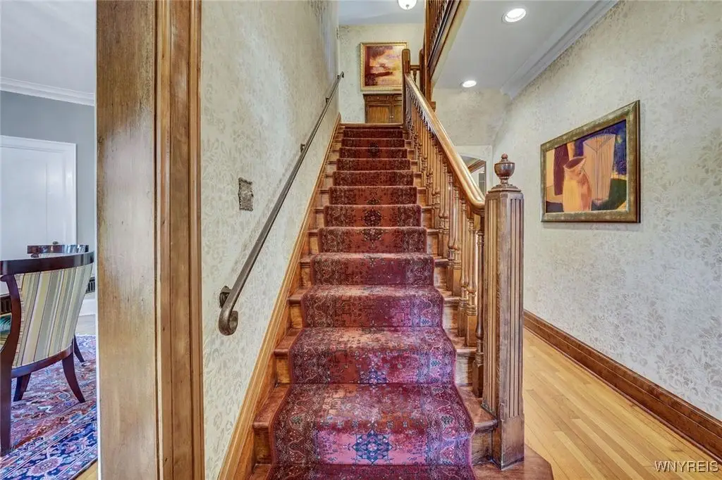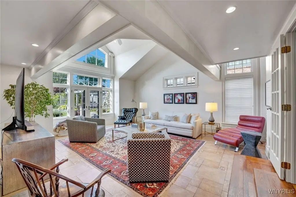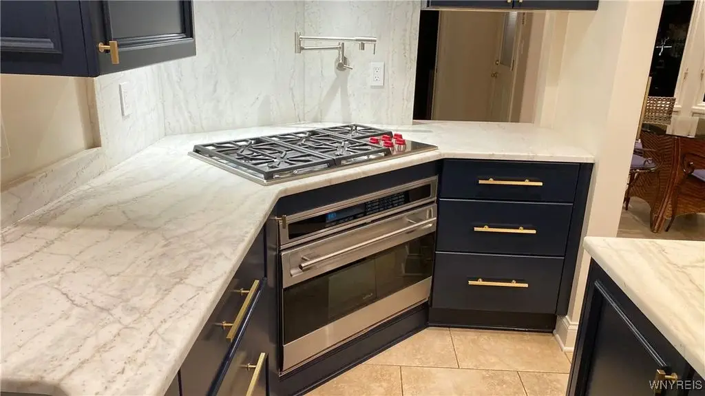 Timeless Elegance Meets Modern Luxury Across from Delaware Park at 81 Nottingham Terrace. Discover refined living in this stunning 4 bedroom, 3.5 bath Tudor estate, perfectly positioned across from Olmsted's historic Delaware Park. A seamless blend of classic architecture and contemporary upgrades, this home offers exceptional comfort and elegant style. The fully remodeled chef's kitchen is a showpiece, featuring premium appliances including a Sub-Zero refrigerator, Wolf range, Cove dishwasher, and a built-in coffee bar. Elegant Carrara marble countertops and a spacious island make it ideal for both cooking and entertaining. The kitchen opens to a bright breakfast room and offers a unique view into the climate-controlled wine cellar, which holds up to 1,000 bottles of wine. The formal dining room, adorned with its original chandelier, flows into a grand foyer. A spacious living room centers around a striking woodburning limestone fireplace, while the large modern family room features radiant heated floors and a loft above. French doors lead to a private courtyard patio, perfect for relaxing or hosting guests. The distinguished library/study offers warmth and character with a wood-burning fireplace and custom built-in bookshelves. Original hardwood floors and incredible woodwork throughout. Gorgeous staircases show the charm and character of this exquisite home. Upstairs, the luxurious primary suite includes three closets and a spa-inspired ensuite bath. The second bedroom opens to a Juliet balcony, and the third bedroom features a generous walk-in closet. The third-floor bedroom includes an additional full bathroom, ideal for guests or a private retreat. Outdoor living is equally impressive - enjoy a saltwater inground pool, a stone fire pit for cozy evenings, grilling area designed for effortless entertaining. Fully fenced electronic gated yard with sprinkler system. Updates include roof, boiler system ($30,000), Generac generator, and much more. This exceptional home combines historic charm, modern amenities, and resort-style outdoor living in one of Buffalo's most coveted neighborhoods.