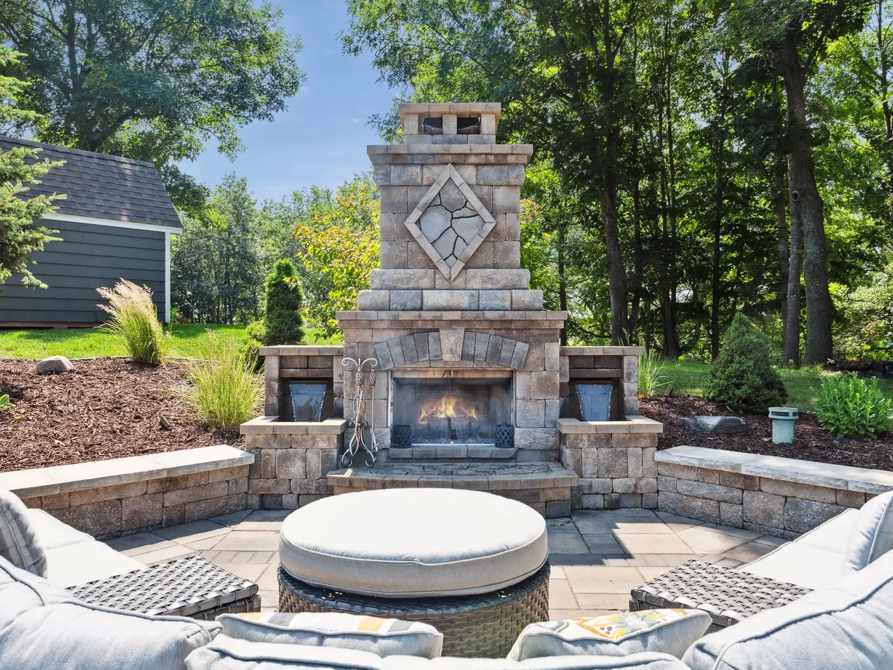 • Grand fireplace in backyard